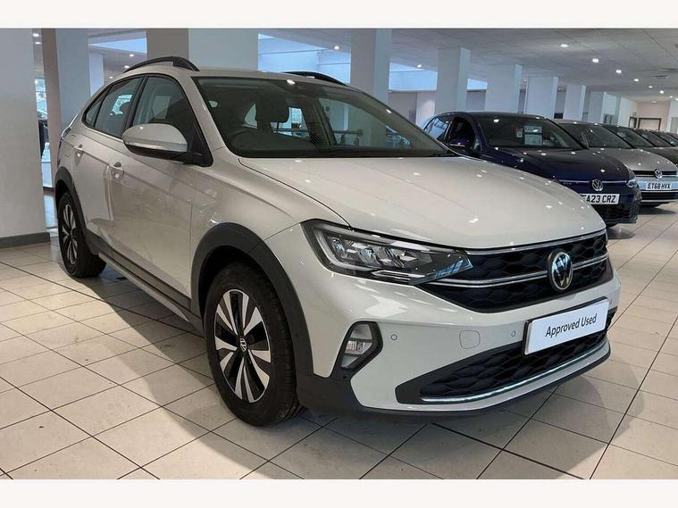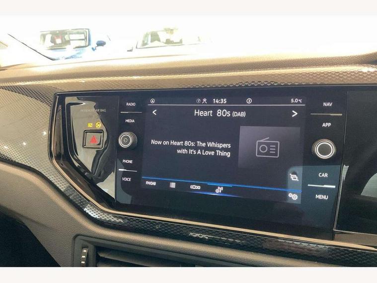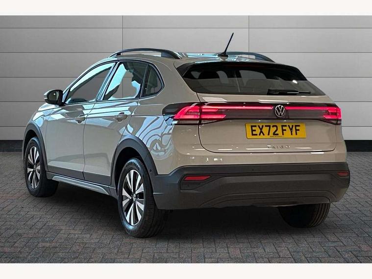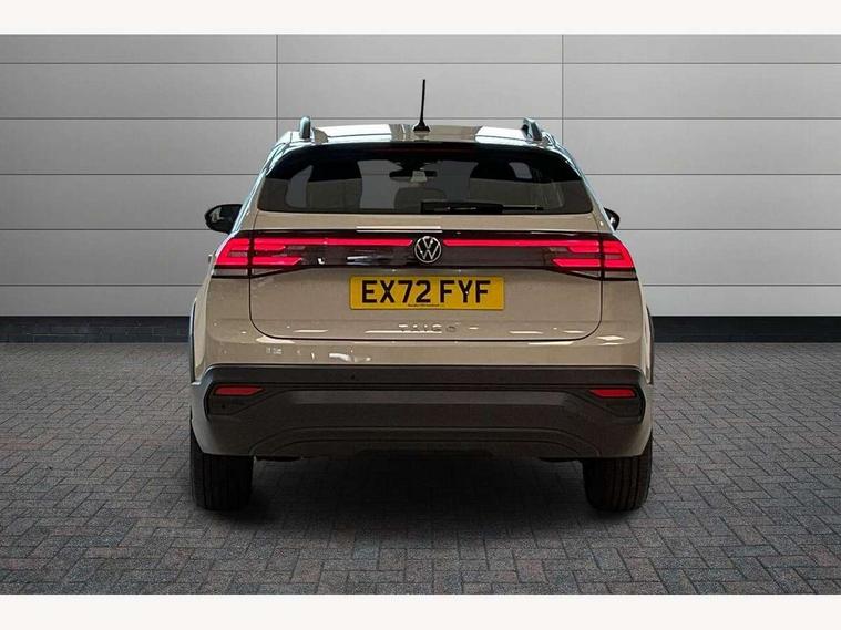 App-Connect including App-Connect Wireless, Driver alert system, e-Call (emergency call), Power Steering, Travel assist including emergency assist, Washer fluid level indicator, Wireless Charging including Bluetooth, Start-stop system with battery regeneration (recuperation - energy recovery during braking), Digital radio reception (DAB+), Diversity antenna for FM reception, WeConnect plus, Ambient lighting with logo projection, Aspherical driver's exterior mirror, Auto headlights, Body coloured bumpers, Body coloured exterior mirror housings and door handles, Electric windows, External USB type C socket and charging sockets, Front fog lamps with cornering function, Headlight range control, Heat insulating glass windscreen, LED headlamps, LED rear combination lamp, LED third brake light, Left convex exterior mirror, Power folding adjustable/heated exterior mirrors and front passenger exterior mirror lowering function, Rear fog light on one side, reversing light on both sides, Rear side wing doors, Rear wash/wipe with intermittent wipe setting, 'Slash/ Austin' Cloth upholstery, 12V socket in centre console, 2 front reading lights, 3 rear head restraints, 3 seat bench in 2nd row, Black carpets, Child seat anchor for child seat system i-Size, 2x top tether and child seat anchor in front on front passenger side, Door and side trim panels in titan black, Driver and front passenger seat height adjustment, Front centre armrest, Handbrake lever handle in leather, Height and reach adjustable steering wheel, Leather trimmed gear knob, Leather wrapped multifunction steering wheel, Luggage compartment floor, Luggage compartment light, Lumbar support for driver's and front passengers seat, Seat covers in titanium black, Single front passenger seat, Split folding backrest with centre armrest and unsplit rear seat bench, Storage compartment under front seats, Sun visors with illuminated vanity mirrors, Chrome Package - Taigo, Drivers assistance pack - Taigo, Light and Sight pack including High beam assist - Taigo, 2 x 3-point seatbelts/outer rear seats with ECE label, 3-point seat belts in front with pretensioner and height adjustment, 3-point seatbelt for centre rear seat, Driver and front passenger airbags with front passenger airbag de-activation, front side and curtain airbags, Driver and front passenger safety-optimised head restraints, Electronic stability control, Extended and predictive pedestrian/ cyclist protection, Front and rear disc brakes, Front curtain and side airbags with center airbag, Hill start assist, Manual rear child locks, Single tone horn, Tyre pressure loss indicator, Anti-theft alarm system with interior monitoring, backup horn, and towing protection, Anti-theft wheel bolts, Lava stone black gloss/matt decorative inserts in dash and front door panels, Low rolling resistance tyres,