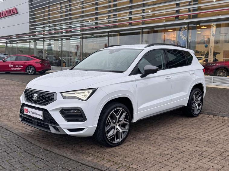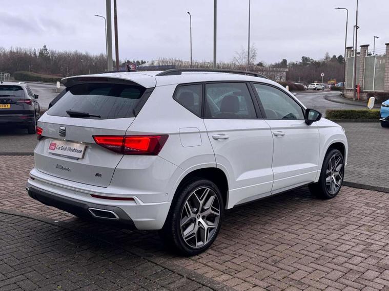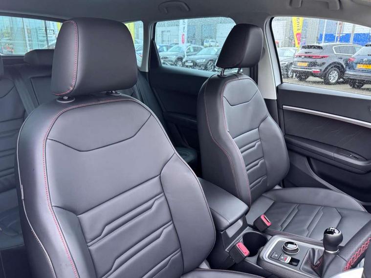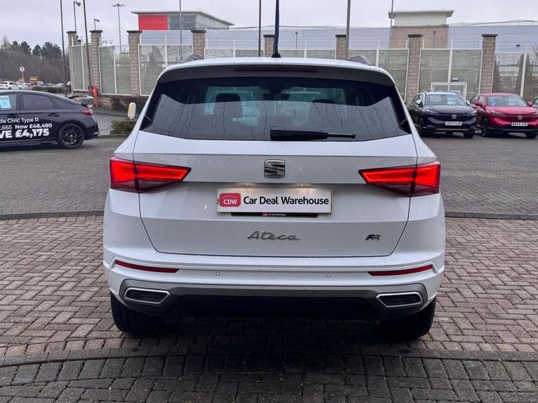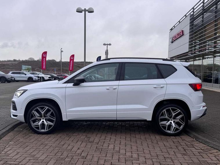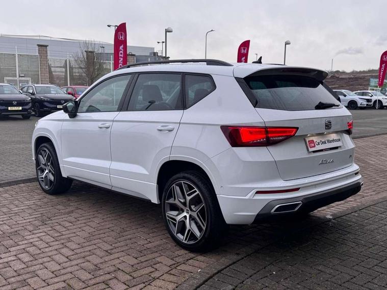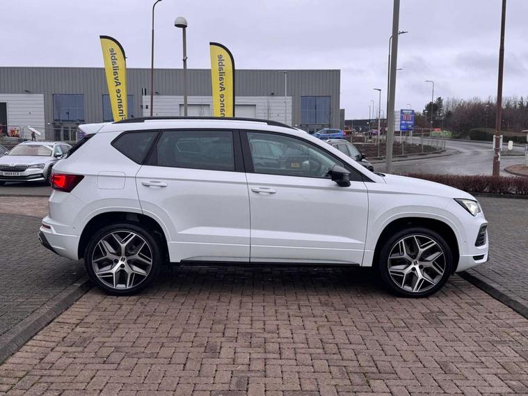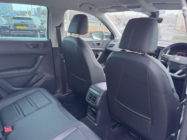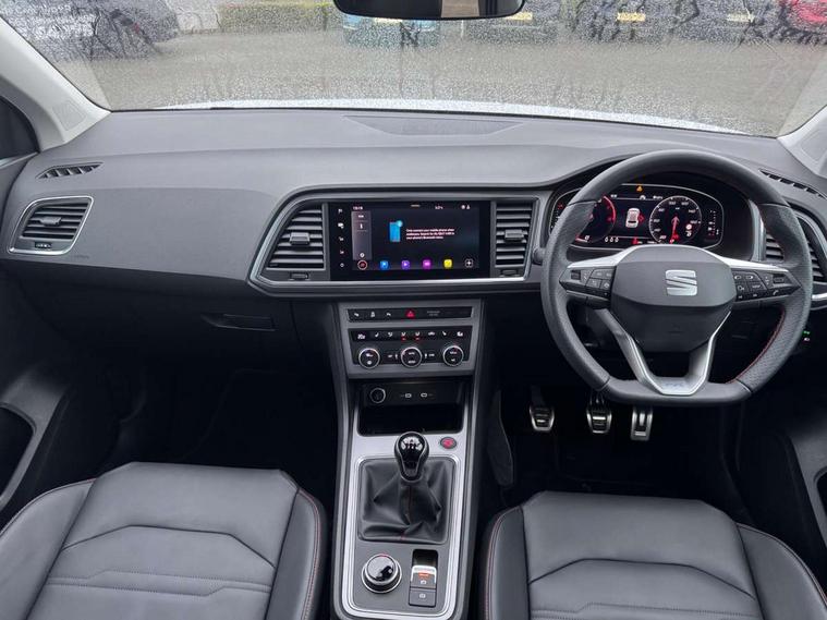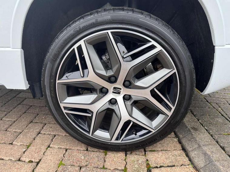 10" Digital cockpit, Cruise control system with speed limiter, E-call, Outside temperature gauge, Progressive power assisted steering, SEAT drive profile with driving experience button - Normal, Sport, Eco and Individual mode, steering and throttle response, Self parking functionality (includes front and rear parking sensors), Start/stop system, Tailgate, Trip computer, wired and wireless full link smartphone integration, Wireless phone charger, Steering wheel mounted audio/phone controls, Black roof rails, Black side window trim, Body colour bumpers, Body coloured wheel arch surrounds, Chrome front grille frame, Dark tinted rear windows, Daytime running lights, Door mirrors with welcome light silhouette, Dynamic headlight range control with self adjusting whilst driving, Electric adjustable/heated/folding door mirrors, Front and rear electric windows, Full LED headlamps with lens and LED front fog lamps with cornering function, Illuminated aluminium front door sill, LED 3rd brake light, LED rear tail lights with dynamic indicators, Rear exhaust tailpipe, Rear fog lights, Rear side wing doors, Rear spoiler, Rear wash/wipe, Variable front intermittent wipers, 12V socket in front, 3 seat bench in 2nd row, 60/40 split folding rear seat, Aluminium pedals, Dual zone climate control, Electric adjustable driver seat with memory function, Front and rear head restraints, Front centre armrest, Front seat back storage pockets, Heated front seats, Height adjustable passenger seats with lumbar adjustment, ISOFIX points in outer rear seats with top tether anchorage points, Leather sports steering wheel and gear knob, Leather upholstery with front comfort seats, Manual lumbar support on driver seat, Rear armrest and easy back seat release mechanism from boot, Single front passenger seat, Convenience pack - Ateca, Interior lighting pack - Ateca, Navigation system pack with DAB - Ateca, Safety and driving pack with attention and drowsiness assist - Ateca, 3x3 point rear seatbelts, ABS, Traction control system (TCS), Electronic stability control (ESC) and Electronic differential lock system (XDS), Airbags - Driver and front passenger airbag with deactivation, front side, two curtain and driver's knee airbags, Electric parking brake with auto hold function, Front and rear seatbelt reminder, Front assist with autonomous emergency braking, Hill hold control, Manual rear child locks, Single tone horn, Tiredness recognition system, Tyre pressure monitoring system, Alarm, Keyless entry, Locking wheel bolts, Remote central locking, Chrome interior detailing, 19" Exclusive machined alloy wheels with decorative inserts 36/7 in cosmo grey,