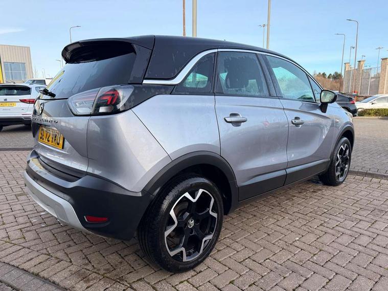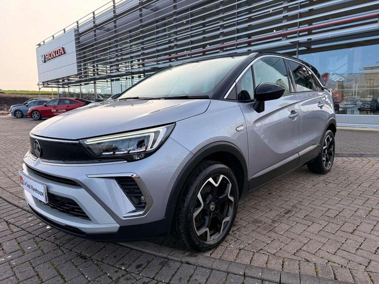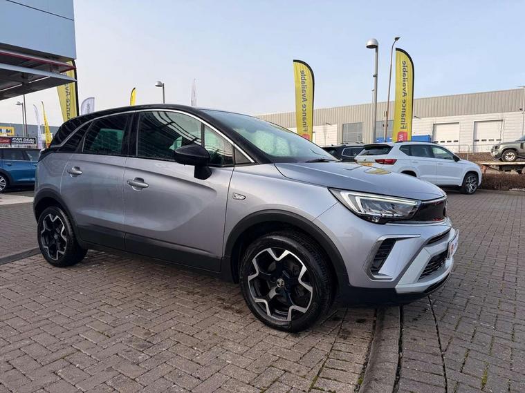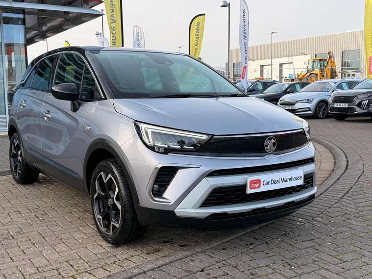 3.5" monochrome instrument colour display, Audible lights on warning, Bluetooth connectivity, Cruise control + speed limiter, Digital clock with automatic RDS time adjustment, Driver drowsiness alert system, E-call, Forward collision warning, Instrumentation - Speedometer, rev counter, low fuel gauge warning light + water temperature gauge warning light, shift up/down indicate light, Lane departure warning system, Multi function trip computer, Multimedia sat nav pro with 8" colour touchscreen, AM/FM, Bluetooth streaming, Bluetooth mobile phone portal, apple CarPlay/Android Auto + 6 speakers, Outside temperature display with ice warning, Refridgerant low indicator, Service interval indicator, Speed sensitive power steering, Speed sign recognition, Vauxhall connect, Front wheel drive, 2 x USB connections, DAB Digital radio, Steering wheel mounted audio/phone/cruise controls, 2 speed wipers/wash wipe/intermittent wipe, Alloy effect front and rear skid plates, Automatic anti dazzle rear view mirror, Automatic headlamp levelling system, Automatic high beam control with cornering light, Automatic lighting control, Black door mirror housings, Black radiator grille with chrome bar, Black roof, Body colour door handles, Body colour front and rear bumpers, Chrome effect upper window moulding, Dark tinted rear side windows + tailgate window, Electrically adjustable and heated door mirrors, Front power windows with express up/down and anti-pinch function, Hazard warning lights, Headlamps for left side traffic, Heated rear window, Integrated tailgate spoiler, Intermittent rear wash/wipe, LED daytime running lights, LED front fog lights, LED Headlights, LED side repeat indicators, LED tail lights, Rain sensitive windscreen wipers, Rear fog lights, Rear power windows with express up/down and anti-pinch function, Rear side wing doors, Rear wing door, Reversing light, Side window demist vents, Solar heat absorbing windscreen and windows, Third brake light, Welcome lighting, Windscreen demist vents, 12v power outlet - front, 2 way adjustable front passenger seat, 2 way front passive headrests, 3 rear seats, 3 spoke flat bottomed leather covered steering wheel with bezel decoration, 4 way electrically adjustable lumbar support for drivers seat, 60/40 split folding rear seat backrest, Adjustable rear seat backrest, Air recirculation facility, Ambient lighting, Anti submarining ramps in front seats, Cabin particulate filter - removes dust, airborne particles and pollen, Centre console, Driver and front passenger illuminated vanity mirrors with flip up covers, Driver's seat armrest, Drivers ergonomic active seat with 8 way manual adjustable driver seat , height, reach and backrest, Dual zone electronic climate control, Fade up/fade down on interior lighting, Four adjustable facia vents, Front door pockets with bottle holders, Front map reading lights, Fully carpeted luggage area, Glovebox with lid, Height adjustable front/rear head restraints, Illuminated load area, Interior courtesy light operated by all doors, Isofix system on outer rear seats, Jet black premium leather side bolsters, Luggage compartment cover, Multi-speed fan with Illuminated control, Open storage compartment in centre console, Passenger assist handles, Reach + rake adjustable steering column, Rear centre headrest, Rear door pockets with bottle holders, Rear floor ventilation ducts, Rear reading lights, Satin chrome effect bezel on steering wheel, Seat cushion extension, Single front passenger seat, Sparkle cloth/vinyl upholstery, Storage pockets on front seat backs, Two drinks holders in centre console, Rear view camera plus pack - Crossland, Winter pack - Crossland, 3x3 point rear seatbelts, 6 airbags - Driver and co-driver front, front side, head curtain roof airbags, front and rear row coverage airbags, ABS, Automatic emergency braking with pedestrian detection, Child locks on rear doors, CSC - Cornering stability control, Deactivate switch for side impact airbags, Deformation zones front and rear, Dual seatbelt pretensioners on front seats, EBD - Electronic brakeforce distribution, Energy absorbing steering column, Engine drag torque control, ESP + traction control, Front and rear seatbelt unfastened audible warning and warning light, Front side impact airbag, Hill start assist, Hydraulic Brake Assist (HBA), Hydraulic brake boost, Inertia reel lap and diagonal seatbelts for all seats, Passenger airbag deactivate switch, Pedestrian detection, Rear seat belt pretensioners, Reinforced passenger safety cell, Seatbelt load limiter, Side impact protection beams, Smart seatbelt reminder for front and rear seats, Tyre pressure monitoring system, 2 remote folding keys, Electronically protected audio equipment, Engine immobiliser, Locking wheel nuts, Remote central deadlocking, Remote control central locking activation switch on driver door, Remote control central locking operates on doors, tailgate and fuel filler flap, Remote security alarm system, Visible vehicle identification number, Black facia with silver trim insert, Black trim inserts on front doors, Cluster black with chrome rings, 17" five twin spoke diamond bi colour alloy wheels,
