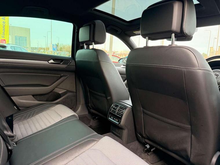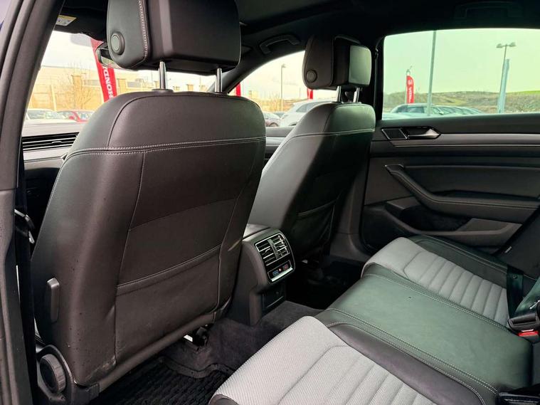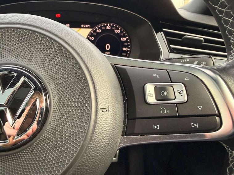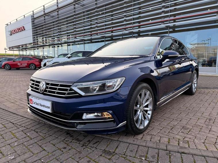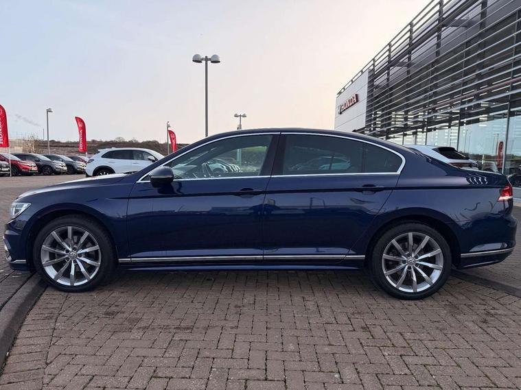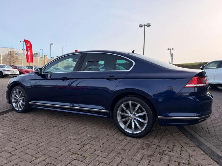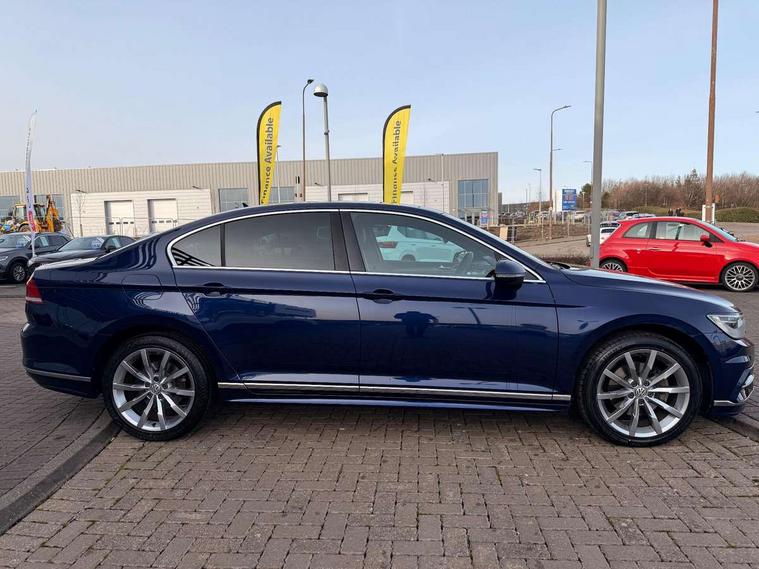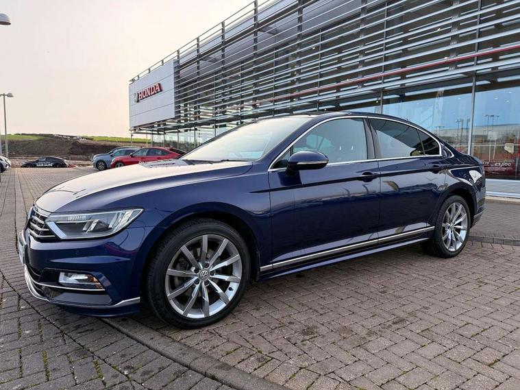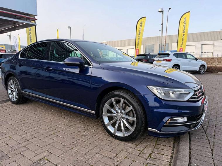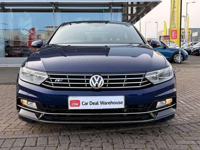 Adaptive cruise control, Analogue clock, Door/boot open warning light, Driver alert system, Exterior temperature gauge with frost alarm, Low washer fluid warning light, Multi function display colour screen, Multifunction computer, Press and drive key, Remote boot release, Remote fuel flap release, Service interval indicator, Speed limiter, Warning buzzer and light for front seatbelts unfastened, Diesel particulate filter, Auxiliary socket for external device, Composition media system with Radio/CD/MP3, DAB Digital radio, MDI with USB/iPod connection cables, SD card slot, Auto dimming driver's door mirror, Auto dimming rear view mirror, Automatic activation of hazard warning lights, Automatic headlights, Body colour bumpers, Body colour door handles, Body coloured door mirrors, Chrome fog light surround, Chrome louvres in grille, Chrome side sills, Chrome side window surrounds, Chrome surround for air intake, Coming/leaving home lighting function, Electric folding mirrors, Electric front windows, Electric rear windows, Electrically adjustable and heated door mirrors, Front fog lights with static cornering function, Headlight range control, Heated rear window, R Line body kit, Rain sensor, Twin Trapezoidal tailpipes, Windscreen wipers/ intermittent wipe + 4 position delay, 12V socket in luggage compartment, 3 rear head restraints, 3 spoke multi-function leather steering wheel, 3 Zone electronic climate control with automatic air recirculation, 4 boot load lashing points, 60/40 split folding rear seat, Black roof lining, Driver's cushion tilt adjust, Entry lights on doors, Front + rear carpet mats, Front and rear interior lighting with delay and dimming function, Front centre armrest with 12v socket, Front centre armrest with storage compartment, Front comfort seats, Front cupholders x2 with covers, Front door pocket bottle holders, Height/reach adjust steering wheel, Leather gearknob, Load through provision, Lockable, illuminated, cooled glovebox, Luggage compartment lighting, Rear centre armrest with cupholder and storage, Stainless steel pedals, Storage compartment in driver's door, Storage compartment in passenger's door, Storage compartment in rear doors, Storage compartment in roof console, Storage pockets in backrests of front seats, Sunvisors with illuminated vanity mirrors, Variable boot floor, Ambient lighting pack - Passat, 3 rear 3 point seatbelts, ABS, brake assist and EBD, Automatic post collision braking, Curtain airbags, Driver/Front Passenger airbags, Driver/Front passenger WOKS head restraints, Drivers knee airbag, Electronic parking brake with auto hold, ESP with EDL + ASR, First aid kit, Front assist including city emergency braking, Front side airbags, Height adjustable front 3 point seatbelts + pretensioners, Hill hold function, Passenger airbag deactivation system, Pre crash system, Rear side airbags, Warning triangle, Alarm with interior protection, Electronic engine immobiliser, Keyless Start, Remote central locking with 2 remote folding keys, Brushed aluminium interior trim, Chrome air vent and instrument surround, Piano black centre console, White instrument dials,