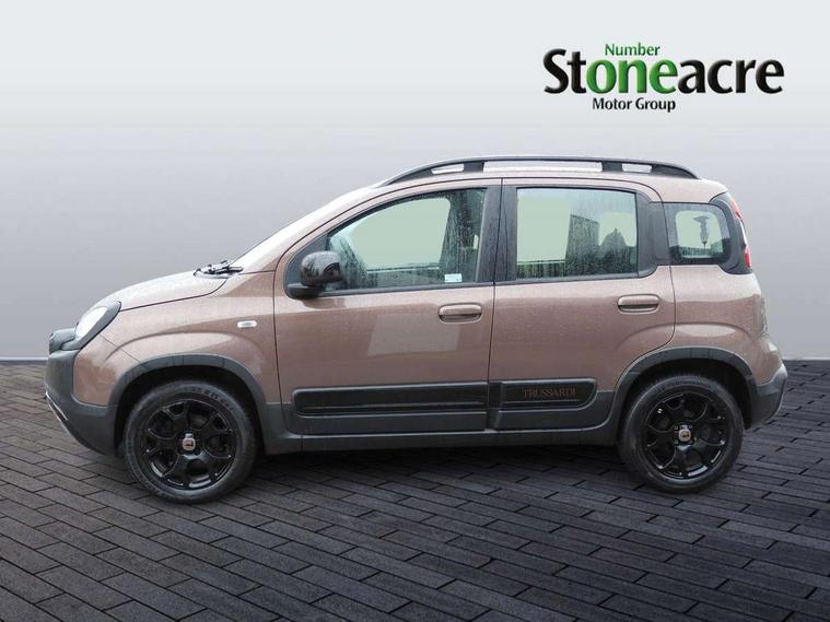 Dual drive PAS, Outside temperature display, Stop/start system, Trip computer, 4 speakers, Bluetooth radio with Smartphone cradle, USB and AUX-in, Body colour door handles, Body coloured side stripes, Electric adjustable heated door mirrors, Electric front windows, Front and rear bumper with glossy black skid plate, Front fog lights, Gloss black door mirrors, Gloss black roof bars, Glossy black side mouldings with Trussardi logo, Rear wiper, Trussardi logo in rear window, 12V socket, 5 seat with 40/60 split folding rear seat and 3 head restraints, Adjustable leather steering wheel with white stitching audio controls, Trussardi centre logo and glossy black detailing, Auto climate control with pollen filter, Cloth/ECO leather upholstery, Driver's sun visor with vanity mirror, Front spot light with timer, Height adjustable driver's seat, Isofix attachments on outer rear seats, Luggage compartment lighting, Passenger sunvisor with vanity mirror, Specific floor mats with Trussardi logo, 3 rear seatbelts, ABS/EBD, Anti-whiplash front headrests, Brake assist function, Driver airbag, ESP + ASR + hill holder, Front passenger airbag, Side airbags, Tyre pressure monitoring system, Window airbags, Immobiliser, Remote central locking, Door panel inserts, 15" glossy black alloy wheels with Trussardi centre wheel cap, Summer tyres, Tyre puncture repair kit,