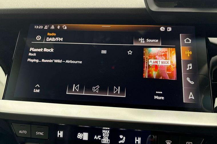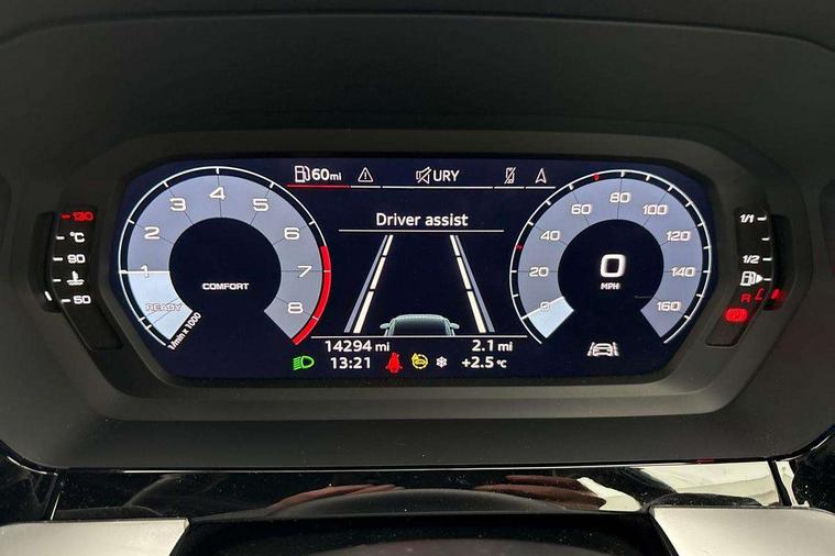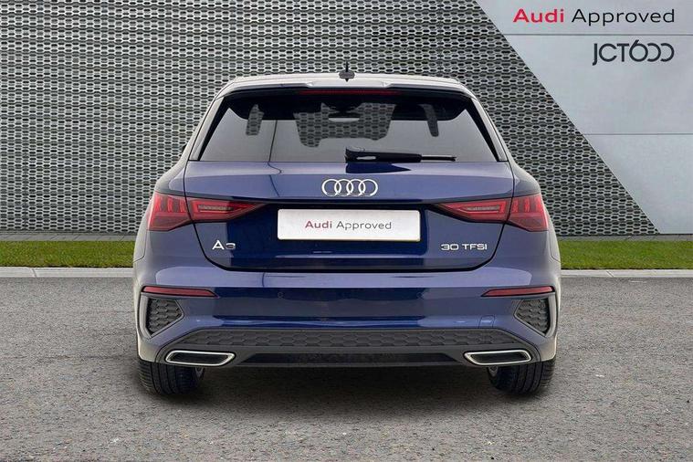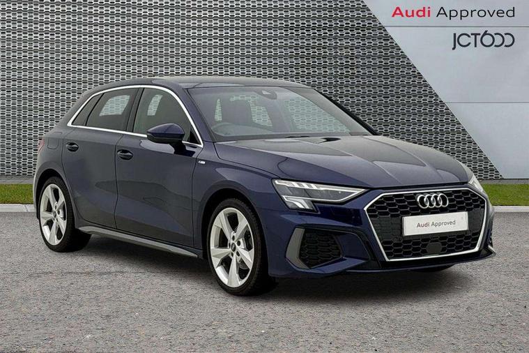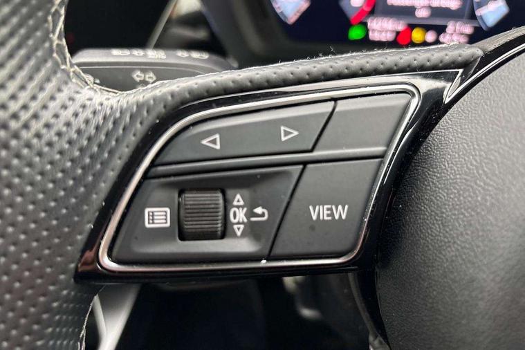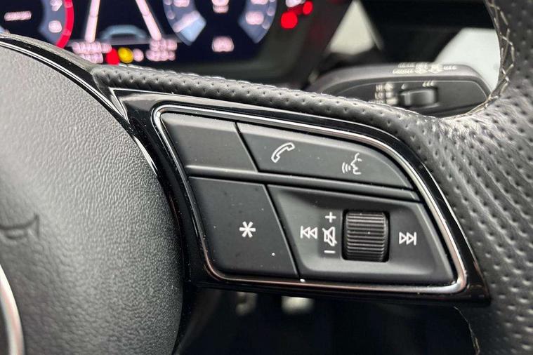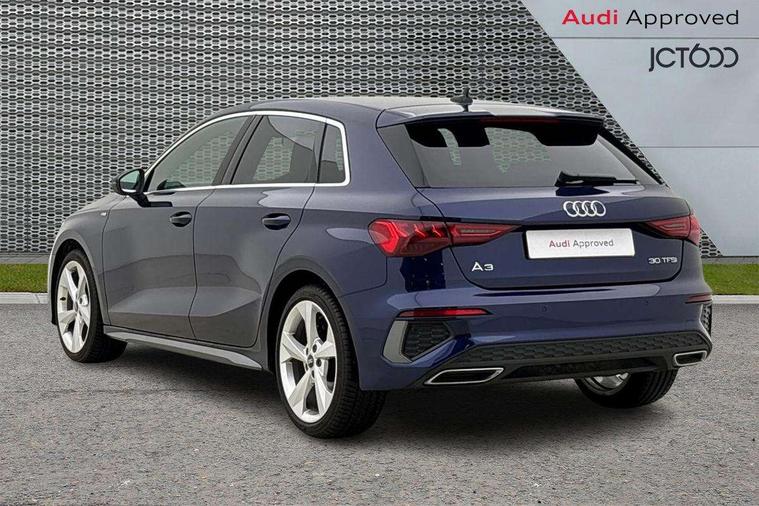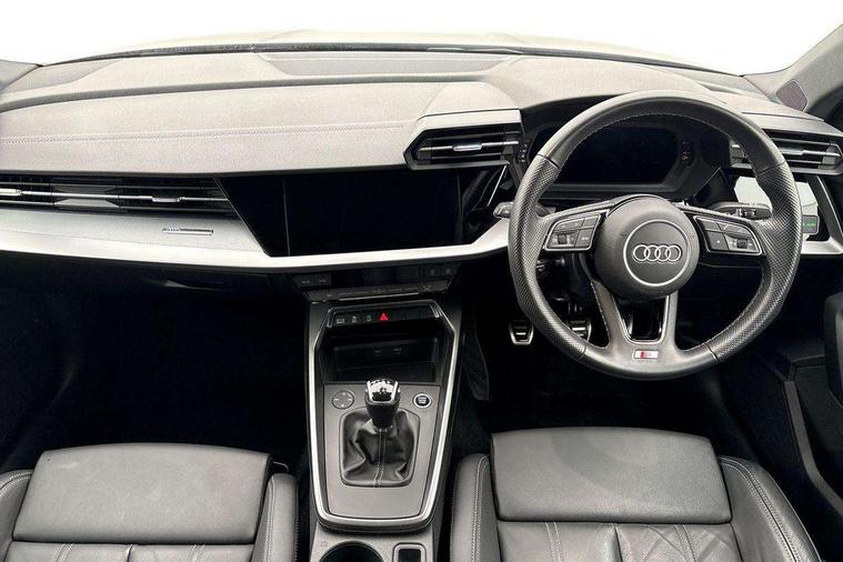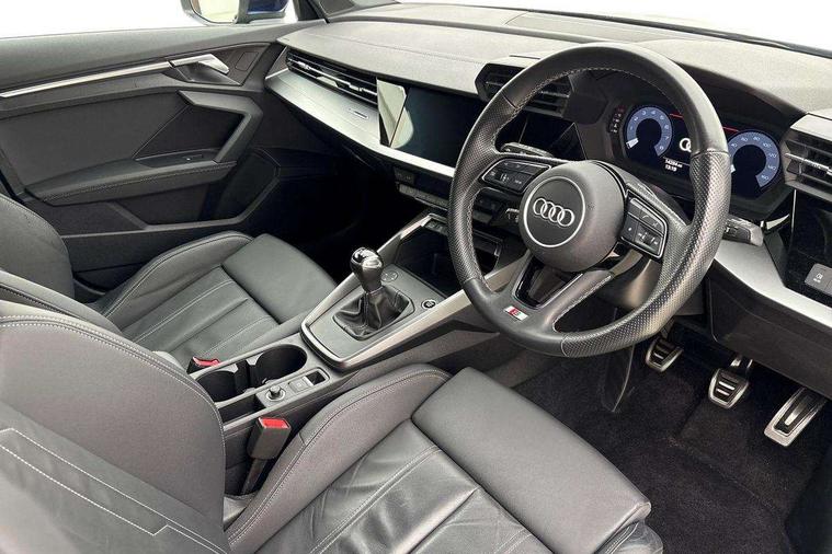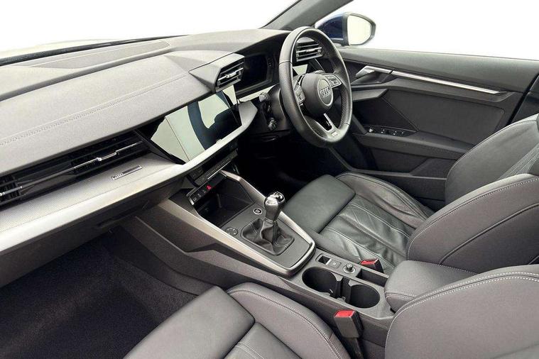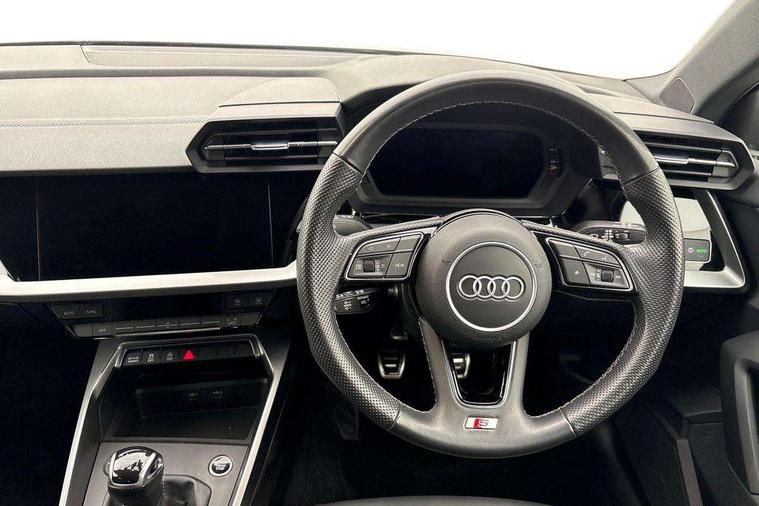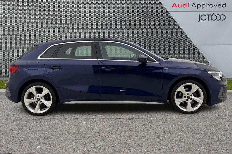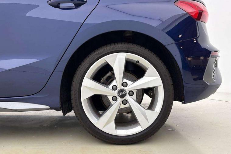 Audi drive select (Auto, Comfort, Dynamic and Individual), Audi smartphone interface, Audi Virtual Cockpit - 10.25" digital and colour instrument cluster, Automatic start/stop system with recuperation, Bluetooth interface, Collision avoidance assistant, Cruise control, e-Call (emergency call), Electromechanical power speed sensitive steering, Lane departure warning system, MMI Navigation Plus with high resolution 10.1" colour touch screen display, Rear parking sensors, Service indicator, Trip computer, Voice control system with natural language interaction, 2xUSB-C connection with data and charging functions, 6 passive loudspeakers, DAB Digital radio, 3rd brake light, Acoustic glass windscreen, Aluminium window trim, Auto dimming frameless rear view mirror, Electrically adjustable/heated/folding/auto dimming door mirrors with integrated LED indications + kerb view function for passenger side, Front electric windows, Illuminated aluminium inserts front door sills with S logo, LED daytime running lights, LED headlights with LED rear lights and dynamic rear indicators, Light and rain sensors, Privacy glass - dark tinted rear window, rear door and side windows, Rear electric windows, Rear side air outlets in grained matt black, Rear side wing doors, Rear wiper, S line bumpers, S roof spoiler, 12V socket and storage compartment in front centre console, 3 seat bench in 2nd row, 40/20/40 split folding rear seat bench with cupholder, Black cloth headlining, Dual zone electronic climate control, Front and rear centre armrest in leather, Front and rear headrests, Front/rear floor mats, Height and reach adjustable steering wheel, Illuminated vanity mirror, Interior lighting - glove compartment light and right hand side, Luggage compartment floor covering, Manual boot compartment lid, Manually adjustable front seats, Seat side bolsters, Single front passenger seat, Stainless steel pedals and front footrest in black, Twin leather upholstery with front sports seats S embossed logo, Aluminium interior elements pack - A3 Sportback, S line styling pack - A3 Sportback, 3x3 point rear seat belts, Audi pre sense front, Driver and front passenger airbag with passenger airbag deactivation, Electronic Stabilisation Control (ESC) including ABS, ASR and EDL, First aid kit with warning triangle and 2 safety vests, Front side airbags with head airbags and interaction airbag, Pre-sense front with pedestrian and cyclist detection, Seatbelt monitoring, Tyre pressure loss indicator, Anti theft alarm, Anti-theft wheel bolts, Immobiliser, Manual child locks, Remote control central locking, Accent surfaces in the dashboard and centre console in platinum grey silk effect paint finish, Dark spectrum aluminium inlays,