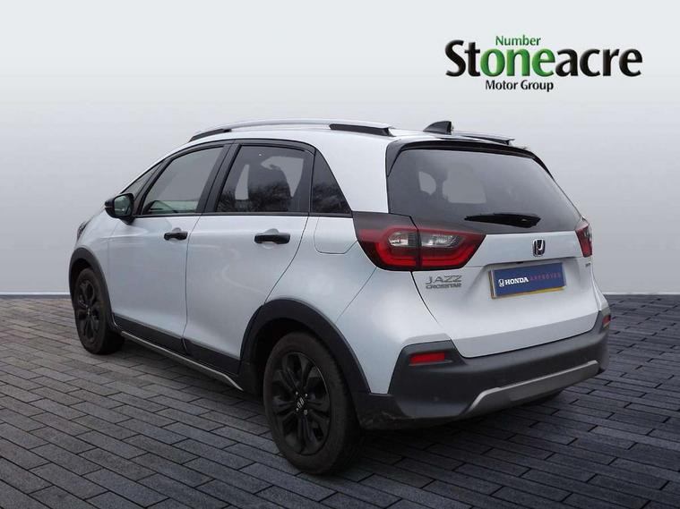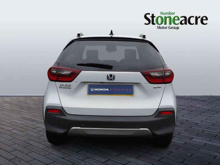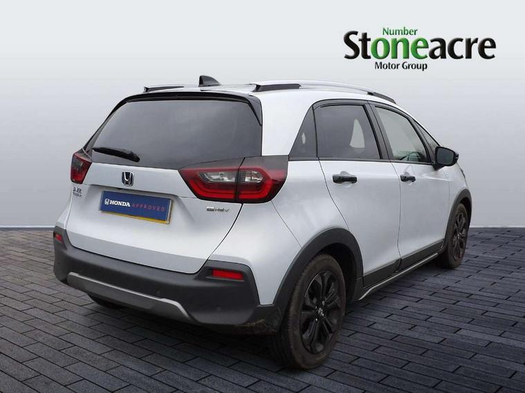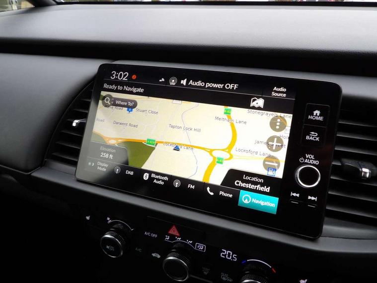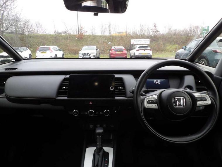 Adaptive cruise control, Adjustable speed limiter, Agile handling assist, Bluetooth hands free telephone connection, eCall emergency call system, Econ mode, Electric power steering wheel with variable gear ratio steering, Emergency stop signalling system, Forward collision warning, Front and rear parking sensors, Honda CONNECT with GARMIN Navigation + 9" touchscreen, AM/FM/DAB/Apple Carplay and android auto, Idle stop, Intelligent speed limiter, Lane departure warning system, Lane keep assist system, Low speed following, Multi-information display, Rear view camera, Road departure mitigation, Tailgate, Traffic jam assist, Traffic sign recognition, Wireless apple carplay, Vehicle stability assist, 'Shark fin' mobile antenna, 180w Power audio system with 4 speakers, 2 USB-C connectors rear, 2x USB Front socket (1 data & 1 charge), Remote audio controls on steering wheel, Aspheric door mirrors, Auto wipers, Automatic headlights with on/off timer, Coming/leaving home function, Black door mirrors, Black headlight extension, Body colour door handles, Body coloured front grille, eHEV emblem, Electric adjustable door mirrors, Electrically folding door mirrors, Exclusive styling includes front and rear bumper, front fog garnish, silver fender, side sill garnish, Front and rear electric windows, Heated door mirrors, High beam assist, LED 3rd brake light, LED daytime running lights, LED front fog lights, LED Headlights, LED rear lights, Manual headlight levelling, Privacy glass, Rear side wing doors, Rear wiper, Roof rails, Single exhaust tailpipe, 3 seat bench in 2nd row, 60/40 split rear bench seat, Cargo net hooks, Climate control air conditioning, Driver and front passenger seat armrests, Driver and passenger front seat pockets, Driver's seat height adjustment, Fabric/Water repellent upholstery, Front accessory power socket, Front head restraints, Front map lights, Front/rear courtesy lights, Heated front seats, Heated steering wheel, Isofix points, Leather gearshift knob, Leather steering wheel, Magic seat flexibility system, Plating interior door handles, Rear head restraints, Single front passenger seat, Sunvisors with vanity mirrors, Tilt/telescopic adjustable steering wheel, Tonneau cover, Trunk light, Vanity mirror illumination, 3x3 point rear seatbelts, Anti-lock braking system (ABS), Brake assist function, Brake hold function, Child locks on rear doors, Collision mitigation braking system, Deflation warning system, Driver knee airbag, Driver SRS airbag (single stage inflation), Driver/Front Passenger airbags, Electronic parking brake with auto hold, Front and rear seat belt with emergency locking retractor, Front and rear side curtain airbag, Front centre airbag, Front side airbags, Hill start assist, Passenger SRS airbag cut-off device, Rear side airbags, Whiplash lessening front headrests, Honda super locks, Immobiliser, Mirrors and windows key fob operation, Remote central locking with 2 remote folding keys, Security alarm, Smart entry + Smart start, Soft pad leather interior panels, 16" 3D chrome H centre cap alloy wheels, Tyre repair kit,