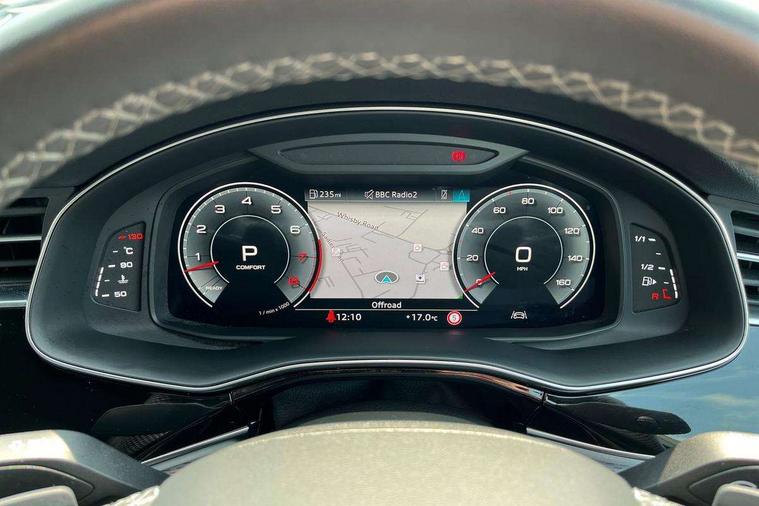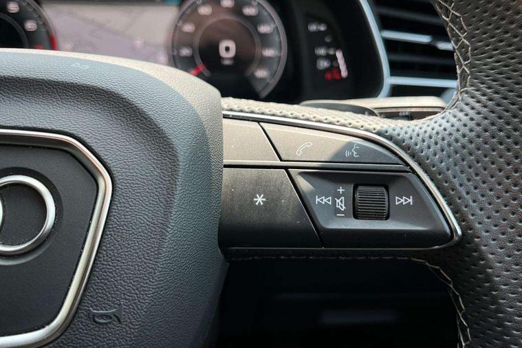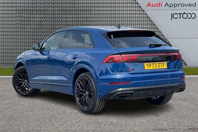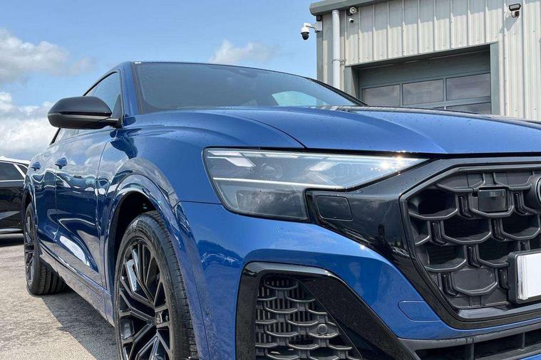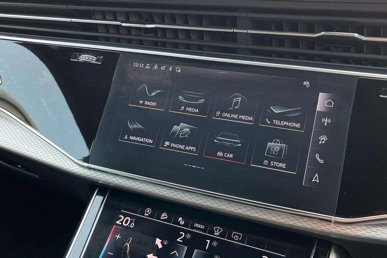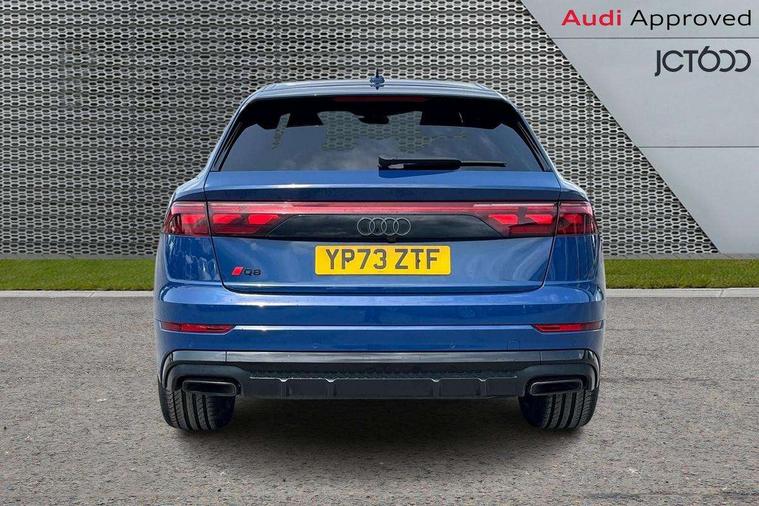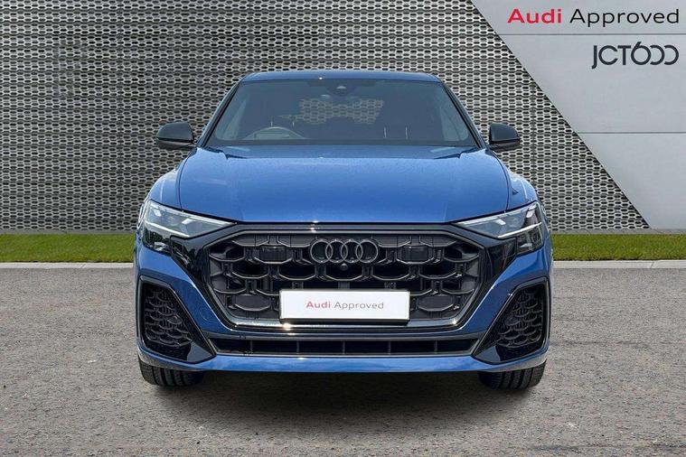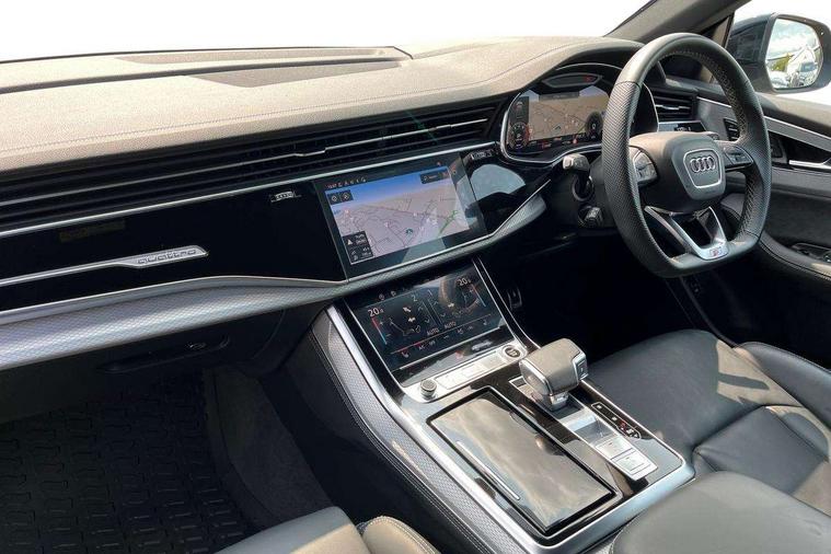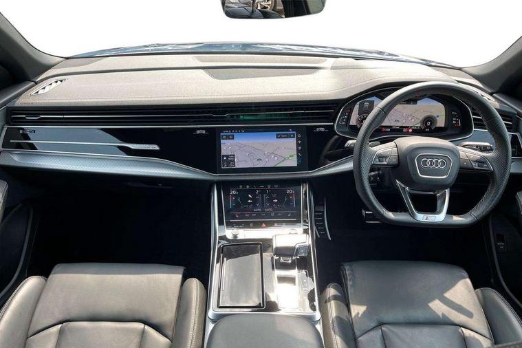 10.1" and 8.6" Dual colour touchscreens, 2 USB C ports with charging functionality in the rear, 360 degree camera with top view, Audi application store, Audi connect safety and service (e-call), Audi connect with Amazon Alexa Integration, Audi drive select, Audi phone box light with wireless charging, Audi smartphone interface includes wireless Apple carplay/Android Auto, Audi virtual cockpit plus, Automatic start/stop system, Bluetooth, Electro-mechanical PAS, Head up Display, Low washer fluid indicator, MMI navigation plus with MMI touch, Natural voice recognition, On board computer, Operating buttons in black, glass look with haptic feedback, Power operated tailgate, Remote park assist plus, Service interval indicator, 48V Mild hybrid technology, 85 litre fuel tank, Adaptive sport air suspension, Quattro all wheel drive with self locking centre differential, Audi music interface with 2 USB ports with charge and data functions, Aux-in socket, Bang + Olufsen sound system, DAB Digital radio, 3rd brake light, Anthracite black door mirrors, Audi beam, Auto dimming frameless rear view mirror, Black exhaust tailpipes, Black single frame mask, Coming/leaving home lighting function, Digital OLED rear combination lamps, Electric front+rear windows, Electrically folding auto dimming/adjustable/heated door mirrors with memory function, LED side indicators and kerb view function for passenger side, Headlight washers, Heat insulating glass in windshield, LED rear light plus, LED signature daytime running lights, Matrix LED headlights with dynamic front and rear indicators, Platinum grey front spoiler lip and diffuser insert with honeycomb grille in black, Privacy glass - dark tinted rear and rear side windows from B-pillar backwards, Rain and light sensors, Rear side wing doors, Rear wiper, Singleframe grille surround in matte platinum grey, 3 bench rear seats in 2nd row, 3 spoke flat bottomed high multi-function leather sport steering wheel with gearshift paddles, 4 zone deluxe automatic climate control, 4-way lumbar support for front seats, 40:20:40 split folding rear bench seat, Black cloth headlining, Comfort front centre armrest, Driver seat memory function, Electrically adjustable front seats, Front head restraints, Front/rear floor mats, Heated front and outer rear seats, ISOFIX child seat mounting for front passenger seat and 2 outer rear seats with top tether child seat mounting for all 3 rear seats, LED interior ambient lighting, Luggage compartment sill protection in stainless steel, Rear centre armrest with 2 cupholders, Rear headrests, Seat cushion displaceable by 100mm in the ratio 60:40, Single front passenger seat, Stainless steel pedals, Sunvisors with illuminated vanity mirrors, Upper dashboard with contrast stitching and lower dashboard in leatherette, Black styling pack plus - Q8, City assist pack - Q8, Multi coloured extended LED Interior lighting pack - Q8, 3 point seatbelts on all seats, Audi pre sense front, Driver and front passenger, front side and curtain airbags, Electromechanical parking brake, Electronic Stability Control (ESC) including ABS, ASR and EDL, Front passenger airbag deactivation, Hill descent control, Hill hold assist, Predictive pedestrian protection, Seatbelt monitoring, Traction control, Tyre pressure loss indicator, Warning triangle and first aid kit, Advanced key, Anti theft alarm with tow away protection, Anti-theft wheel bolts and wheel loosening detection, Electronically operated child lock, Immobiliser, Decorative inserts in matte brushed aluminum with linear structure in Silver, 22" x 10.0J 10 spoke Y style black metallic audi sport alloy wheels, Tool kit, Tyre repair kit,