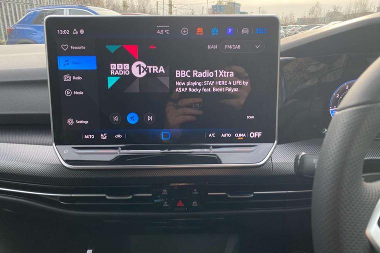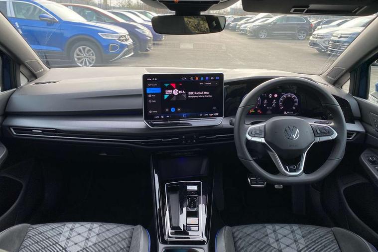 Activated carbon canister, Adaptive cruise control (ACC), Advanced driver attention and drowsiness monitor, Dynamic road sign display, Dynamic steering, E-Sim card for online connectivity, eCall emergency call system, Multi-color Digital cockpit pro, selection of different info profile possible, Multifunction front facing camera for distance control, Navigation system, Oncoming vehicle braking when turning including swerve support, Speed limiter, Speedo, rev counter, electronic odometer, trip, service interval display, exterior temperature and fuel gauge, Traffic jam assist, Voice enhancer and voice control, Warning signal and warning light for front and rear seatbelts not fastened, We connect plus preparation, We connect preparation, Wireless app connect, Hybrid propulsion system, Petrol Particulate Filter, Start-stop system with battery regeneration (recuperation - energy recovery during braking), XDS electronic differential lock for improved traction and handling, 2 USB C ports in front, 2 USB charging sockets on the centre console in the rear charging capacity upto 45W, Digital radio reception (DAB), Diversity antenna for FM reception, Gaming platform via car app, Infotainment system with 12.9" display, Mobile phone interface with inductive charging feature, 3rd brake light, Automatic headlamp activation with Coming home and Leaving home feature, Body colored bumpers in R-Line style, Body colour door handles, Exterior mirrors convex on the left and aspherical on the right, Front and rear electric windows, Heat insulating windshield made of laminated glass, LED separate daytime running light, Rear exhaust tailpipe, Rear fog light on one side and reversing lights on both sides, Rear side wing doors, Rear windscreen washer and wiper with interval delay, Remote electrically foldable door mirrors, puddle lights and reverse activated passenger's door mirror, Welcome light with surround lighting, 12V socket in front centre console, 12V socket in luggage compartment, 3 rear head restraints, 3 seat bench in 2nd row, Ambient lighting with 30 colour including LED light unit in front footwell with selectable light colour, Black roof lining, Brushed stainless steel pedals, Chrome plated radiator grille inserts, air vent surrounds and light switch surrounds, Door insert, side trim panel and arm support in leatherette, Front + rear black carpet mats, Front centre armrest, Front seat lumbar support adjuster, Integrated front head restraints, ISOFIX anchors for child seats on outer rear bench seats and on front passanger seat compatible for i-Size, Luggage compartment lighting, Manual height adjustable front passenger seat, Manually height adjustable driver seat, Plastic gear knob, Premium sports seats in front, Rear cupholder and loadthough, Sardegna cloth upholstery with front and outer rear seats Art Velour inner sides of bolsters, Single front passenger seat, Split folding backrest with centre armrest and unsplit rear seat bench, Sun visors with illuminated vanity mirrors, Titanium black instrument panel, 3 point height adj front seatbelts + pretensioners, 3 rear three point seatbelts, ABS, Autonomous emergency braking front assist with pedestrian and cyclist monitoring, Child locks on rear doors, Driver and front passenger airbag with front passenger airbag deactivation, Electronic parking brake with auto hold, ESC (Electronic Stability Control), Extended pedestrian protection measures, Hill start assist, Rear disc brakes, Two tone horn, Tyre pressure loss indicator, Volkswagen roadside assistance, Anti theft wheel bolts, Preparation for alcohol interlock, Decorative inserts carbon grey for dashboard and front door trim panels, Tool kit for tyre mobility set, Tyre mobility kit Includes 12V compressor and tyre sealant,