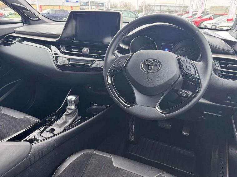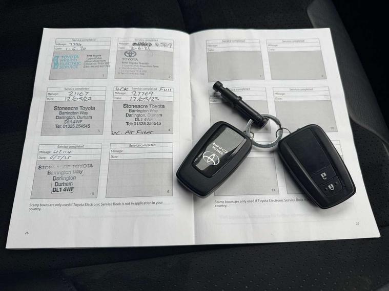 18" 5 double spoke matt black alloy wheels, Tyre repair kit, Immobiliser, Intrusion alarm, Motion sensor alarm, Remote central locking, Smart entry + Smart start, DAB Radio (Digital Audio Broadcasting), JBL premium sound system with 9 speakers, Steering wheel mounted controls, USB and Aux in connectors + 12V front outlet, Wi-fi connectivity, 3x3 point rear seatbelts, ABS+EBD+Brake assist, Electronic parking brake, ESP + traction control, Front and rear seatbelt reminder, Front passenger airbag on/off switch, Hill start assist control (HAC), Pre collision system with pedestrian detection, Rear child proof door locks, Road sign information display, Supplemental restraint system (SRS) airbags - 7 airbags including driver, front passenger, curtain, side and knee airbags, Toyota safety sense, Tyre pressure monitoring system, Auto high beam, Automatic headlight levelling, Automatic headlights, Automatic retractable door mirrors, Bi-tone black roof, Body colour door handles, Body colour door mirrors, Body coloured bumpers, Boot door release with push button, Door mirror puddle lights, Electric folding/heated door mirrors with integrated indicators, Electrochromatic rear view mirror, Follow me home headlights, Front and rear electric windows, Hard tonneau cover, Heated rear windscreen, Intermittent wipe, LED daytime running lights, LED front fog lights, LED headlights with sequential LED indicators, LED High mounted stop lamp, LED rear brake lights, LED rear lights, Pearlescent paint, Rain sensitive windscreen wipers, Rear privacy glass, Rear spoiler, Rear wiper, Shark fin antenna, Trailer Sway Control, 12V Accessory socket, 3 spoke leather steering wheel with multimedia switches, Ambient lighting, Chrome interior door handles, Clean air filter, Driver + front passenger electric lumbar support, Driver and front passenger personal light, Driver and front passenger Whiplash Injury Lessening seats, Driver/passenger sunvisors and illuminated vanity mirrors, Dual zone automatic air conditioning, Folding rear seats, Front and rear door pockets, Front console box and front cupholders, Front cupholders x 2, Front head restraints, Gear shift indicator, Glovebox with internal light, Heated driver and front passenger seats, Illuminated entry system, Isofix seat fixing, Leather effect padded armrest on front console box, Leather gearshift, Leather/Alcantara upholstery, Light blue ambient lighting on front doors, Pollen filter, Rear headrests, Tilt/telescopic steering column, 7" Coloured TFT multi informational display, 8" touch screen, Adaptive cruise control, Adjustable speed limiter, Bluetooth connectivity, Electric power steering, Intelligent parking assist with front & rear parking sensors, Lane change assist and blind spot monitor, Lane departure alert with steering control, Lights on warning, Push button starter, Rear cross traffic alert, Reversing camera, Reversing camera display in audio screen, Road sign assist - RSA, Touch 2 Go navigation system, Trip computer, Voice recognition, Vehicle Stability Control (VSC),