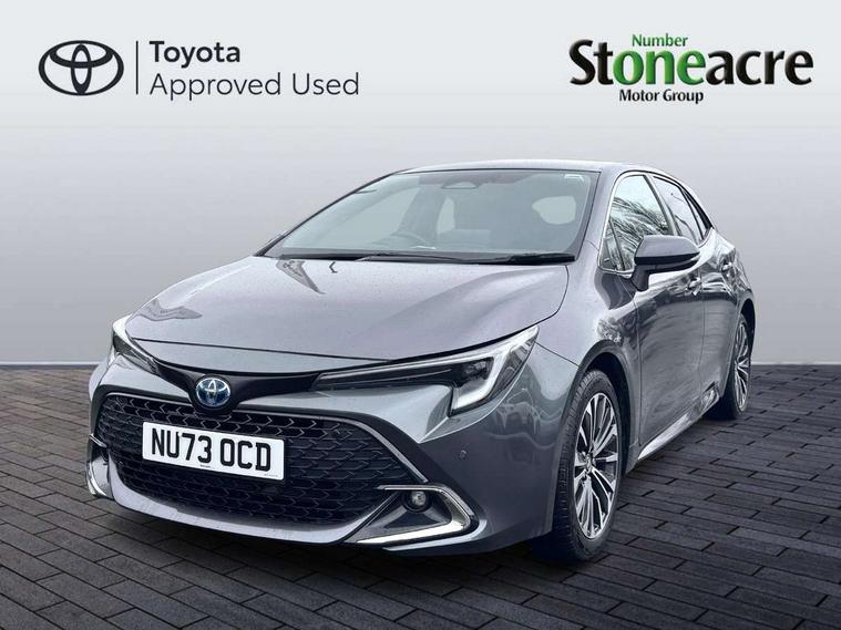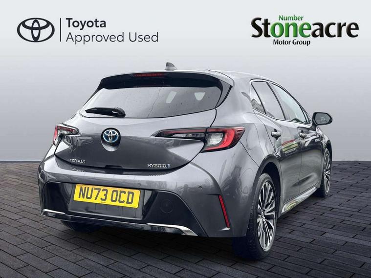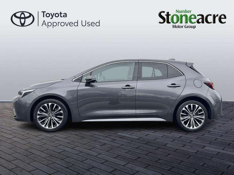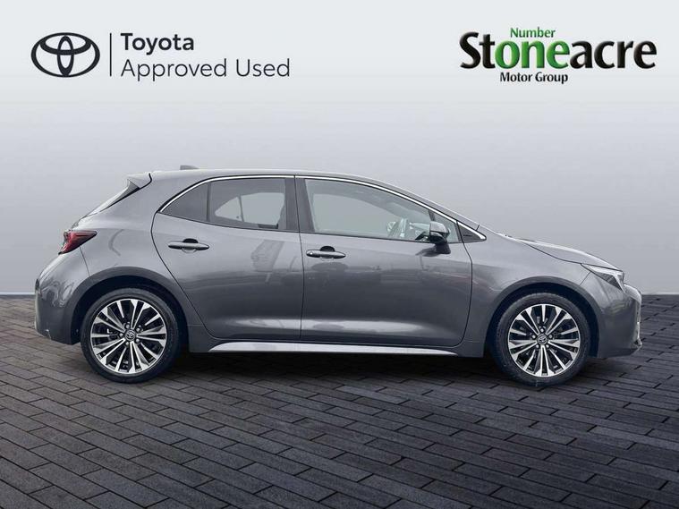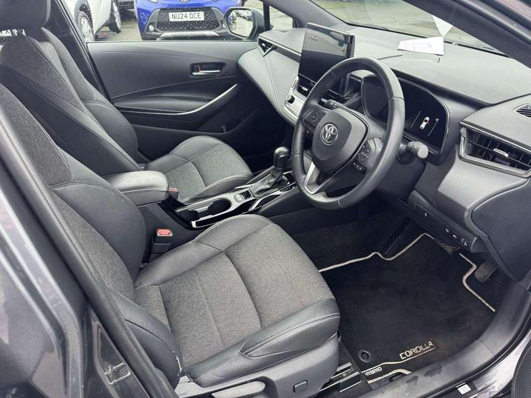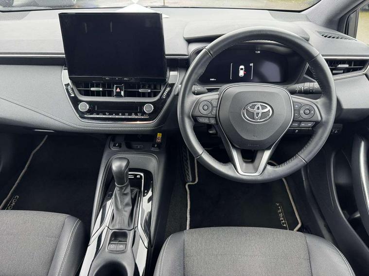 10.5" Multimedia display screen, Attention assist, Bluetooth telephone connectivity, Connected car functionality upgrade, tracker, remote status and e-care, Drive mode select (Eco, Normal), E-call, Electrically assisted power steering, EV drive indicator, Front and rear parking sensors with auto brake, Full Digital 12.3" TFT Digital Combimeter, Key reminder warning, Lane Departure Alert (LDA) switch on steering wheel, Memory on adjustable speed limiter, MyT connected services, Proactive driving assist (PDA), Reversing camera, Smartphone integration with Apple CarPlay and wired android auto, Tailgate, Toyota remote services, Toyota smart connect navigation, Wireless charger, Gasoline particulate filter, Vehicle Stability Control (VSC), 6 speakers, AM/FM radio, DAB Digital radio, Front USB-C in dashboard, Smart voice assist/ Voice recognition, USB and Aux in connectors + 12V front outlet, Anti-jam protection on power windows, Auto up and down function on all power windows, Automatic folding mirrors, Automatic headlights with high beam assist, Black centre and side air vents, Black metallic meshed front grille, Black toyota logo in front, Body coloured bumpers, Body coloured door mirrors, Body coloured front spoiler, Body coloured outside door handles, COROLLA alloy door scuff plates, Electrochromatic mirror, Follow me home headlights, LED daytime running lights, LED dual beam projector headlights, LED front fog lights, LED High mounted stop light, LED multi reflector in headlights, LED rear combi lights with LED lightguide, Manual headlight levelling system, New grille pattern, Noise reduction layer on windscreen, Piano black diffuser, Power adjustable heated door mirrors, Power front windows, Power rear windows, Privacy glass with UV filter, Rain sensing wipers, Rear bumper decoration with chrome plated inserts, Rear side wing doors, Rear under guard with chrome ornament, Rear window defogger, Rear window wiper, Reverse tilting door mirrors, Roof spoiler, Satin chrome insert on front air vents, Satin chrome insert on front door assist grips, Shark fin antenna, Tailgate release with push button, Time adjustment on intermittent wiper, Turning signal integrated indicators in door mirrors, Unique lower skirt, Unique side rocker with black insert, UV-filter on driver and passenger windows, 2 Shopping bag hooks in luggage compartment, 3 rear headrests, 3 seat bench in 2nd row, 3 spoke leather steering wheel with satin insert + gear knob, 4 tie down hooks in luggage compartment, 60/40 split folding rear seat, Adaptive cruise control (ACC) switch on steering wheel, Adjustable speed limiter switch on steering wheel, Audio, multimedia and telephone switches on steering wheel, Black armrest on centre console box, Black gear shift console, Boot light, Centre room light, Driver and front passenger personal light, Driver and passenger assist grip, Driver and passenger sun visor with mirror and light, Dual zone automatic air conditioning with ECO mode switch, Fabric/synthetic leather upholstery, Front and rear cup and bottle holders, Front door pockets, Front head restraints, Front passenger seat, Front sliding synthetic leather armrest, Heated seats, Illuminated entry system in room lamp, ISOFIX seat fixing (2 fixings on rear outer seats), Leather gear shift with satin chrome on gear shift console, Manual height adjustable for driver and front passenger seat, Manually tilt with sliding driver and front passenger seat, Parcel shelf, Passenger seat back pocket, Pollen filter, Power adjustable lumbar support on driver seat, Power window switches with satin chrome inserts, Rear armrest with 2 cupholders, Rear passenger coat hooks (2), Remote air conditioning, Satin chrome inside door handles, Satin chrome surround on heater control panel, Satin chrome surround on speedometer, Sliding armrest on centre console box, Slow opening glovebox with lights, Textile floor mats, Tilt/telescopic steering column, Voice recognition switch on steering wheel, Whiplash Injury Lessening (WIL) feature (active headrest) for seats, White ambient lighting on open tray and front cup holder, Toyota safety sense 3 pack - Corolla, 3x3 point rear seatbelts, Adjustable driver and front passenger seat belt extender to top anchor point, Anti lock braking system + Electronic brake force distribution, Brake assist function, Child locks on rear doors, Downhill Assist Control (DAC), Electronic parking brake, Emergency brake light signal (EBS), Front passenger airbag on/off switch, Front seatbelt reminder, HAC - Hill start assist control, Rear seat belt reminder, Seatbelt pretensioners and force limiters, Supplemental restraint system (SRS) 7 airbags - dual driver, dual side curtain, side impact and driver knee airbags, Traction control, Tyre pressure warning system, Acoustic vehicle alert system (AVAS), Alarm with motion sensor and immobilizer, Power passenger window lock, Remote central locking + deadlocks, Satin chrome dash trim, Soft touch texture on upper dashboard, Stitching on lower dashboard, 17" Black machined face 5 double spoke alloy wheels, Tyre repair kit, Unique wheel finish with red wheel cap,
