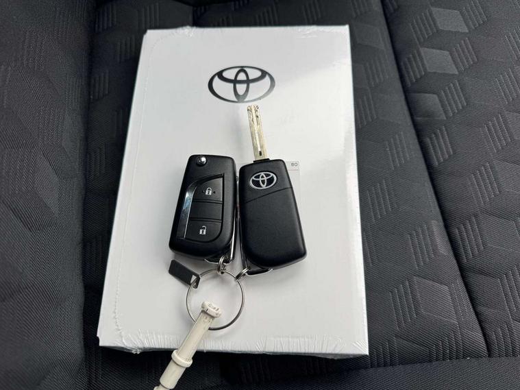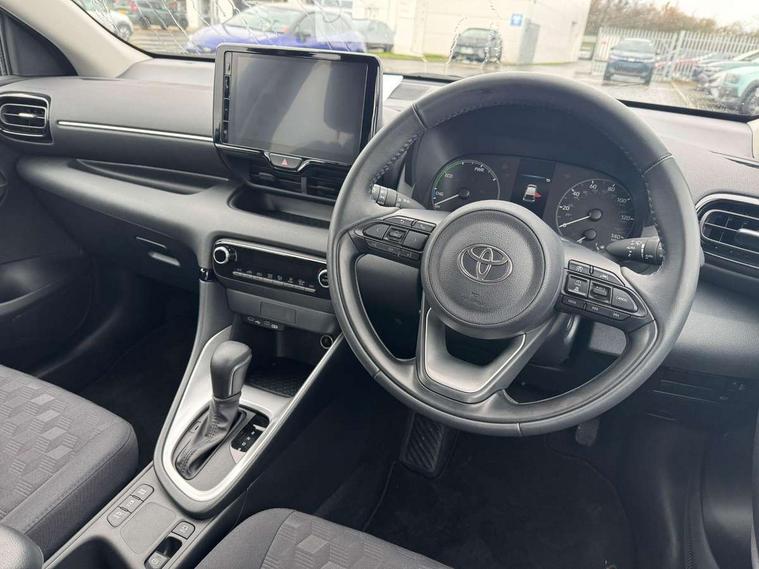 4.2" coloured TFT multi information display with analogue speedometer, Adaptive cruise control, Adjustable speed limit with speed warning, Bluetooth connectivity, E-call, Electric power steering, Hybrid energy display, Lane trace assist, Multi information display switches on steering wheel, Pre-collision system (PCS), Reversing camera, Smartphone integration with Apple CarPlay and Android auto, Tailgate, Voice recognition, Vehicle Stability Control (VSC), 4 speakers, 9" Multimedia touch display, Toyota Touch 3 system with DAB radio, USB connection, Acoustic windscreen glass, Auto high beam assist, Auto windscreen wipers, Automatic headlights, Body coloured door mirrors, Bulb indicators, Chequered front grille, Daytime running lights, Electric adjustable heated door mirrors, Follow me home headlights, Front auto power windows with anti jam protection, Front halogen fog lights, Halogen projector headlights, LED High mounted stop lamp, Manual headlight levelling, Rain sensor, Rear auto power windows with anti jam protection, Rear roof spoiler, Rear side wing doors, Rear wiper, Shark fin antenna, Turning signal integrated indicators in door mirrors, Variable front intermittent wipers, 3 adjustable rear headrests, 3 seat bench in 2nd row, 3 spoke leather steering wheel, 60/40 split folding rear seat, Active headrests, Adjustable boot height, Auto air conditioning, Coat hooks in rear grab handles, Cup holders (2 front & door), Data Communication Module (DCM) connected services, Fabric upholstery, Front armrest, Glovebox, Grey roof lining, Height adjustable driver's seat, Isofix seat fixing, Leather gearshift, Pollen filter, Shopping bag hooks, Single front passenger seat, Tilt/telescopic steering column, 3 point seatbelts on all rear seats, ABS+EBD+Brake assist, Electronic parking brake, Emergency brake light system (EBS), Front passenger airbag on/off switch, Front seatbelt reminder, Hill start assist control (HAC), Rear child proof door locks, Rear seat belt reminder, Supplemental Restraint System (SRS) 8 airbags: Driver & passenger's airbags, dual side curtain airbags, side impact airbags, front centre airbag, Toyota Safety Sense 3 with over the air updates, Tyre pressure warning system, 2x Master key, Alarm/immobiliser, Remote powered central double locking doors, Soft touch instrument panel, 16" 5 spoke silver finish alloy wheels, Space saver spare wheel,