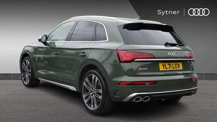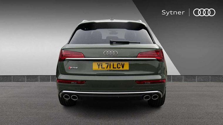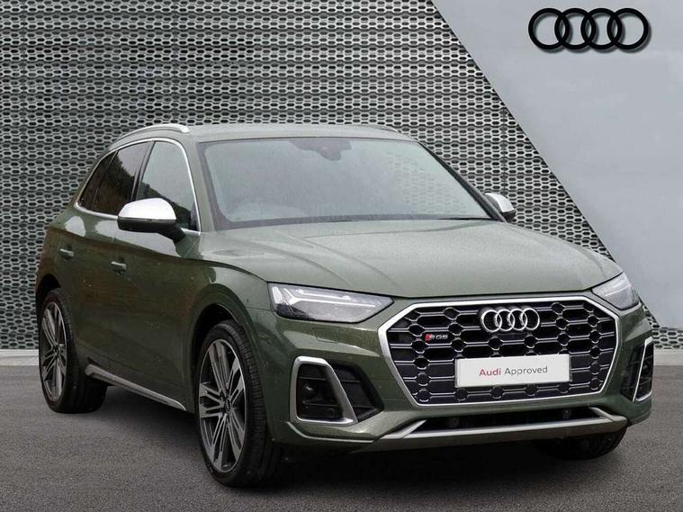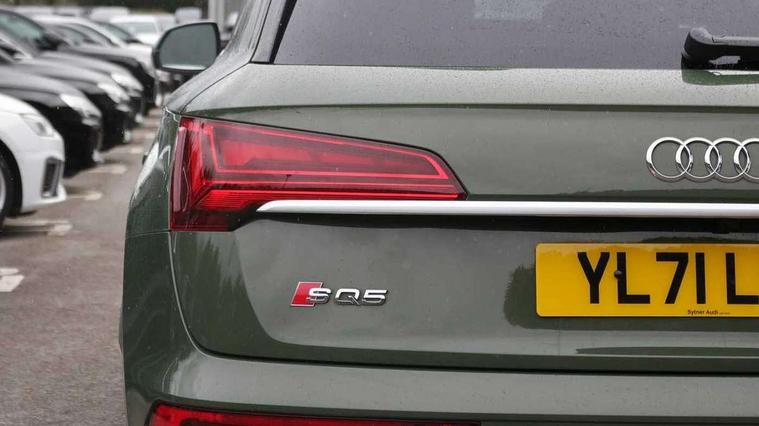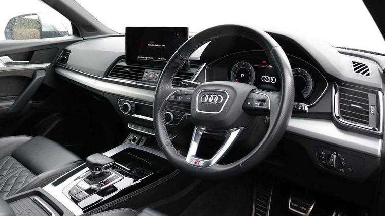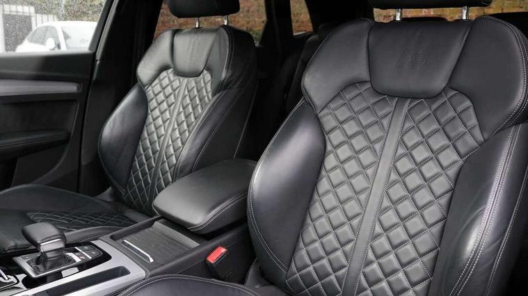 Audi connect safety and service (e-call), Audi connect with Amazon Alexa Integration, Audi drive select, Audi phone box with wireless charging, Audi virtual cockpit plus with 12.3" screen and three different layout designs, Audi wireless smartphone interface, Automatic start-stop system with coasting functionality and efficiency programme, Bluetooth interface, Electro - mechanical power assisted steering, MMI navigation plus with 10.1" touch screen, Power tailgate, Reversing camera, Service interval indicator, Voice control system with Audi hotword activation "Hey Audi", 70 litre fuel tank and 24 litre AdBlue tank, Diesel particulate filter, Quattro on demand, S sports suspension, 2 x USB charging port with aux input socket, Audi sound system, DAB Digital radio, Acoustic windscreen, Aluminium roof rails, Audi beam, Auto dimming rear view mirror, Automatic headlights and windscreen wipers, Body colour bumpers, Body colour rear diffuser with matt aluminium silver surrounds, Body colour underbody protection, Chrome plated exhaust trims, Door sills in Selenite silver, Electric adjustable/heated/folding door mirrors, Front air inlet surrounds in aluminium, Front and rear electric windows, Front radiator grille in honeycomb design, Headlight washers, Lower bumpers painted in contrast Manhattan grey, Rear chrome trim strip below lights, Rear privacy glass and rear side windows, Rear spoiler, Rear wiper, Roof bars, S front and rear bumpers, S Line side skirts, S specific rear diffuser, 3 rear headrests, 4 way electric lumbar support for driver and front passenger, 40:20:40 split folding rear seat with rear centre armrest, Black cloth headlining, Comfort front centre armrest, Contrast stitching on seats, steering wheel and gear lever gaiter, Deluxe 3 zone electronic climate control, Fine Nappa leather upholstery with diamond pattern contrast stitching + front sport seats with S embossed logo, Front/rear floor mats, Fully electrically adjustable seats, Gear lever in black leather, Heated front seats, Height adjustable front head restraints, Height/reach adjustable steering column, Illuminated door sill trims with S logo, ISOFIX child seat mounting and top tether, Luggage compartment cover, Massage function for front seats, Rear seat bench plus, Removable luggage compartment floor, Stainless steel pedals, Sunvisors with vanity mirrors, Extended interior upholstery pack - Q5, High gloss pack - Q5, LED interior light pack - Q5, 3 point seatbelts on all seats, 6 airbags - Driver, front passenger, curtain and side airbags, Electrically operated child locks on rear doors, Electromechanical parking brake, Electronic stabilisation control including ABS, ASR and EDL, Front passenger airbag deactivation, Hill descent control, Hill hold assist, Multi collision brake assist, Pop-up bonnet for pedestrian protection, Pre sense city, Seat belt force limiter, Seatbelt monitoring, Tyre pressure warning, Warning triangle and first aid kit, Anti theft alarm, Anti-theft wheel bolts, Keyless Go access/ignition system,
