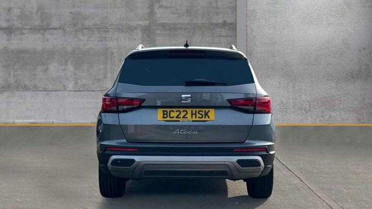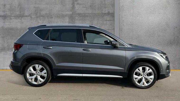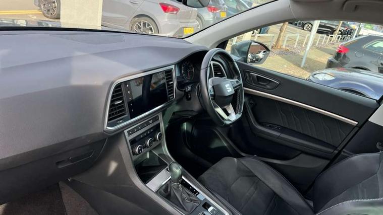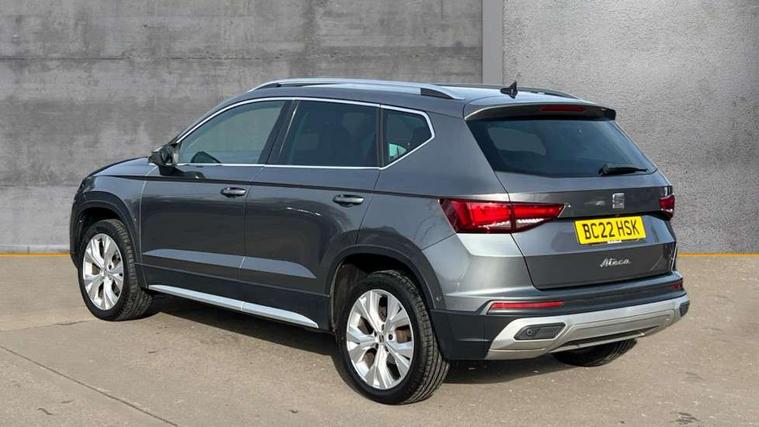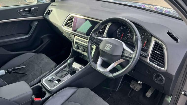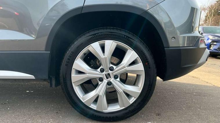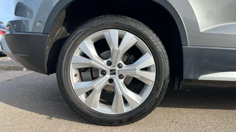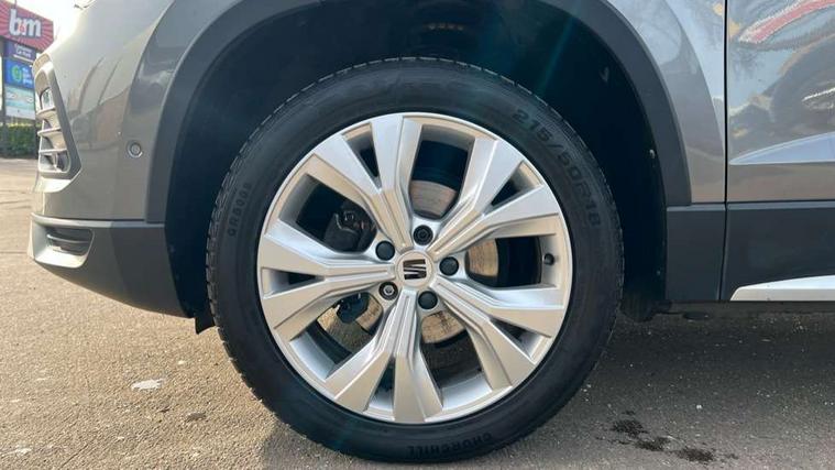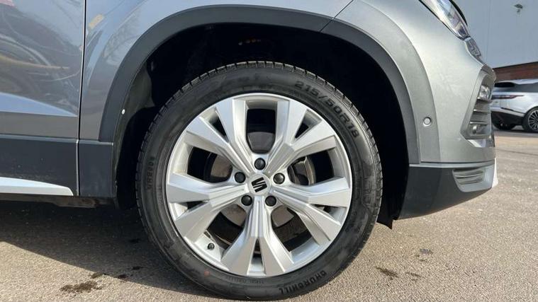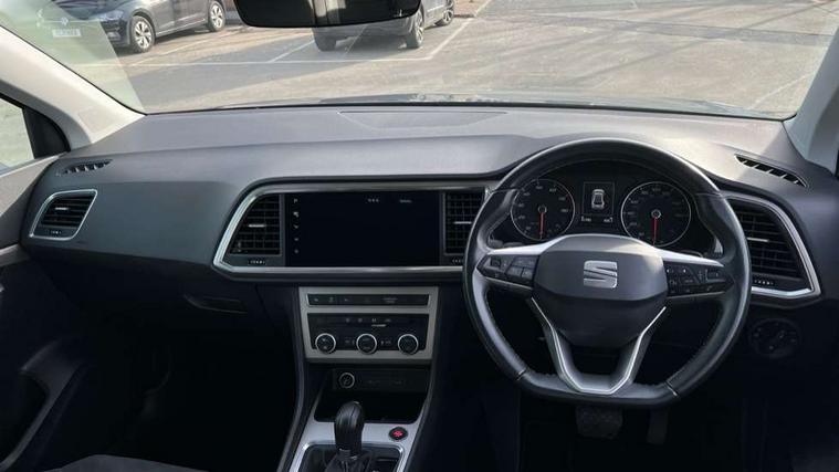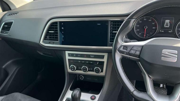 E-call, Outside temperature gauge, Progressive power assisted steering, Rear view camera, SEAT drive profile with driving experience button - Normal, Sport, Eco and Individual mode, gearshift, steering and throttle response, Self parking functionality (includes front and rear parking sensors), Trip computer, Wireless full link smartphone integration, Wireless phone charger, Steering wheel mounted audio/phone controls, Black simulated exhaust pipes, Body colour bumpers, Body coloured wheel arch surrounds, Chrome front grille frame, Chrome roof rails, Chrome side window trim, Dark tinted rear windows, Daytime running lights, Door mirrors with welcome light silhouette, Dynamic headlight range control with self adjusting whilst driving, Electric adjustable/heated/folding door mirrors, Front and rear electric windows, Front grille hot stamping, Full LED headlamps with lens and LED front fog lamps with cornering function, Illuminated aluminium front door sill, LED rear tail lights with dynamic indicators, Rear fog lights, Rear side wing doors, Rear wash/wipe, Reflex silver side mouldings, 12V socket in front, 3 seat bench in 2nd row, 60/40 split folding rear seat, Dual zone climate control, Front and rear head restraints, Front centre armrest, Front seat back storage pockets, Height adjustable driver and passenger seat with lumbar adjustment, ISOFIX points in outer rear seats with top tether anchorage points, Leather steering wheel and gear knob, Microsuede upholstery with front comfort seats, Rear armrest and easy back seat release mechanism from boot, Single front passenger seat, Steering wheel mounted gearshift paddles, Storage compartment under driver's seat, Convenience pack - Ateca, Interior lighting pack - Ateca, Navigation system pack with DAB - Ateca, Safe and driving pack - Ateca, 3x3 point rear seatbelts, ABS, Traction control system (TCS), Electronic stability control (ESC) and Electronic differential lock system (XDS), Airbags - Driver and front passenger airbag with deactivation, front side, two curtain and driver's knee airbags, Electric parking brake with auto hold function, Front and rear seatbelt reminder, Hill hold control, Manual rear child locks, Tiredness recognition system, Traction control, Tyre pressure monitoring system, Alarm, Keyless entry, Locking wheel bolts, Chrome interior detailing, 18" Brillaint silver alloy wheels,