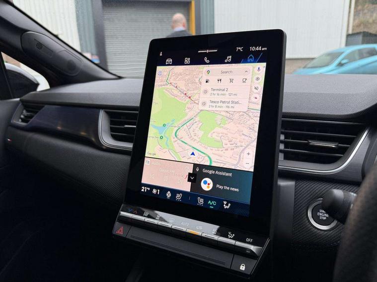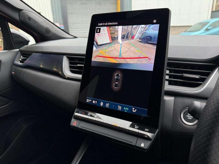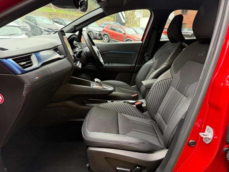 10.25" digital driver display, 10.4" OpenR link touchscreen with with built in Google Automotive Services and navigation, Adaptive cruise control with speed limiter, Blind spot warning and rear detection, Driver attention alert system, Eco mode driving function, Front, rear and side parking sensors, Front/rear detection with emergency lane keep assist incl. solid line, oncoming traffic and road edge detection, Gear change indicator, Lane centering assist, Multi Sense - 3 driving modes and up to 48 ambient lighting colours, My safety switch - ability to personalise ADAS features at press of a button, PAS, Power hands-free tailgate opening, Rear cross traffic/pedestrian alert with rear braking assitance, Rear view camera, Renault automatic emergency assist, Traffic sign recognition with overspeed prevention, Trip computer, Wifi smartphone integration compatible with Apple CarPlay and Android Auto, Wireless phone charger, 2 front and 2 rear USB-C ports, Arkamys speakers - x6 inc. 2 boomer, 2 tweeter and 2 bicone, DAB radio with Bluetooth, Automatic headlights, Automatic high / low beam, Automatic windscreen wipers with rain sensor, Dark tinted rear windows and tailgate, Electric adjustable/heated/auto folding door mirrors, Esprit alpine exterior styling, Frameless auto dimming rear view mirror, Front and rear electric windows with driver window one touch facility and anti pitch function, Front matte grey and rear skid plates, Full LED front and rear lights, Gloss black window surround, Heated rear window, LED daytime running lights, LED rear fog lights, LED third brake light, Radiator grille with 3D graphics in black upper part with grey graphics and body tone lower part, Rear side wing doors, Rear wiper, Shark fin antenna, 2 front roof LED lights and central rear rooflight with 3 reading LED lights, 3 seat bench in 2nd row, Aluminium sports pedals, Automatic air conditioning with one touch quick demist function and air quality regulator, Driver and front passenger seat with electric height adjustment, Esprit alpine interior styling, Flying console with central storage, sliding armrest and 2 rear air vents, Front and rear head restraints, Heated front seats, Heated synthetic leather steering wheel, Height and depth adjustable steering wheel, ISOFIX child seat fixing points on rear outermost seats, Modular boot floor, Rear seats - 1/3:2/3 foldable sliding bench, Recycled fabric upholstery, Single front passenger seat, Sunvisor with mirror and light, 3x3 point rear seatbelts, Abs with emergency brake assist, Active emergency braking system - Urban and pedestrian/cyclist, Distance warning alert, Driver and front passenger and 3 rear passengers seatbelt reminder, Driver and front passenger, side, head and curtain airbags, Driver height adjustable seat belt, Electronic parking brake with auto hold function, Front passenger airbag deactivation, Hill start assist, Occupant safe exit, Rear window and door child locking function, Tyre pressure warning light, Central door locking, Hands free keycard with Keyless access and start, Brushed blue decorative upper strip, Lower textile strip on dashboard with red, white and blue flag, 19" Esprit alpine elixir alloys wheels,