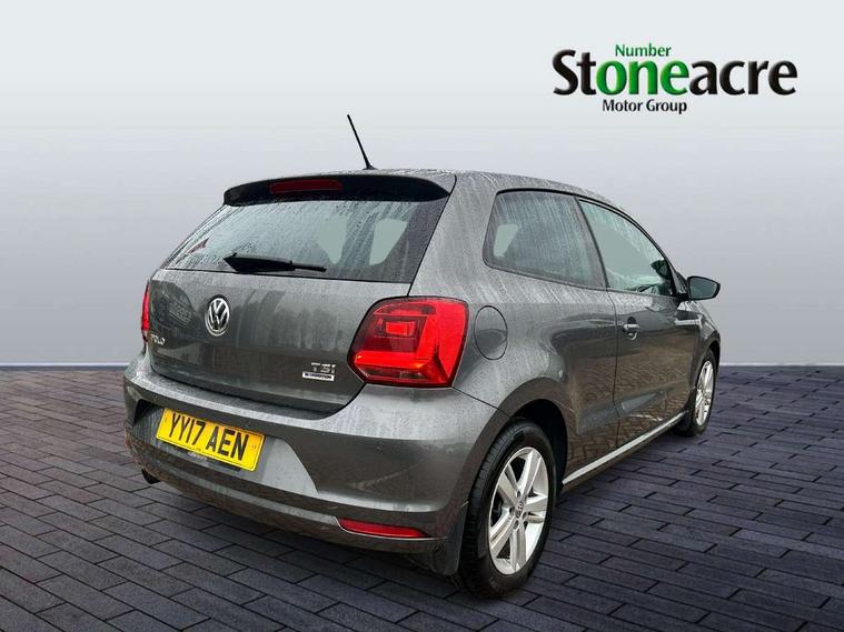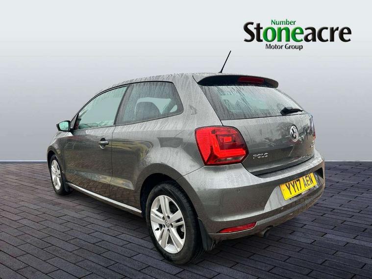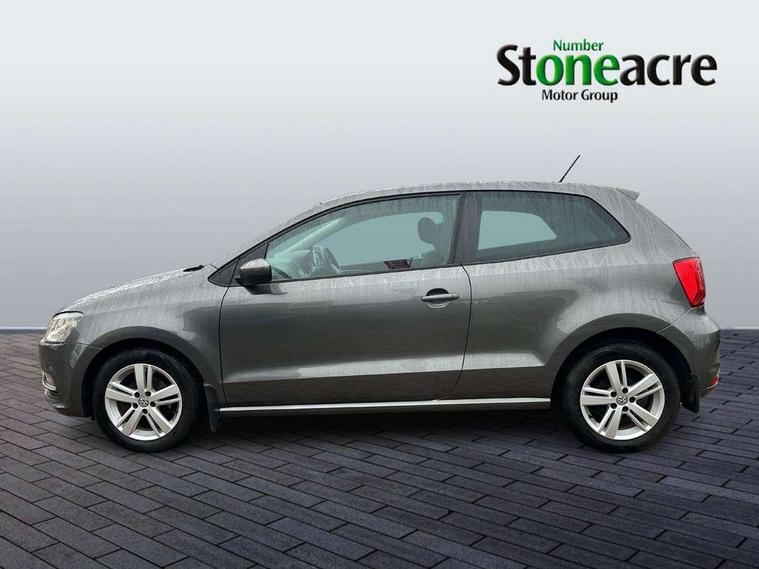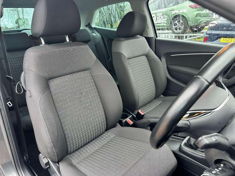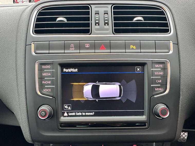 App-Connect, Bluetooth Telephone preparation, Driver alert system, Multi function display, Multifunction computer, PAS - speed related, Service interval indicator, Ultrasonic front and rear optical and audible parking sensors, Warning buzzer and light for front seatbelts unfastened, 6 speakers, Composition media system with radio, glovebox mounted CD, colour touch screen, SD card, aux-in, USB, multimedia interface, DAB Digital radio, Black grille with chrome surround, Body colour bumpers, Body colour door handles, Body colour door mirrors, Body coloured side sills, Chrome trimmed front air intake surrounds, Electric folding door mirrors, Electric front windows, Electric operated/heated door mirrors, Front fog lights with static cornering function, Front wash/wipe with interval delay, Heat insulated tinted glass 65% light absorbing from B pillar back, Heated rear window with auto timer, Rear windscreen washer and wiper with interval delay, 12V power socket in centre console, 2 bag hooks in luggage compartment, 2 cupholders, 3 rear head restraints, 3 spoke steering wheel, 4 grab handles, 60/40 split folding rear seat, Centre console storage, Chrome interior door handles, Driver and passenger sunvisors, Driver seat height adjust, Dust/pollen filter, Easy entry slide seats (access to rear seats), Front door pockets, Front passenger seat height adjust, Front seat backrest storage nets, Front/rear reading lights, Glovebox, Height/reach adjustable steering column, Illuminated vanity mirror, Interior light with delay, Isofix Preparation 2 Rear child seats, Luggage compartment cover, removable, Luggage compartment lighting, Matt chrome gear lever gaiter surround, Multifunction leather steering wheel with leather gear knob/handbrake grip, Storage compartment in front doors, Sunglasses holder, Variable boot floor, Light and sight pack - Polo, 3 point height adj front seatbelts + pretensioners, 3x3 point rear seatbelts, ABS, Automatic post collision braking, Driver/front passenger airbag, Driver/Passenger whiplash optimised head restraints, ESC - Electronic Stability Control + traction control, ESP with EDL + ASR, Hill hold control, Hydraulic Brake Assist (HBA), Tyre pressure monitoring system, Alarm with remote central locking and interior protection, Electronic engine immobiliser, Air vents in Matt chrome, Matt chrome interior trim, 15" steel spare wheel,