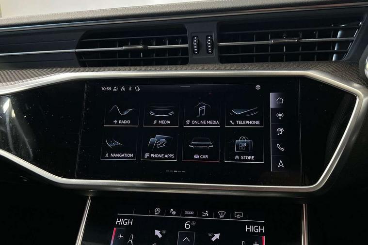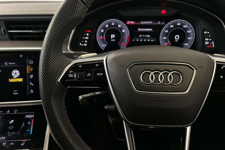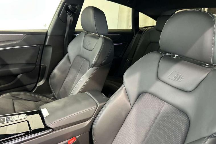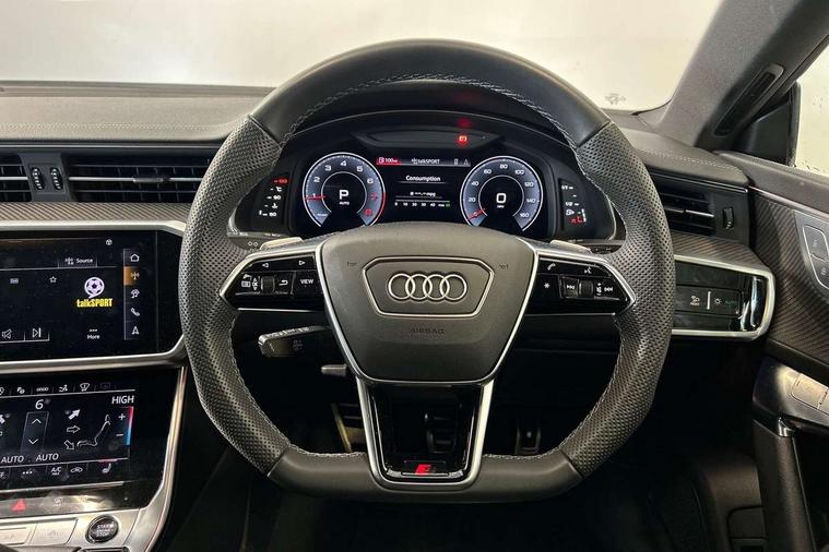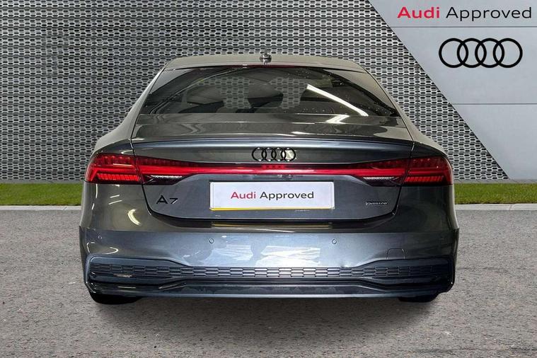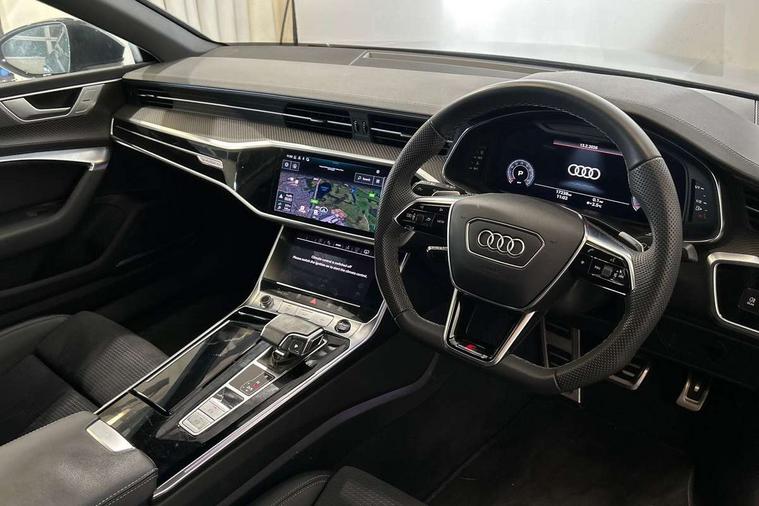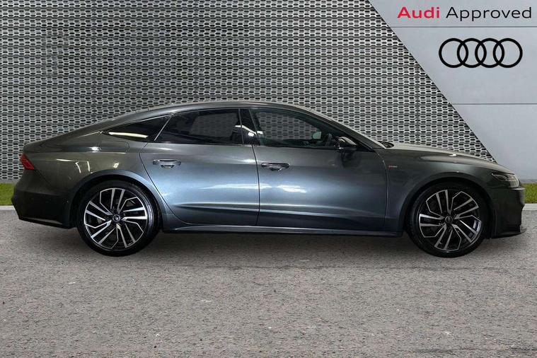 Audi connect safety and service (e-call), Audi connect with Amazon Alexa Integration, Audi drive select, Audi parking system plus - acoustic and visual park assist system for front and rear, Audi virtual cockpit, Automatic start/stop system with coasting functionality, Bluetooth interface, Camera based traffic sign recognition, Colour driver's information system display, Lane departure warning system, MMI nav plus with MMI touch + 10.1" and 8.6" HD haptic touch screen/3D city models/country information/online map/route info and personal route assist, Operating buttons in black, glass look with haptic feedback, Progressive steering, Rear view camera, Service indicator, Smartphone interface includes wireless Apple carplay/Android Auto, Voice control system, Quattro on demand, Sports suspension, Audi music interface, Audi sound system with 6 channel amplifier, 180 watt amplifying capacity and 10 loudspeakers including subwoofer, Auxiliary input socket, DAB digital radio module, Audi beam, Audi rings, front and rear as well as A7 at the rear in black, Black rear diffuser with chrome inlays, Electrically adjustable heated and folding + automatically dimming exterior mirrors with memory function, Frameless auto dimming interior rear view mirror, Front and rear electric windows, Gloss black highlights on the exterior area of the Audi Single frame, Gloss black highlights on the front and rear bumpers, Gloss black highlights on the radiator grille, Gloss black highlights on the side windows trim strips, HD Matrix LED headlights, Heat insulating darkened glass in side and rear windows, LED rear lights with dynamic indicators, Omission of output/technology badging, Privacy glass with side and rear windows, Rain and light sensors, Rear side wing doors, Rear wiper, Retractable rear boot spoiler, S air inlet in titanium anthracite black, Signature LED daytime running lights, Towbar preparation, Windscreen with heat-insulating glass, 2 zone deluxe electronic climate control, 4-way electric lumbar support, 40/20/40 split folding 3 seater rear seat bench with rear centre armrest, Audi phone box light, Black cloth headlining, Electrically adjustable front seats - driver seat with memory, Front and rear headrests, Front centre armrest, Heated front seats, Height/reach adjust steering wheel, Illuminated door sill trims with S logo, Illuminated sun visors with vanity mirrors, ISOFIX child seat mounting and top tether in front and outer rear seats with front passenger airbag deactivation, Leather gear knob, Leatherette upper instrument panel and door shoulders, Luggage compartment lid, electrically opening and closing, S line front and rear floor mats with contrast stitching, Single front passenger seat, Stainless steel pedals and foot rest, LED interior ambient lighting pack - A7, Non smoking pack - A7, 3 point seatbelts on all seats, Audi pre-sense front, Driver and passenger airbags, Electromechanical parking brake, Electronic stabilisation control including ABS, ASR and EDL, Extended pedestrian protection measures, Hill hold assist, Manual child lock in rear doors, Seatbelt monitoring, Tyre pressure warning light, Warning triangle and first aid kit, Anti theft alarm with tow away protection, Anti-theft wheel bolts and wheel loosening detection, Immobiliser, Keyless Go, Preparation for tracking system, Remote central locking, Carbon twill inlays, 20" 5 segment spoke evo style Audi sport black matte diamond turned alloy wheels, Tool kit,