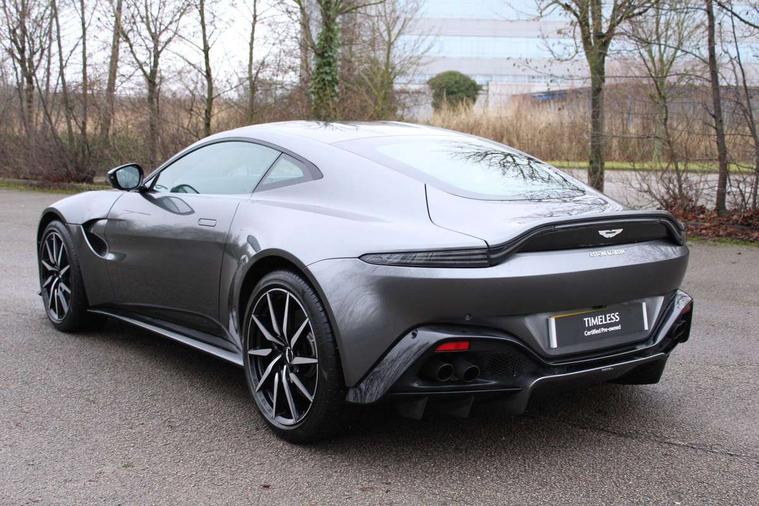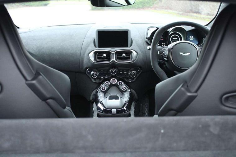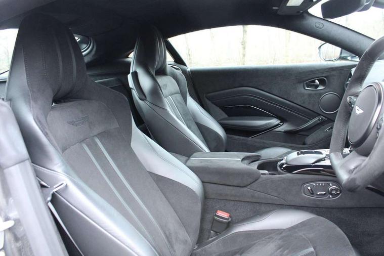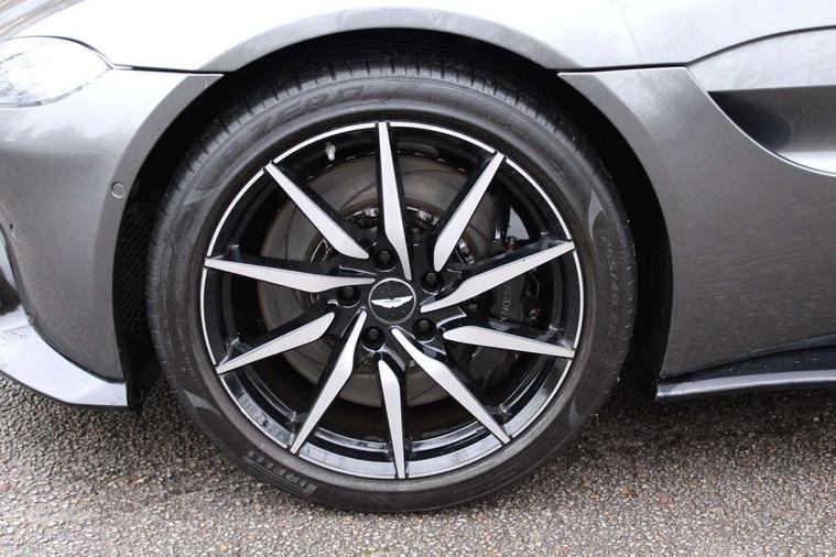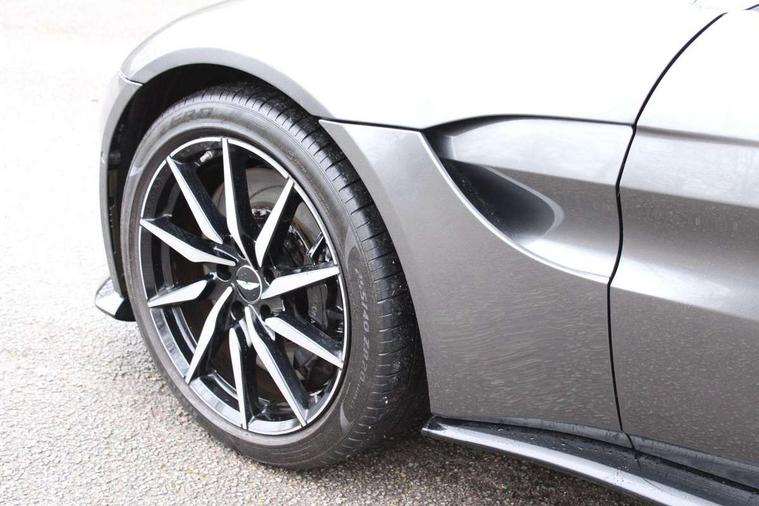 360 degree parking camera, Blind spot monitoring, Bluetooth Telephone preparation, Park assist, Rotary dials, Servotronic speed sensitive power steering, Trip computer, Sports suspension, Auxiliary input socket, DAB Digital radio, iPod connection, USB connection, Body colour decklid insert, Body colour door handles, Electric folding mirrors, Electric front windows, Heated door mirrors, Paint protection film, Quad matte black exhaust tailpipe finisher, Wind deflector, 8 way electrically adjustable front seats, Black loadspace carpet, Centre console armrest with closed storage, Climate control, Detailing perforation, Electric steering column with cruise control, Embossed - Aston martin wings, Floor mats, Front head restraints, Heated front seats, Service pack - Vantage, ABS + EBD + EBA, DSC - Dynamic Stability Control, Front side airbags, Hill hold assist, Hydraulic Brake Assist (HBA), Traction control, Tyre pressure monitoring system, Alarm, Immobiliser, Keyless entry, Remote central locking + boot release, Glass switches, Colour keyed wheel caps, Tyre repair kit,