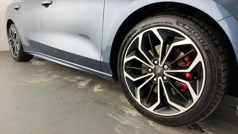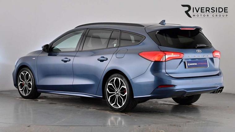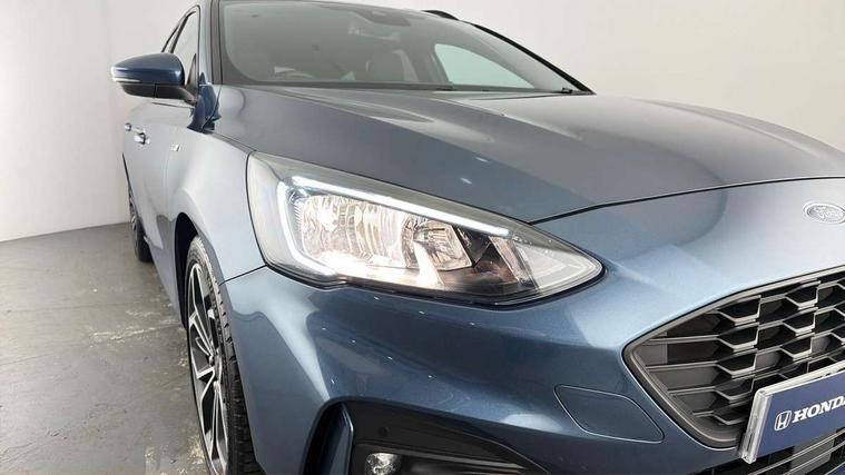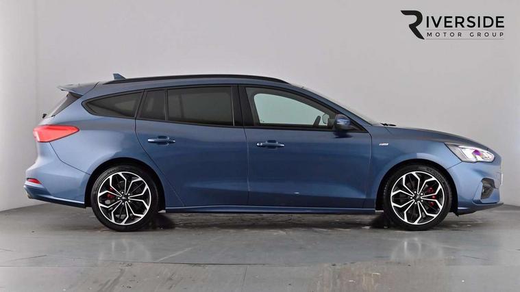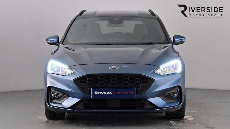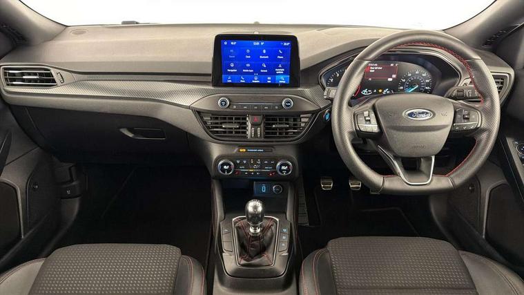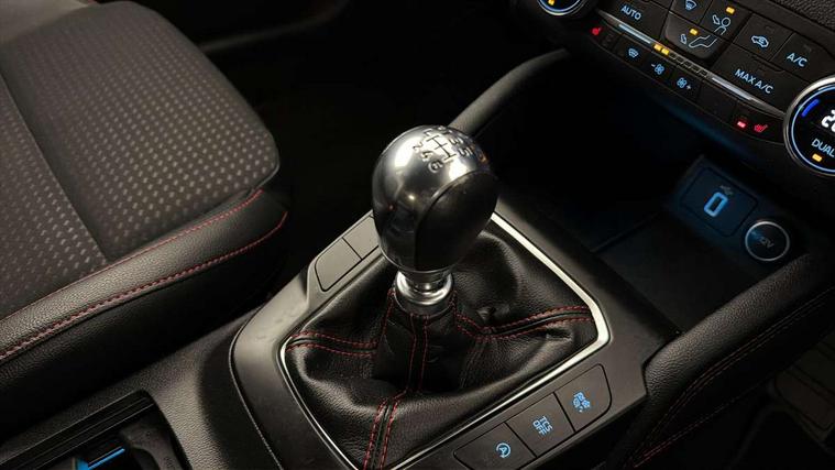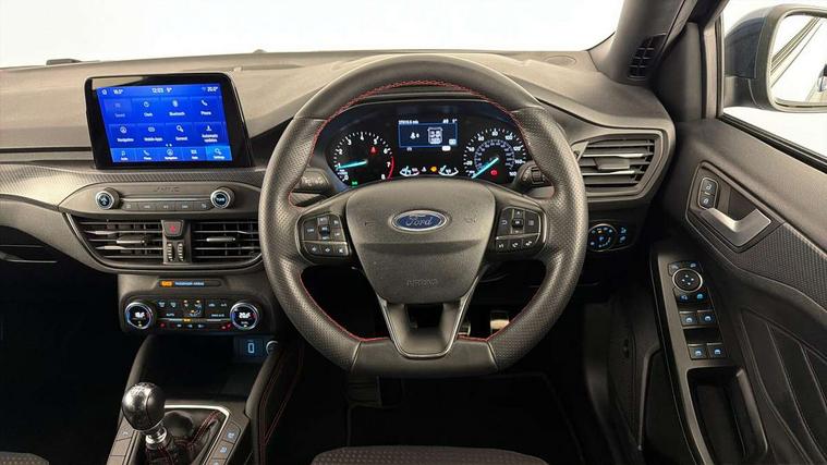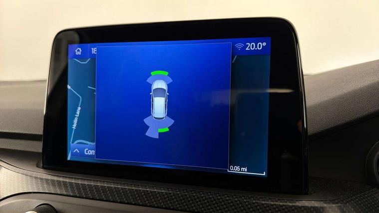 4" TFT coloured cluster screen, Bluetooth system, Digital clock, Easy fuel capless refuelling system, Eco mode, Ford pass connect, Ford SYNC 3 nav system with DAB radio, 8" colour touch screen, voice control, app link, Apple car play/Android auto and 4.2" TFT coloured cluster, Lane keeping aid with lane departure warning, PAS, Selectable drive mode, Trip computer, Sports tuned suspension, 2 USB ports, Aux input, 'Quickclear' heated windscreen/heated washer jets, Auto dimming rear view mirror, Auto headlamps (on/off), Automatic rain sensing wipers, Body colour large rear spoiler, Body colour side skirt, Body coloured bumpers, Body coloured door handles, Body coloured electrically operated and heated door mirrors with side indicators, Electrically operated front and rear windows with one touch opening and closing, Front variable intermittent wipers with electric wash, Heated rear window, LED daytime running lamp, LED front fog lamps with cornering function, Polished twin tailpipe, Power folding door mirrors with puddle lights, Rear privacy glass, Roof rails, ST-Line upper and lower grille with full body styling kit and wing badges, Tailgate wash/wipe, Unique door and instrument panel inserts, 3 spoke flat bottomed leather steering wheel with red stitching, 6 way power adjustable driver seat, 60/40 split back and cushion rear seats with 2 height adjustable headrests, Alloy finish pedals, Aluminium gear knob, Auto fold rear seats, Centre console with armrest, Dark headliner, Dual zone electronic air temperature control, Front and rear floor mats with red stitching, Front passenger seat manual height and lumbar adjust, Heated front seats, Height adjustable front headrests, Isofix child seat preparation, Part leather upholstery with red stitching, Reach + rake adjustable steering column, Rear centre headrest, Red stitching on steering wheel, Soft console knee pads with red stitching, ABS+Electronic Brake force Distribution, Auto hold function, Driver airbag, Electronic parking brake, Electronic stability control, Front and rear seatbelt reminder, Front inertia reel height adjustable seatbelts with pre-tensioners, Front passenger airbag, Front side airbags, Hill start assist, Passenger airbag deactivate switch, Post collision braking, Pre collision assist with autonomous emergency braking and pedestrian/cyclist detection, Red brake calipers, Side curtain airbags, Three rear inertia reel lap/diagonal seatbelts, Tyre pressure monitoring system, MyKey system, Remote central locking & engine immobiliser, Thatcham category 1 alarm, Contrast stitching - Red, 18" 5x2 spoke matt black machined finish alloy wheels, Mini steel spare wheel,