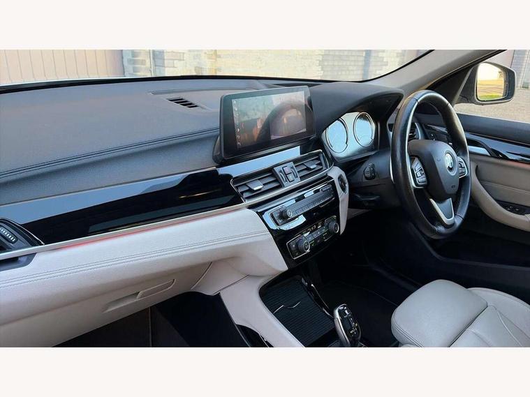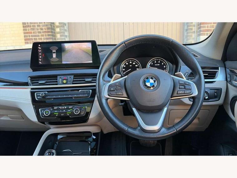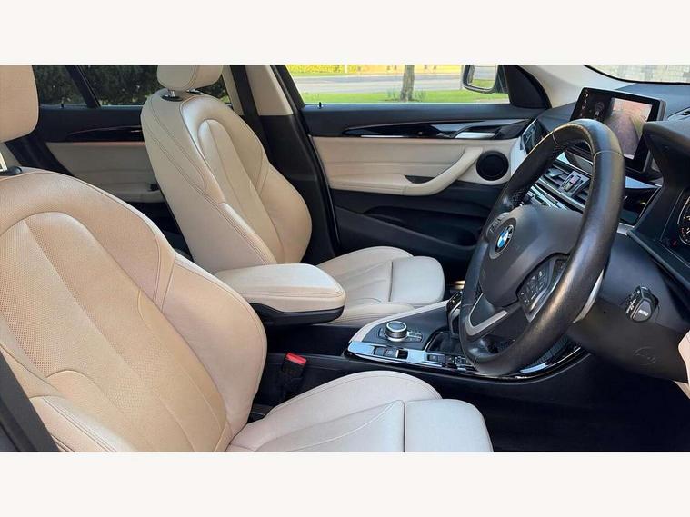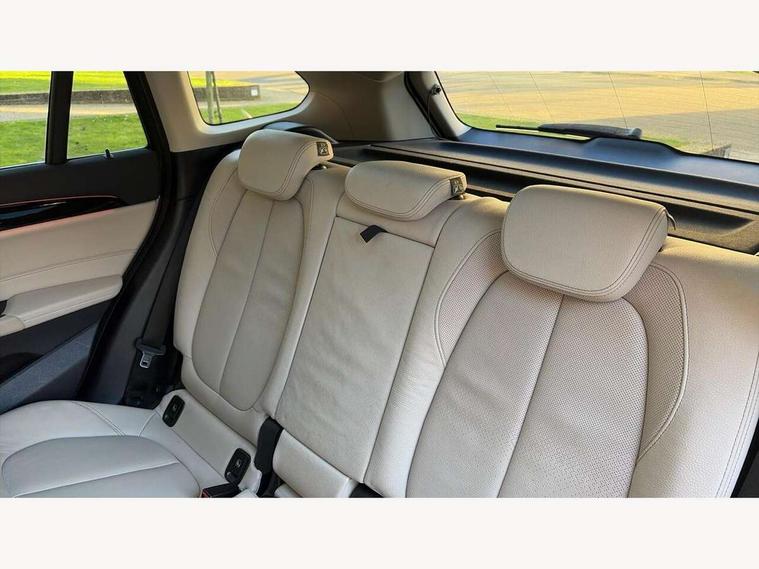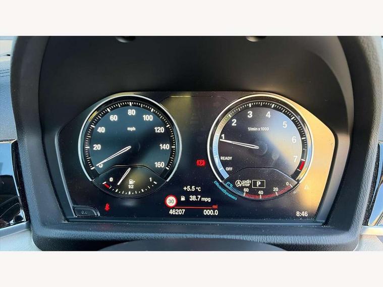 Ambient temperature display, Attentiveness assist, Automatic tailgate opening, BMW Online services, BMW remote services, BMW Teleservices, Brake pad wear indicator in front and rear, Front/rear park distance control (PDC), Instrument cluster with speedometer with miles per hour read out, tachometer and fuel gauge, Lights on warning by audio warning signal when ignition is switched off, On board computer, Optimum shift indicator, Outside temperature gauge, Park assist system, Personal Profile - automatic lock when driving away selectable, Real time traffic information, Service interval indicator, Servotronic PAS, Stop/start button, Tyre puncture warning system, 12V compressor with integrated sealant injection bottle and hose, Anti-roll bars, Balancer shaft, Drive performance control with ECO PRO comfort + sport mode, Electronic differential lock, High precision injection, Larger fuel tank capacity (61 litres), Performance Control, Twin tube gas filled shock absorbers with degressive characteristic curve, 2 USB Power socket for rear seat, DAB Digital radio, USB connection located in centre console, USB/audio interface, Adjustable headlights, Aero curtain, Automatically dimming rear view mirror, Body colour bumpers, Body colour door handles, Body colour door mirrors, Clear lenses direction indicator lights, Direction indicator side lights integrated exterior mirrors, Dynamic brake lights, Electrically adjustable door mirrors with aspheric on driver side, convex on passenger side with integrated indicators, Exclusive front door sill finishers with BMW designation, Exterior mirrors - electrically folding with anti-dazzle, Fingertip control / anti-trap function on electric window, Follow me home headlights, Front air guide finished in black silver, Front air inlets in matt black with silver finisher matt, Front and rear bumper system, Front and rear electric windows, Front bumper underbody protection in silver matt, Green tinted heat protection glazing glass, Headlight beam throw control, Heated door mirrors, Heated windscreen washer jets, High level third brake light, Kidney grille with 14 chrome matt aluminium fronted with black matt sides vertical bars, LED daytime running lights, LED front fog lights, Lightweight engineering, Model designation, Rain sensor including auto headlights activation, Rear fog lights, Rear window aerial, Rear window wash/wipe, Reversing light in rear light cluster, Roof mouldings in matt black, Satin matt aluminium exterior trim, Shark fin antenna, Sill cover matt black with matt silver insert, Twin chrome exhaust tailpipes x2, Visible VIN plate, Welcome lighting, 12v power point in centre console, 3 rear headrests, 3 spoke sport leather steering wheel, 4 grab handles, 40:20:40 split folding rear bench seat, Automatic light activation, Black door sill finishers with BMW designation, Boot light, Child seat ISOFIX attachment for two outer rear seats and front passenger seat with anchorage points, Dakota leather upholstery with perforation and contrast stitching, Driver and front passenger heated seats, Driver/front passenger seat backrest back with luggage net, Driver/passenger sunvisors with ticket holders, Dual zone automatic air conditioning, Extended storage, Front and rear door armrests, Front centre armrest/sliding cover, Front/rear adjustable head restraints, Illuminated glovebox, Leather gearknob/gaiter/handbrake grip, LED ambient lighting in door trim, Luggage area underfloor compartment, Luggage compartment access via recessed handle below tailgate, Luggage compartment lighting, Luggage compartment loading edge with stainless steel insert, Manually adjustment steering wheel column, Multifunction steering wheel, Rear coded belt buckles, Steering wheel gearshift paddles, Velour floor carpets, Extended lights pack - X1, Extended storage package - X1, 3 rear 3 point seatbelts, ABS/EBD, Audio/visual collision warning system, Automatic Stability Control (ASC), Battery safety cut-off, BMW emergency call, Brake drying, Brake energy regeneration, Braking readiness, Cornering brake control (CBC), Crash Sensor - activates hazard/interior lighting + unlocks doors, Driver/Front Passenger airbags, Driver/front passenger side airbags, Dynamic brake control, Dynamic stability control + (DSC+), Dynamic Traction Control - DTC, Electronic parking brake, Front and rear head airbags, Front passenger airbag deactivation, Front seatbelt force limiters, Front ventilated disc brakes, Hill start assist, Pyrotechnically pre-tensioned front seatbelts, Rear disc brakes, Rear door child safety locks, Seatbelt security check for driver and front passenger, Side impact protection, Twin horns, Tyre pressure monitor, Warning triangle and first aid kit, Auto door lock when driving, Central locking switch for all doors, fuel filler cap and luggage compartment, Check control system for monitoring of lights and door/luggage compartment open warning, Engine immobiliser, Locking wheel nuts, Remote control Thatcham category 1 alarm, Remote control with integrated two key, Contrast stitching on instrument panel, High gloss black centre console, Low rolling resistance tyres,