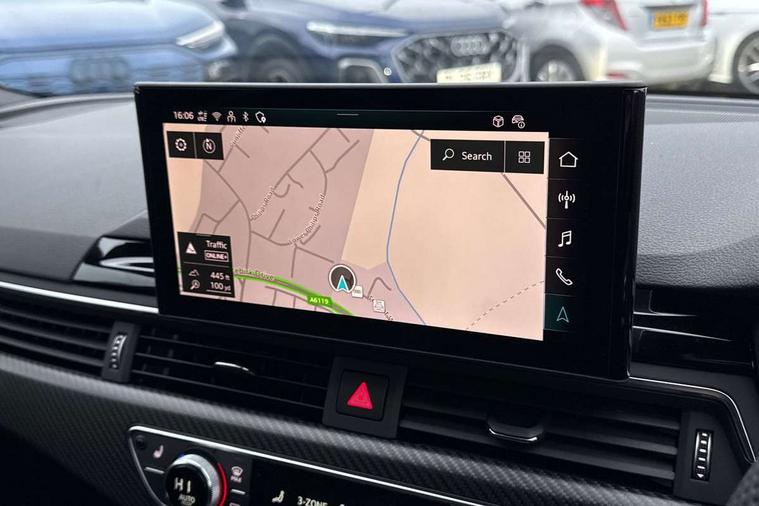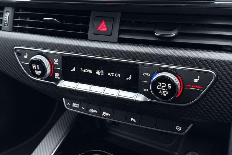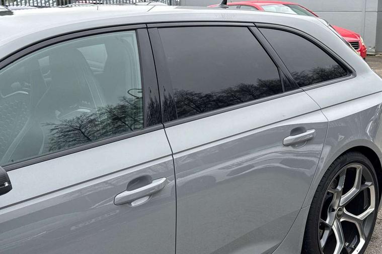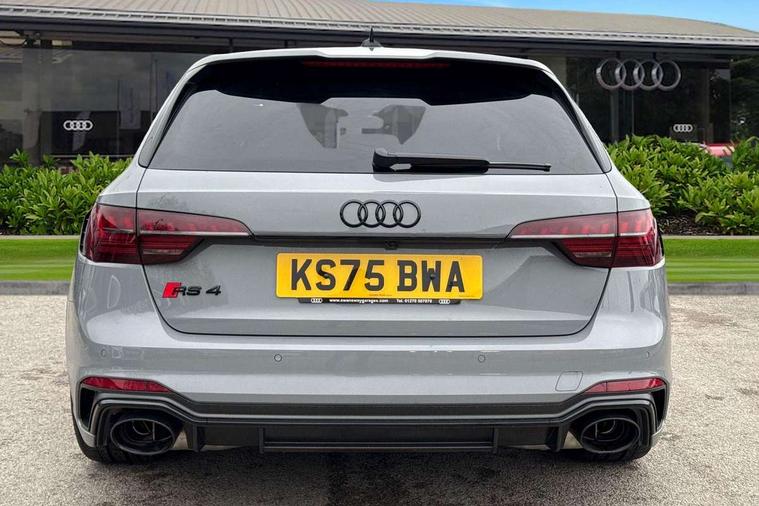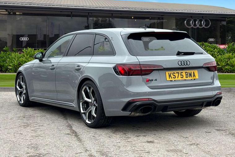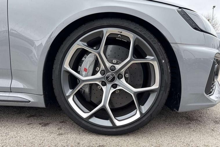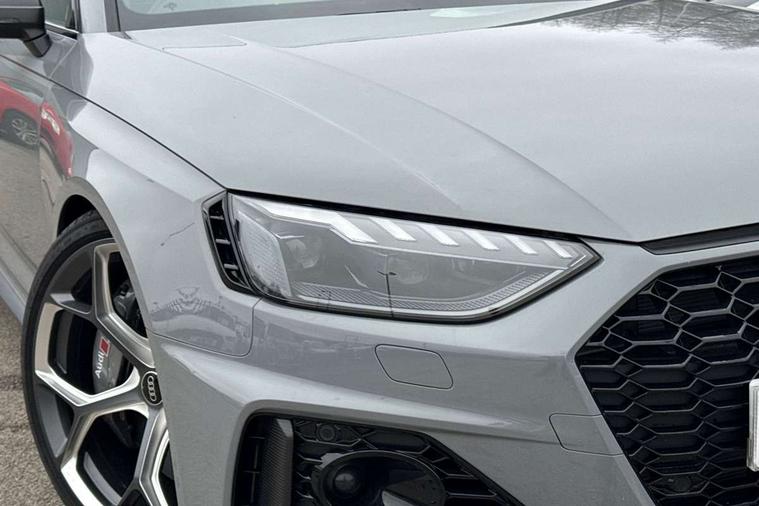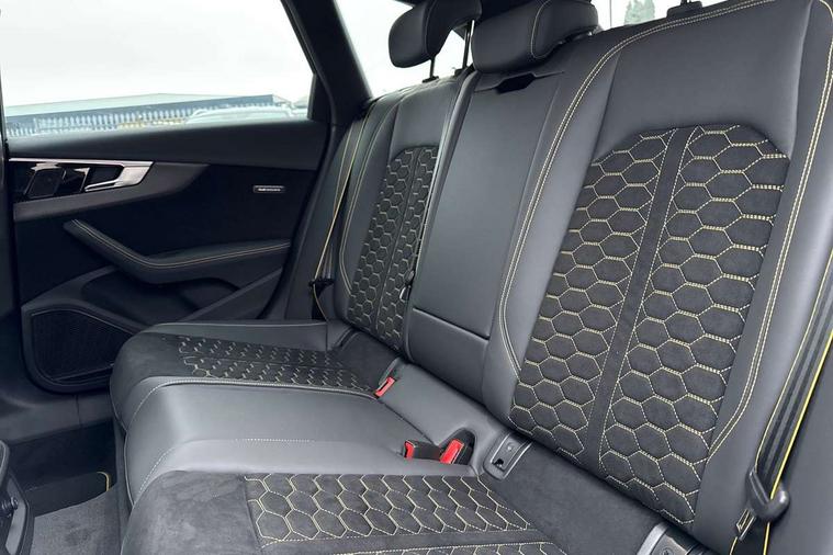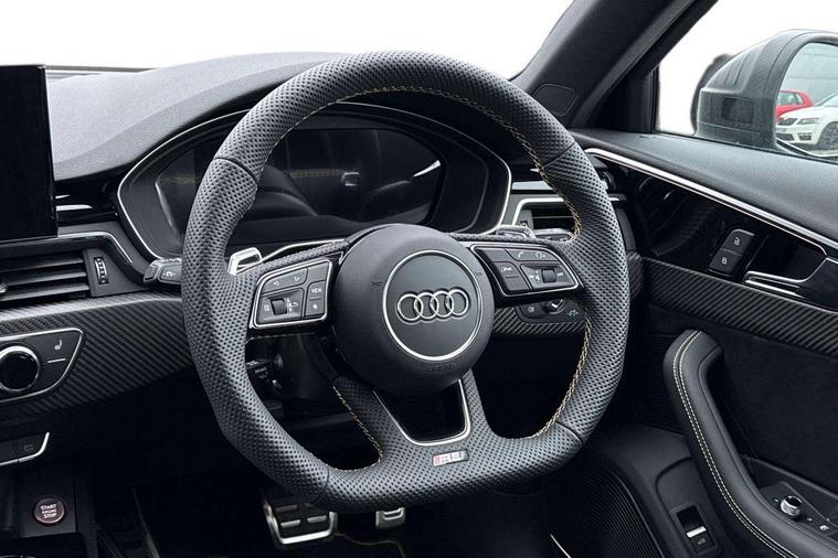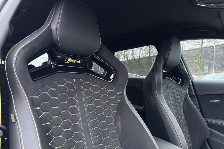 360 degree view camera, 7" Colour driver information system, Adaptive cruise control, Advanced key with electric hands free boot opening system, Audi connect safety and service (e-call), Audi parking system plus with front and rear sensors, Audi phone box light with wireless charging, Audi side assist, Audi smartphone interface, Audi virtual cockpit plus with additional RS layout and white dials, Automatic start-stop system with coasting functionality and efficiency programme, Bluetooth interface, Camera based traffic sign recognition, Email, calendar and text messages displayed via MMI, Lane departure warning, MMI Navigation plus with MMI touch includes 10.1" high resolution colour MMI display, 3D map, Power opening/closing tailgate, Progressive steering, RS Audi drive select, Service interval indicator, Voice control system, 58 Litre fuel tank, RS sport suspension pro - coilover suspension, Top speed restriction increase to 186mph, Updated centre (Torsen) differential with carbon friction discs and with rear torque bias, 2 USB charging ports, Bang + Olufsen 3D sound system, DAB digital radio module, Side part of centre console in alcantara with stitching in calendula yellow, Two additional USB ports for rear passenger in rear centre console, 3rd brake light, Audi Beam uses LEDs to project the RS 4 logo onto ground as you exit your vehicle, Audi Beam uses LEDs to project the RS logo onto ground as you exit your RS4, Audi matrix LED headlights with LED rear lights + dynamic front and rear indicators, Auto dimming rear view mirror, Automatic headlights + automatic windscreen wipers, Blue tinted glass, Body colour door handles, Electric front windows, Electric rear windows, Electrically folding auto dimming/adjustable/heated door mirrors with memory function, LED side indicators and kerb view function for passenger side, Exterior mirror housings in carbon matte, Flared front and rear wheel arches, Front bumper with enlarged air inlets, Headlight range control, High beam assistant, High gloss black triangular aperture at rear door, Honeycomb design grille with quattro logo, Lateral air inlets next to front headlights, LED daytime running lights, LED indicators in door mirrors, Panoramic glass sunroof, Privacy glass (tinted rear window and tinted rear door and side windows), Rain and light sensors, Rear side wing doors, Rear wiper, Roof spoiler, RS 4 badges on grille and rear, RS sport exhaust system plus with matte black tailpipes, RS4 dual branch chrome tailpipes with left and right oval pipes, Side sill extensions in body colour with high gloss black inserts, Towbar preparation, Windscreen with heat insulating and acoustic glazing, 3 seat bench in 2nd row, 3 spoke flat bottomed Sport contour leather multifunction plus steering wheel with calendula yellow stitching, 40/20/40 split folding rear seats with rear centre armrest, Black cloth headlining, Deluxe 3 zone electronic climate control, Dinamica leather upholstery with stitching in calendula yellow and honeycomb design + RS front bucket seats with RS 4 logo. Backrest cover in carbon, Door inserts in black Dinamica microfibre door armrests in black leather with stitching in calendula yellow, Electric load area cover, Front and rear floor mats in black (front floor mats with RS 4 logo, edging and stitching in calendula yellow), Front centre armrest in black leather with stitching in calendula yellow, Front headrests, Gear-lever knob in perforated leather gaiter in Dinamica microfibre with contrasting stitching in calendula yellow, Heated front seats, Heated steering wheel, Height and reach adjustable steering wheel with full size airbag, Illuminated door sill trims with RS4 logo, ISOFIX child seat mounting and top tether, Luggage compartment carpet, Manually adjustable front seats, Rear headrests, Retractable load area cover, Single front passenger seat, Stainless steel pedals, Sunvisors with vanity mirrors, Black styling plus pack - RS4, Carbon matte optics pack - RS4, Edition 25 years design pack - RS4, Extended LED Interior multi-coloured lighting pack - RS4, LED Interior light pack - RS4, Non Smokers pack, 3 point seatbelts on all rear seats, Adaptive driver and front passenger airbags, Attention and drowsiness assist, Audi pre sense basic and rear, Brake calipers painted in gloss anthracite grey, Electric child safety locks, Electromechanical parking brake, Electronic stabilisation control including ABS, ASR and EDL, Enhanced braking system, Front head airbags, Front seatbelt pretensioners + load limiters, Front side airbags, Hill hold assist, Multi-Collision braking, Pop-up bonnet for pedestrian protection, Pre sense city, Rear side airbags, RS ceramic brakes (high-performance brake system with carbon fibre reinforced ceramic brake discs at the front axle), Seatbelt monitoring, Traction control, Tyre pressure warning, Variable restraint system, Warning triangle and first aid kit, Anti theft alarm, Anti-theft wheel bolts, Immobiliser, Keyless Go, Remote central locking, Remote control key with RS emblem, Inlays in matt carbon twill, Tool kit, Tyre repair kit,