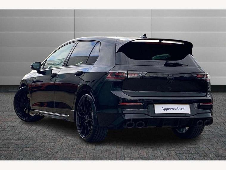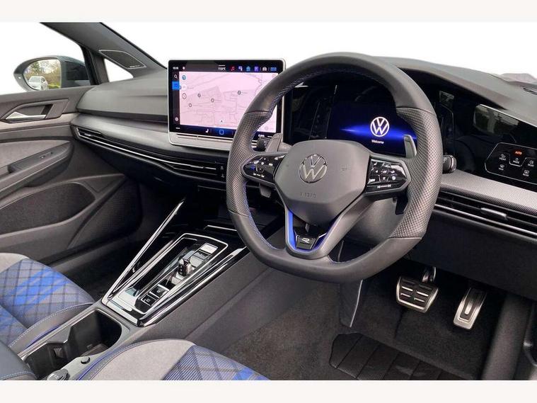 Activated carbon canister, Adaptive cruise control (ACC), Advanced driver attention and drowsiness monitor, Dynamic road sign display, E-Sim card for online connectivity, eCall emergency call system, Electronic maximum speed limit increased to 270 km/h, includes driving Modes 'drift' and 'special', larger roof spolier and GPS laptimer + G-Meter, Multi-color Digital cockpit pro, selection of different info profile possible, Multifunction front facing camera for distance control, Navigation system, Oncoming vehicle braking when turning including swerve support, Side assist blind spot lane change system, rear traffic alert and exit warning system, Speed limiter, Speedo, rev counter, electronic odometer, trip, service interval display, exterior temperature and fuel gauge, Traffic jam assist, Voice enhancer and voice control, Warning signal and warning light for front and rear seatbelts not fastened, We connect plus preparation, We connect preparation, Wireless app connect, All wheel drive - 4Motion, Petrol Particulate Filter, Start-stop system with battery regeneration (recuperation - energy recovery during braking), XDS electronic differential lock for improved traction and handling, 2 USB C ports in front, 2 USB charging sockets on the centre console in the rear charging capacity upto 45W, Digital radio reception (DAB), Diversity antenna for FM reception, Gaming platform via car app, Infotainment system with 12.9" display, Mobile phone interface with inductive charging feature, 3rd brake light, Auto dimming rear view mirror, Automatic headlamp activation with Coming home and Leaving home feature, Black badge on B-pillar, Black mirror caps, Black strips on radiator grille and headlights, Body colour door handles, Darkened headlights, Darkened R Logos and VW logos in front, rear and on fender, Exterior mirrors convex on the left and aspherical on the right, Front and rear electric windows, Front fog lamps and cornering light, Heat insulating windshield made of laminated glass, Illuminated lighting animation with wake up/goodbye scenario, LED matrix headlights with ambient light V2, advanced high beam, dynamic range contol with cornering, LED rear lamp with indicator, poor weather, LED separate daytime running light, R name plate, Rain sensor, Rear fog light on one side and reversing lights on both sides, Rear side wing doors, Rear tinted glass 65% light absorbing from B pillar backwards, Rear windscreen washer and wiper with interval delay, Remote electrically foldable door mirrors, puddle lights and reverse activated passenger's door mirror, Welcome light with surround lighting, 12V socket in front centre console, 12V socket in luggage compartment, 3 rear head restraints, 3 seat bench in 2nd row, 30 colour ambient lighting, illuminated center console storage compartment in front, Air care climatronic 3 Zone automatic climate control with rear air conditioning control panel, Aluminium gearshift handle, Brushed stainless steel pedals, Chrome plated radiator grille inserts, air vent surrounds and light switch surrounds, Entry lights, Front + rear black carpet mats, Front centre armrest, Integrated front head restraints, ISOFIX anchors for child seats on outer rear bench seats and on front passanger seat compatible for i-Size, Luggage compartment lighting, Rear cupholder and loadthough, Single front passenger seat, Soul black instrument panel, Soul black roof lining, Split folding backrest with centre armrest and unsplit rear seat bench, Sun visors with illuminated vanity mirrors, Driver assistance pack - Golf Estate/Hatchback Auto, R styling pack - Golf, Technology park and comfort pro package - Golf Hatchback, 3 point height adj front seatbelts + pretensioners, 3 rear three point seatbelts, ABS, Autonomous emergency braking front assist with pedestrian and cyclist monitoring, Child locks on rear doors, Driver and front passenger airbag with front passenger airbag deactivation, Electronic parking brake with auto hold, ESC (Electronic Stability Control), Extended pedestrian protection measures, Front and rear black brake calipers with darkened R-logo, Hill start assist, Rear disc brakes, Two tone horn, Tyre pressure loss indicator, Volkswagen roadside assistance, Anti theft wheel bolts, Preparation for alcohol interlock, 19" Estoril alloy wheels in black with progressive steering, Sporty vehicle dynamics, Tool kit for tyre mobility set, Tyre mobility kit Includes 12V compressor and tyre sealant, Wheel hub cover with darkened R-logo,