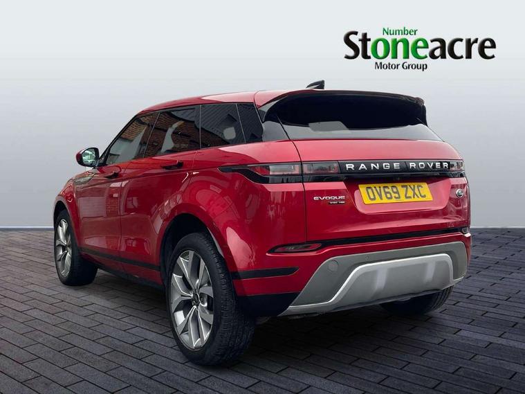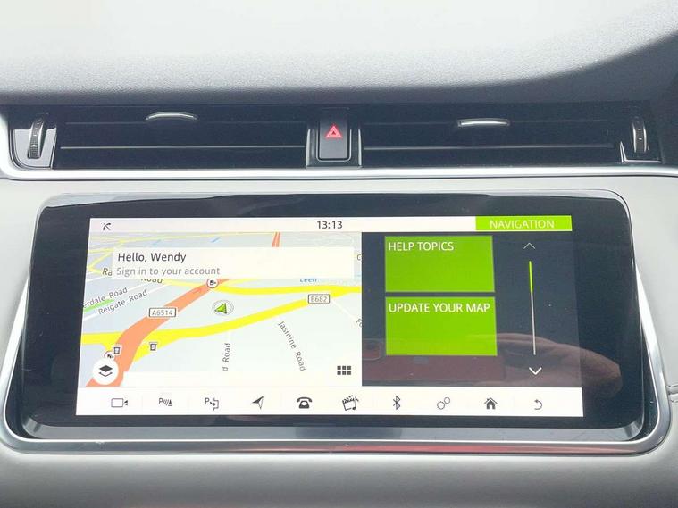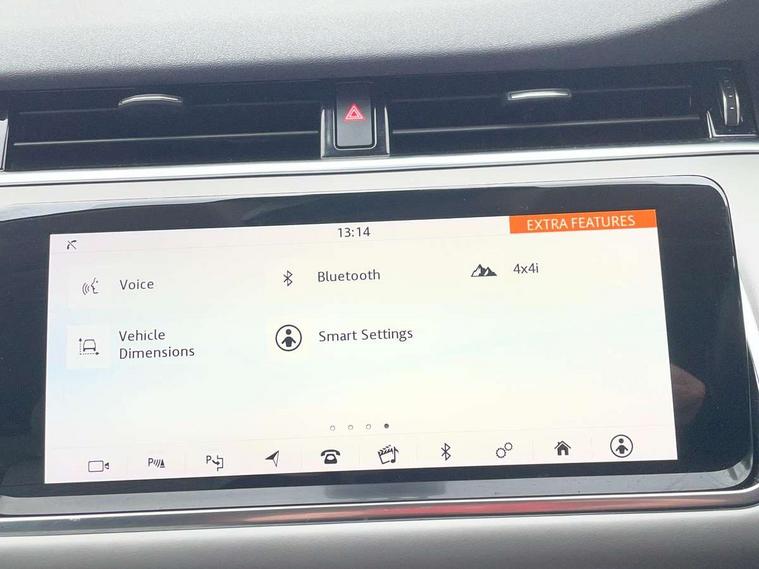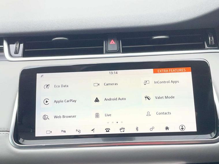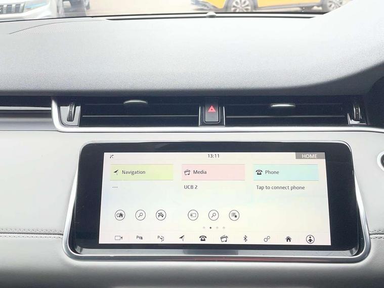 360 degree parking aid, Android Auto, Apple car play, Blind spot assist, Bluetooth connectivity, Brake pad wear indicator warning light, Clear exit monitor, Driver condition monitor, Duo touch pro, Electronic power assisted steering (EPAS), InControl remote, Interactive Driver display instrument cluster, Land Rover InControl apps, Lane keep assist, Navigation pro system, Park assist - Parallel, perpendicular and parking exit, Powered gesture tailgate/boot lid, Pro services and wifi hotspot, Push button starter, Rear traffic monitor, Smart settings, Traffic sign recognition with adaptive speed limiter, Voice control system, All terrain progress control, Efficient Driveline, Passive suspension, Terrain Response 2 Auto, Digital Audio Broadcast radio-DAB, Steering wheel mounted controls, Automatic headlight levelling, ClearSight interior rear view mirror, Electric windows with one touch open/close and anti trap, Evoque badge, Flush deployable exterior door handles, Heated rear window with timer, Heated washer jets, Heated windscreen, Power fold, auto-dimming, heated door mirrors with memory and approach lights, Rain sensing windscreen wipers, Rear fog lights, Tailgate spoiler, 40:20:40 split folding rear seats, Isofix system on outer rear seats, Overhead lighting console, Overhead stowage for sunglasses, Passive front head restraints, Rear air vents, Rear centre headrest, Sunvisors with illuminated vanity mirrors, Twin front cupholders with cover, Twin sliding front centre armrest, 3 rear 3 point seatbelts, Anti-lock braking system (ABS), Customer configurable autolock, DSC - Dynamic Stability Control, Electronic brake force distribution, Electronic parking brake, Electronic traction control, Front and rear seatbelt reminder, High speed emergency braking, Hill descent control, Hill launch assist, Low traction launch, Power operated child locks, Roll stability control, Six airbags - Driver and passenger airbags/driver knee airbag/front side airbag and curtain airbags, Torque vectoring brake, Tyre pressure monitoring system, Alarm, Immobiliser, Intrusion sensor, Keyless entry, Locking wheel nuts,