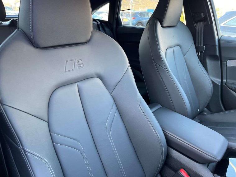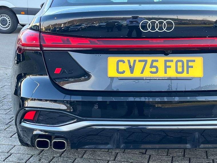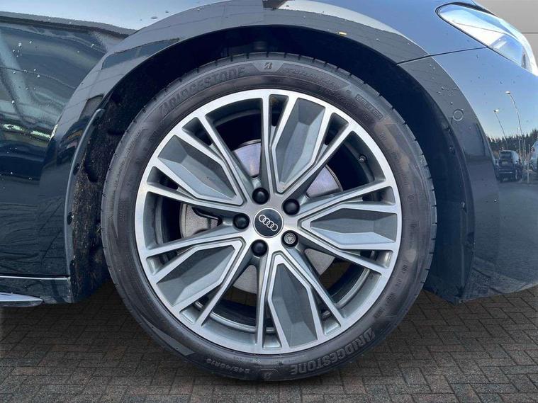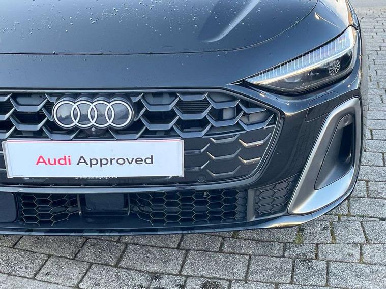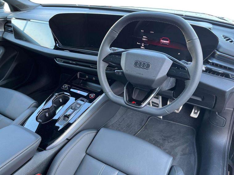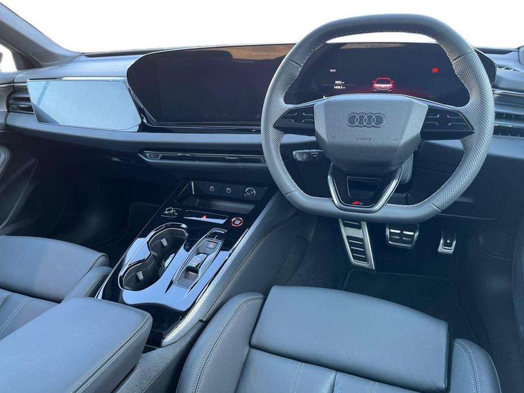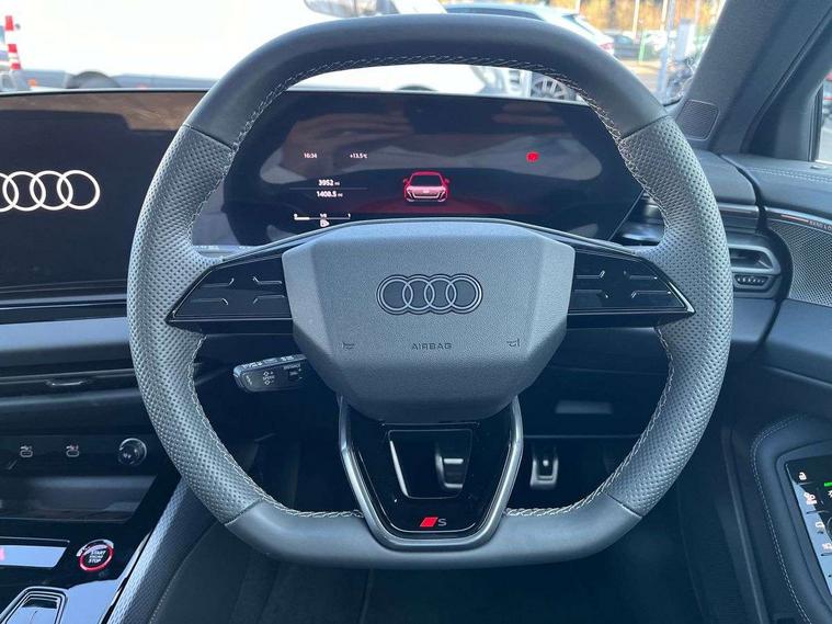 Adaptive cruise assist plus with steering intervention, Advanced driver attention and fatigue montior, Audi application store, Audi assistant, Audi connect emergency call and service, Audi drive select, Audi smartphone interface, Audi virtual cockpit plus with 11.9" OLED colour display, Automatic start/stop system with coasting functionality, Camera based traffic sign recognition, Garage door opener, Head up Display, Intersection assist, Lane change assistant with exit warning system, rear cross traffic alert and rear turn assist, Lane departure warning with emergency assist, MMI 10.9" front passenger touch display, MMI navigation plus with high resolution 14.5" OLED touchscreen colour display, Park assist plus, Parking system plus with 360 display, Progressive steering with servotronic, Swerve assist and turn assist, Top view camera, Traffic sign based speed limiter, Sports suspension with damper control lowered by 20mm, 2 USB-C ports in both the front and rear, Bang and Olufsen premium sound system with 3D sound, DAB digital radio reception, Smartphone compartment with wireless charging, Acoustic glass for front door windows, Aluminium window trims, Auto dimming rear view mirror, Body colour door mirrors, Clear glass, Digital OLED tail lights including communication light, Door mirrors - electrically adjustable, heated, folding and auto dimming on both sides, Front and rear electric windows, Front door sill trims with aluminium inlays, illuminated with 'S' logo, Headlight cleaning system, High beam assist, LED daytime running lights, LED third brake light, Manual sunshade for the rear door windows, Matrix LED headlights with eight light signatures selectable via the MMI or the myAudi app, Panoramic glass roof with switchable transparency, Privacy glass, Rear and side windows with heat insulating glass, Rear boot, Rear side wing doors, S Line badges on the front wings, S line bumpers, radiator grille and diffuser in phantom black and diffuser insert in matt anthracite, White rhombus logo projection light in exterior mirrors, Windscreen with acoustic glazing, 3 rear headrests, 3 seat rear bench, 3 spoke leather steering wheel with multi-function buttons with touch control, flattened on top and bottom, with S badging and contrast stitching, 3-zone automatic climate control, 4 way electric lumbar support for driver and front passenger, 40:20:40 split folding rear seat bench with centre armrest and cup holders, Comfort front centre armrest, Dynamic interaction light (coloured), Electric steering wheel adjustment, Electrically adjustable front seats, Front and rear floor mats, Front sport seats with integrated headrest and S embossed logo, Headlining in black cloth, Heated front and outer rear seats, Heated steering wheel, i-Size child seat mounting on the front passenger side and outer rear seats, i-Size and top tether on the outer rear seats, Increased charging capacity for USB ports 2X100 Watts in rear, 2X60 Watts in front, Luggage compartment lid, electrically opening and closing, Single front passenger seat, Stainless steel pedals and footrest, Steering wheel grips in perforated leather and shift paddles, Twin leather upholstery, Ambient lighting package plus - A5, 3x3 point rear seat belts, Acoustic vehicle alerting system, Convenience key with safelock, Driver airbag, Electric child safety locks, First aid kit with warning triangle and vests, Front emergency brake assist, Front passenger airbag, Front passenger airbag deactivation, Hill hold assist, Occupant detection in rear seat area, Proactive passenger protection system for front, sides and rear, Seat belt monitoring with rear seat occupant reminder, Side airbags in front and rear with head airbag system and front interaction airbag, Tyre pressure loss indicator, Anti theft alarm, Anti-theft wheel bolts, Keyless Go, Accents in the interior in vanadium look, Black dashboard with contrast stitching, Inlays in matt brushed aluminium with linear embossing, anthracite, Softwrap in leatherette with contrast stitching, Upper and lower interior elements in leatherette, 19" 5 twin V spoke design alloy wheels in graphite grey, Tyre repair kit,