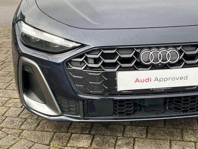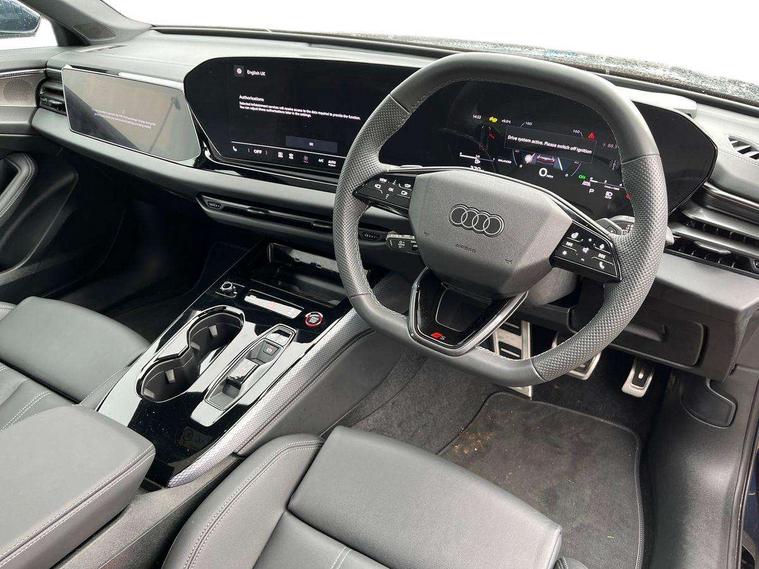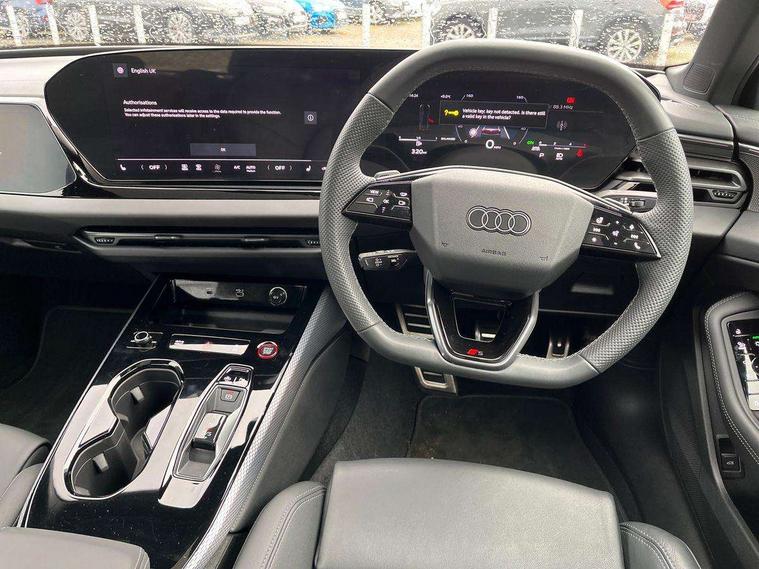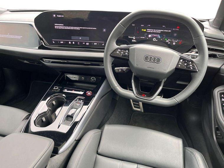 Adaptive cruise assist plus with steering intervention, Advanced driver attention and fatigue montior, Audi application store, Audi assistant, Audi connect emergency call and service, Audi drive select, Audi smartphone interface, Audi virtual cockpit plus with 11.9" OLED colour display, Automatic start/stop system with coasting functionality, Camera based traffic sign recognition, Garage door opener, Head up Display, Intersection assist, Lane change assistant with exit warning system, rear cross traffic alert and rear turn assist, Lane departure warning with emergency assist, MMI 10.9" front passenger touch display, MMI navigation plus with high resolution 14.5" OLED touchscreen colour display, Park assist plus, Parking system plus with 360 display, Progressive steering with servotronic, Swerve assist and turn assist, Top view camera, Traffic sign based speed limiter, Sports suspension with damper control lowered by 20mm, 2 USB-C ports in both the front and rear, Bang and Olufsen premium sound system with 3D sound, DAB digital radio reception, Smartphone compartment with wireless charging, Acoustic glass for front door windows, Aluminium window trims, Auto dimming rear view mirror, Body colour door mirrors, Clear glass, Digital OLED tail lights including communication light, Door mirrors - electrically adjustable, heated, folding and auto dimming on both sides, Front and rear electric windows, Front door sill trims with aluminium inlays, illuminated with 'S' logo, Headlight cleaning system, High beam assist, LED daytime running lights, LED third brake light, Manual sunshade for the rear door windows, Matrix LED headlights with eight light signatures selectable via the MMI or the myAudi app, Panoramic glass roof with switchable transparency, Privacy glass, Rear and side windows with heat insulating glass, Rear boot, Rear side wing doors, S Line badges on the front wings, S line bumpers, radiator grille and diffuser in phantom black and diffuser insert in matt anthracite, White rhombus logo projection light in exterior mirrors, Windscreen with acoustic glazing, 3 rear headrests, 3 seat rear bench, 3 spoke leather steering wheel with multi-function buttons with touch control, flattened on top and bottom, with S badging and contrast stitching, 3-zone automatic climate control, 4 way electric lumbar support for driver and front passenger, 40:20:40 split folding rear seat bench with centre armrest and cup holders, Comfort front centre armrest, Dynamic interaction light (coloured), Electric steering wheel adjustment, Electrically adjustable front seats, Front and rear floor mats, Front sport seats with integrated headrest and S embossed logo, Headlining in black cloth, Heated front and outer rear seats, Heated steering wheel, i-Size child seat mounting on the front passenger side and outer rear seats, i-Size and top tether on the outer rear seats, Increased charging capacity for USB ports 2X100 Watts in rear, 2X60 Watts in front, Luggage compartment lid, electrically opening and closing, Single front passenger seat, Stainless steel pedals and footrest, Steering wheel grips in perforated leather and shift paddles, Twin leather upholstery, Ambient lighting package plus - A5, 3x3 point rear seat belts, Acoustic vehicle alerting system, Convenience key with safelock, Driver airbag, Electric child safety locks, First aid kit with warning triangle and vests, Front emergency brake assist, Front passenger airbag, Front passenger airbag deactivation, Hill hold assist, Occupant detection in rear seat area, Proactive passenger protection system for front, sides and rear, Seat belt monitoring with rear seat occupant reminder, Side airbags in front and rear with head airbag system and front interaction airbag, Tyre pressure loss indicator, Anti theft alarm, Anti-theft wheel bolts, Keyless Go, Accents in the interior in vanadium look, Black dashboard with contrast stitching, Inlays in matt brushed aluminium with linear embossing, anthracite, Softwrap in leatherette with contrast stitching, Upper and lower interior elements in leatherette, 19" 5 twin V spoke design alloy wheels in graphite grey, Tyre repair kit,