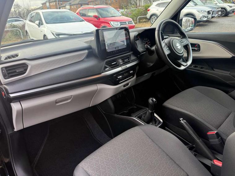 Adaptive cruise control, Automatic start/stop system, Blind spot monitoring, Colour LCD information display, Digital clock, Driver monitoring system, eCall, Fuel consumption display (average/instantaneous) and range display, Intelligent speed control support, Lane departure prevention, Lane departure warning system, Lane keeping assist (LKA), Low fuel level warning light, Navigation system, Outside temperature display, PAS, Rear cross traffic alert, Rear parking camera, Rear parking sensors, Remote fuel cap release, Smartphone integration with Apple CarPlay and Android auto, Suzuki connect, Tailgate, Traffic sign recognition, Weaving alert, 4 speakers + 2 tweeters, 9-inch infotainment display, Auxiliary input socket, Bluetooth audio streaming, DAB Digital radio, Steering wheel audio controls, USB Type A and C, 'Guide me home' headlamps, 1 speed with intermittent rear wiper + washer, 2 speeds front wiper with intermittent + washer, Automatic headlights, Black coloured A & B pillars, Black Upper and lower front grille, Body colour door mirrors and handles, C pillar trim moulding, Door mirrors with built-in turn signal lamp, Electric door mirrors, Electric folding door mirrors, Electric front windows, Electric rear windows, Green tinted glass, Heated door mirrors, High beam assist, LED daytime running lights, LED High mounted stop light, LED number plate light, LED position lamps, LED projector headlamps, LED rear combination lamp, Manual headlamp level control, Rain sensor, Rear fog lights, Rear privacy glass, Rear side wing doors, Rear spoiler, Side spoiler, 1 cup holder in rear, 12V Accessory socket in front console, 2 cup holders in front, 2 Isofix seat anchors, 3 bench rear seats in 2nd row, 3 rear head restraints, 3 spoke leather covered steering wheel, 60/40 split rear seats, Accessory socket, Automatic air conditioning, Centre console storage, Centre lower box, Child seat tether anchorages x 2, Chrome handbrake release button, Chrome interior door handles, Cloth upholstery, Door pockets with bottle holder, Driver/passenger sunvisors with ticket holders + vanity mirrors, Front cabin lights, Front headrests, Front map light, Front passenger side assist grip, Glovebox, Heated front seats, Heater, Height adjustable driver's seat, Luggage area lamp, Painted interior door trim ornament, Parcel shelf, Passenger seat back pocket, Pollen filter, Rear assist grips x2, Rear heater duct, Single front passenger seat, Tilt adjustable steering wheel, Tilt/telescopic adjustable steering wheel, 3 point ELR seatbelts for centre seat, 3 point ELR seatbelts front and rear, ABS+EBD+Brake assist, Curtain airbags, Driver airbag, Dual sensor brake support, ESP + traction control, Front and rear seatbelt reminder, Front passenger airbag, Front passenger airbag deactivation, Front seat seatbelts shoulder height adjuster, Front seatbelt pretensioners with force limiters, Hill hold control, Rear child proof door locks, Rear seatbelts with pre-tensioners and load limiters, Side airbags with incorporated into front seats, Tyre pressure indicator, Deadlocks, Freewheeling key cylinders, Immobiliser, Keyless entry and start, Light - on and Key in reminder, Locking wheel nuts, Remote central locking, Painted instrument panel ornament, 16" Polished alloy wheels, Emergency flat tyre repair kit,