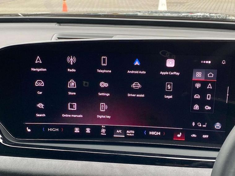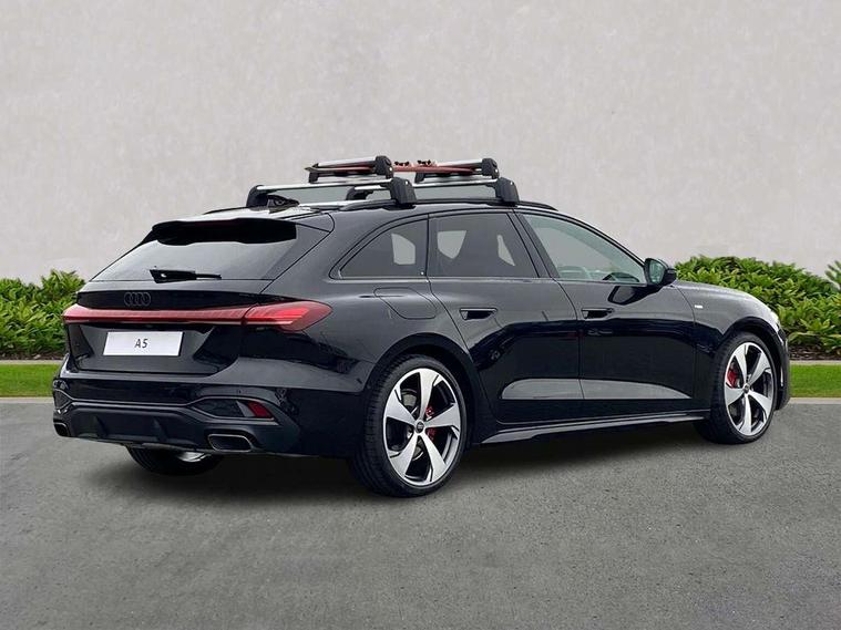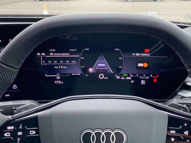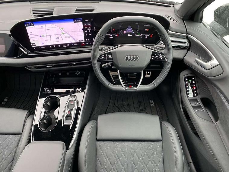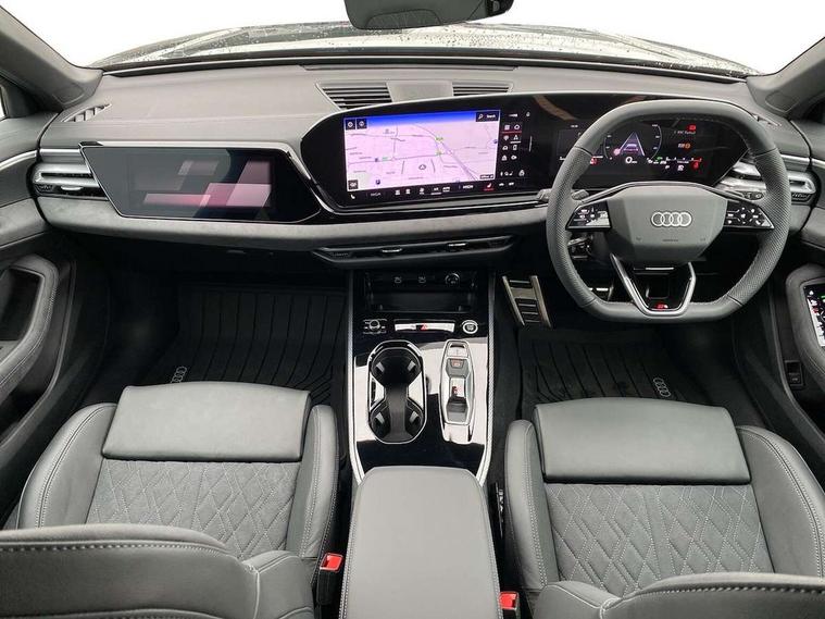 Adaptive cruise control, Advanced driver attention and fatigue montior, Audi application store, Audi assistant, Audi connect emergency call and service, Audi drive select, Audi virtual cockpit plus with 11.9" OLED colour display, Automatic start/stop system with coasting functionality, Camera based traffic sign recognition, Intersection assist, Lane change assistant with exit warning system, rear cross traffic alert and rear turn assist, Lane departure warning with emergency assist, MMI 10.9" front passenger touch display, MMI navigation plus with high resolution 14.5" OLED touchscreen colour display, Park assist plus, Parking system plus with 360 display, Progressive steering with servotronic, Smartphone interface, Swerve assist and turn assist, Top view camera, Traffic sign based speed limiter, Sports suspension lowered by 20mm, 2 USB-C ports in both the front and rear, Audi sound system impressive sound with 8 loudspeakers including centre speaker and subwoofer, 6-channel amplifier with a total output of 180 watts, DAB digital radio reception, Smartphone compartment with wireless charging, Aluminium window trims, Auto dimming rear view mirror, Black door handles, Black roof rails, Dark chrome-plated tailpipe trims, Door mirrors - electrically adjustable, heated, folding and auto dimming on both sides, Front and rear electric windows, Front door sill trims with aluminium inlays, illuminated with 'S' logo, Headlight cleaning system, High beam assist, LED daytime running lights, LED rear lights pro incl. dynamic rear indicators and illuminated light strip with animated coming and leaving home function, LED third brake light, Matrix LED headlights with eight light signatures selectable via the MMI or the myAudi app, Privacy glass, Rear and side windows with heat insulating glass, Rear side wing doors, Rear wash/wipe, S Line badges on the front wings, S line bumpers, radiator grille and diffuser in phantom black and diffuser insert in matt anthracite, White rhombus logo projection light in exterior mirrors, Windscreen with acoustic glazing, 3 rear headrests, 3 seat rear bench, 3 spoke leather steering wheel with multi-function buttons with touch control, flattened on top and bottom, with S badging and contrast stitching, 3-zone automatic climate control, 40:20:40 split folding rear seat bench with centre armrest and cup holders, Comfort front centre armrest, Electrically adjustable front seats, Front and rear floor mats, Front sport seats with integrated headrest and S embossed logo, Headlining in black cloth, Heated front seats, i-Size child seat mounting on the front passenger side and outer rear seats, i-Size and top tether on the outer rear seats, Luggage compartment lid, electrically opening and closing, Manual steering column height and depth adjustment, Memory function for driver seat, Single front passenger seat, Stainless steel pedals and footrest, Steering wheel grips in perforated leather and shift paddles, Ambient lighting package plus - A5, Black styling package plus - A5, 3x3 point rear seat belts, Acoustic vehicle alerting system, Convenience key with safelock, Driver airbag, Electric child safety locks, First aid kit with warning triangle and vests, Front emergency brake assist, Front passenger airbag, Front passenger airbag deactivation, Hill hold assist, Occupant detection in rear seat area, Proactive passenger protection system for front, sides and rear, Red brake calipers, Seat belt monitoring with rear seat occupant reminder, Side airbags in front and rear with head airbag system and front interaction airbag, Tyre pressure loss indicator, Anti theft alarm, Anti-theft wheel bolts, Keyless Go, Accent surfaces and control buttons in gloss black, Black dashboard with contrast stitching, Softwrap in Dinamica with contrast stitching, Upper and lower interior elements in dinamica microfiber, 20" 5 arm fold design Audi sport alloy wheels in silk matt grey and gloss turned finish, Tyre repair kit,