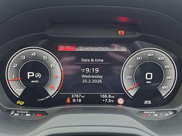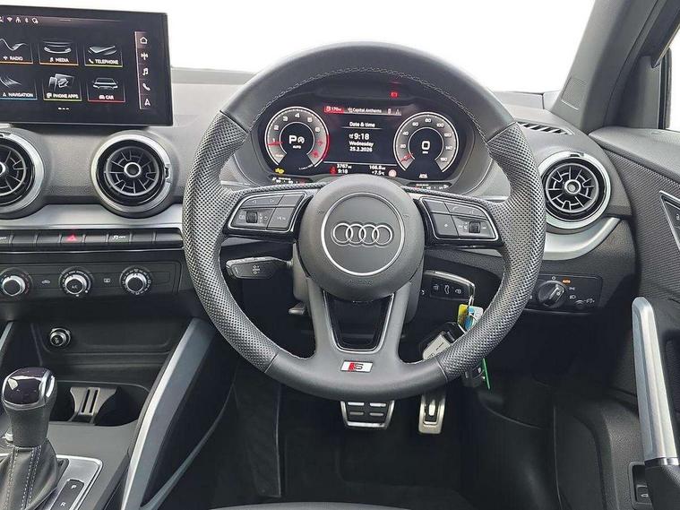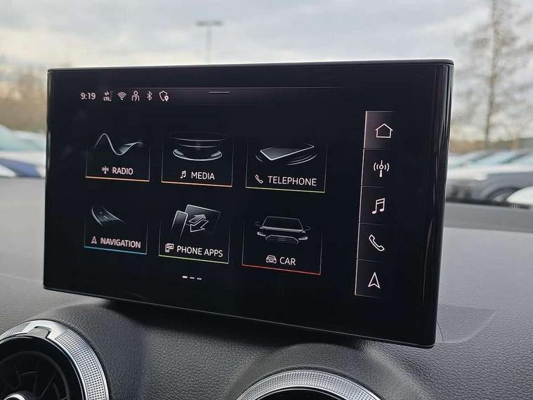 3D map display, Audi connect navigation and infotainment includes innovative services, Audi connect remote and control connects your vehicle to your smartphone, Audi drive select: S tronic - power steering assistance + engine + gearshift (modes: comfort, auto, dynamic, efficiency, individual), Audi smartphone interface - Apple carplay/Android Auto, USB connect, 2xSDXC card readers, voice control for navi, telephone, music and 3rd party apps, Audi virtual cockpit, Automatic start/stop system with recuperation, Bluetooth interface includes bluetooth audio streaming, Camera based traffic sign recognition, Cruise control, Distraction and Fatigue warning, E-call, Jukebox hard drive memory for music (10GB), Lane departure warning, MMI navigation plus with 8.8" touchscreen, Natural voice recognition, Power operated tailgate, Progressive steering, Rear parking sensors, Sport suspension, 6 passive loudspeakers, DAB Digital radio, USB type C port, Auto dimming rear view mirror, Black window trims, Body colour door mirrors, Electrically adjustable, folding, auto dimming and heated door mirrors with integrated LED side indicators, Front windscreen with grey tinted sunband, LED daytime running lights, LED headlights with dipped beam, high beam, position lights, indicators, LED rear lights, LED third brake light, Privacy glass - dark tinted rear and rear side windows from B-pillar backwards, Rear side wing doors, Rear wiper, S Line badges on the front wings, S Line body styling - front and rear bumpers, side skirts, radiator grille, rear diffuser insert and front air intakes, Variable front intermittent wipers, Wheel arch trims in manhattan grey, 12v socket in front, 3 seat bench in 2nd row, 3 spoke multi-function leather steering wheel with S badging, 4-way electric lumbar support for front seats including manual seat height adjustment for both front seats, 60/40 split folding rear seat bench, Black carpets, Black cloth headlining, Front and rear head restraints, Front centre armrest, Front sport seats, Front/rear floor mats, Height/reach adjust steering wheel, Illuminated door sill trims with S logo, ISOFIX child seat mounting in front passenger and rear outer seats, Manual air conditioning, Single front passenger seat, Stainless steel pedals, 3x3 point rear seatbelts, 6 airbags - Front, curtain and front side airbags, Electromechanical parking brake, Electronic stabilisation control including ABS, ASR and EDL, Front passenger airbag deactivation, Hill hold assist, Pre-sense front with pedestrian recognition, Seatbelt monitoring, Tyre pressure warning light with visual and acoustic warning, Warning triangle and first aid kit, Anti theft alarm, Anti theft wheel bolts, Electronically operated child locks, Remote central door locking, Aluminium interior element, Black dashboard, Gloss black centre console, Matt brushed aluminium trim inlays, Tool kit,