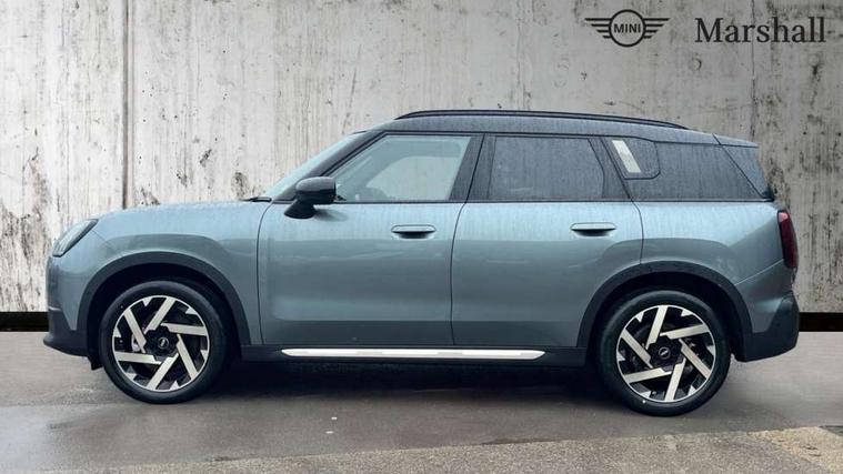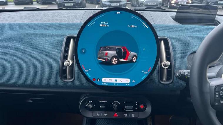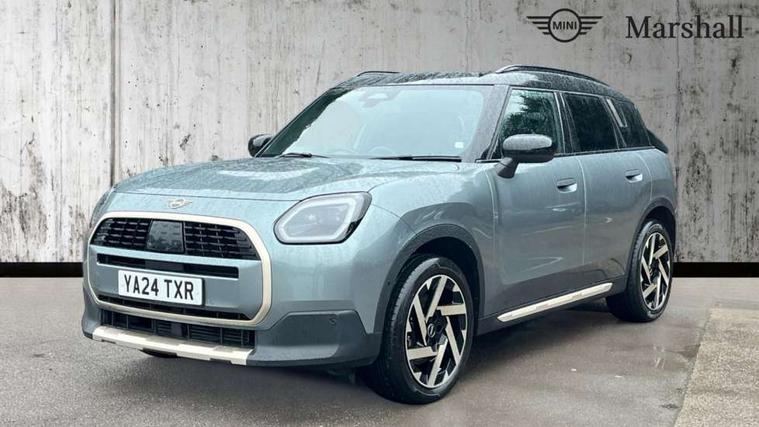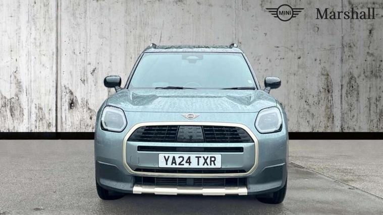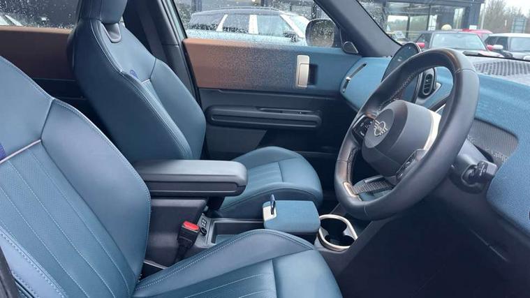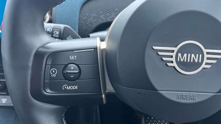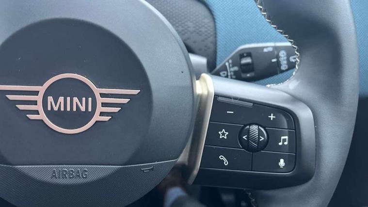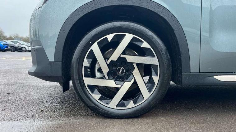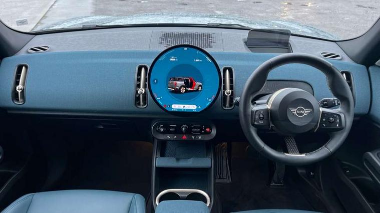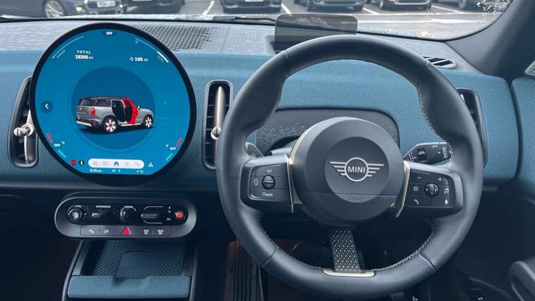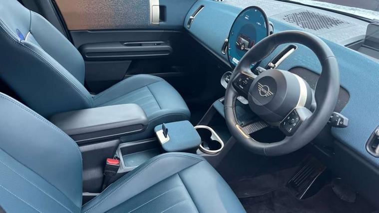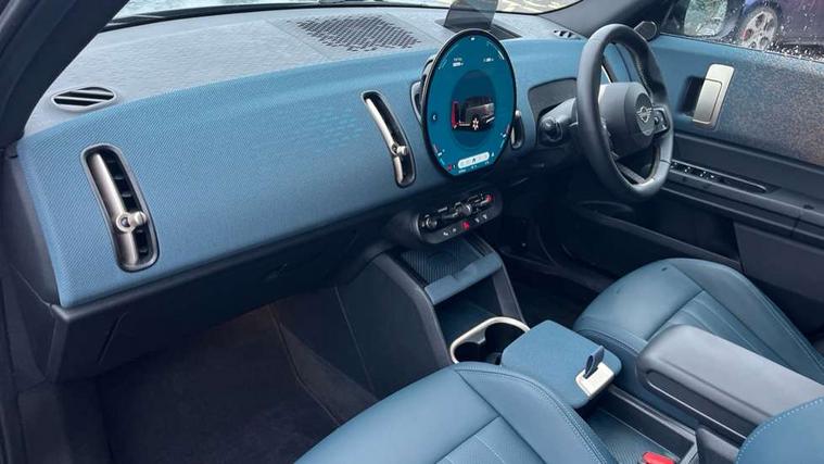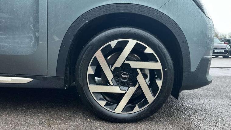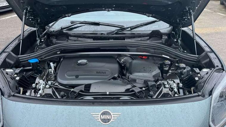 Bluetooth connection, Circular OLED Screen, Compatible mobile phone bluetooth with audio streaming, Cruise Control (DCC), Digital dashboard display, E-call, Electro-mechanical speed dependant steering assistance, MINI Experience Modes, Mini navigation system, MINI TeleServices, Parking assistant in camera and ultrasound based assistance system, rear view camera, parking aid and distance control, Auto transmission with Paddles, 6 speakers, DAB Digital radio, Personal eSim, Auto tailgate, Electric adjustable heated door mirrors, Front and rear electric windows, Heated rear window, LED daytime running lights, LED Headlights, LED rear lights, LED third brake light, Logos in Vibrant Silver, Rain sensor with auto headlights, Rear side wing doors, Rear window wiper, Roof rails, Vibrant silver grille surround, 3 seat bench in 2nd row, 60/40 split rear bench seat, Anthracite headliner, Auto air conditioning, Floor mats, Front armrest, Front headrests, Front sport seats, Heated steering wheel, Height and length steering column adjustment, Lidded storage box in Petrol knit, Rear headrests, Single front passenger seat, Sport Vescin Steering Wheel, Sunvisors with vanity mirrors, Vescin synthetic leather upholstery, Vibrant Silver sill inlay, 3x3 point rear seat belts, 6 Airbags - front, side, head and seat belt tensioners, ABS, DSC - Dynamic Stability Control, Electronic handbrake, Electronic Stability Programme (ESP), Front ISOFIX (iSize), Hill hold assist, Hill start assist, Manual rear child locks, Traction control, Tyre pressure monitoring system, Warning triangle, Alarm system with tilt sensor, monitoring doors, bonnet interior and tailgate, Auto drive away locking, Deadlocking function, Electronic vehicle immobiliser, Locking wheel bolts, Remote control locking, Start/stop toggle with keyless go, Petrol/Brown dashboard knit, MINI Mobility Kit,