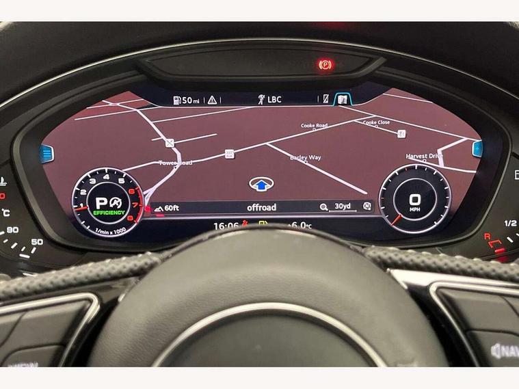 7" Colour driver information system, Audi connect, Audi drive select, Audi parking system plus with front and rear sensors, Audi smartphone interface, Automatic start-stop system with coasting functionality and efficiency programme, Bluetooth interface, Electro-mechanical power steering, MMI Navigation, Power tailgate, Service interval indicator, Voice control system, 2 x USB charging port with aux input socket, CD player, DAB Digital radio, Two SDXC card slots, Air inlet in matt aluminium with horizontal inlay, Aluminium roof frame and window trim, Auto dimming rear view mirror, Black grained rear grille, Body colour bumpers, Body coloured door mirrors, Chrome plated exhaust pipe, Electric adjustable heated door mirrors, Electric front windows, Front fog lights, High beam assistant, High gloss black B pillar trims and triangular rear door trim, Honeycomb side air inlet in titan black, Rain and light sensors, Rear diffuser in Twilight grey matt with honeycomb grille, S line badges on front wings, S Line body styling, S Line front and rear bumpers, S Line side skirts in black, S line sill plates, Twilight grey matt radiator grille in matt aluminium inlay, Windscreen with acoustic glazing, 40/20/40 split folding 3 seater rear bench seat, Adjustable steering column, Black headlining, Black perforated leather gearknob, Centre console with cupholders, Contrast stitching on seats, steering wheel and gear lever gaiter, Deluxe 3 zone electronic climate control, Front centre armrest, Front head restraints, Front/rear floor mats, Gearshift paddles, Illuminated door sill trim with S logo, ISOFIX child seat mounting and top tether, Jack and tool kit, Luggage compartment mat, Rear headrests, S embossed logo on front sport seats, Stainless steel pedals and foot rest, Non Smokers pack, 3x3 point rear seatbelts, 6 airbags - Driver, front passenger, curtain and side airbags, Electromechanical parking brake, Electronic Stabilisation Control (ESC) including ABS, ASR and EDL, Front passenger airbag deactivation, Height adjustable front seatbelts, Hill hold function, Multi-Collision braking, Pop-up bonnet for pedestrian protection, Pre sense city, Seatbelt monitoring, Tyre pressure warning, Variable restraint system, Warning triangle and first aid kit, Anti theft alarm system, Anti theft wheel bolts, Immobiliser, Keyless Go, Remote central locking, Tyre repair kit,