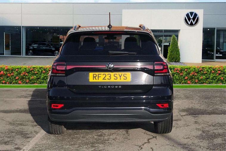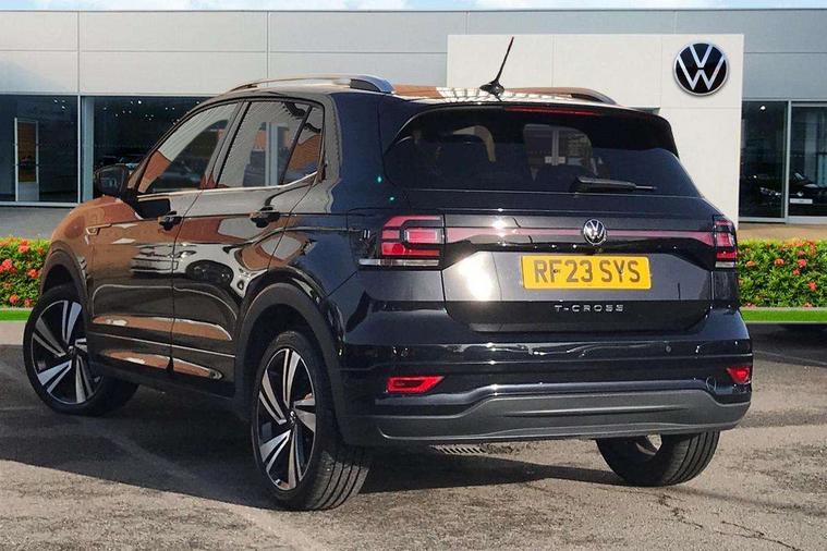 'Lights On' Reminder warning buzzer, 2D/3D map view, Active info display - 10.25" High resolution TFT dash display screen, Adaptive cruise control including front assist, forward collision warning, autonomous emergency braking, speed limiter, Blind spot monitoring, Bluetooth telephone and audio connection for compatible devices, Car information display, Driver alert system, eCall emergency call system, Lane assist, Low washer fluid warning light, Multifunction computer with visual gear change recommendation for fuel consumption, Operating permit alteration, Power assisted speed sensitive steering, Speed limit display, Speedo, rev counter, electronic odometer, trip, service interval display, exterior temperature and fuel gauge, Stop/start system, Tailgate, Warning sound and light for doors and tailgate open, Warning sound and light for front seatbelts unfastened, We connect plus preparation, Wireless Car net app connect with Apple CarPlay, combined functionality of Apple CarPlay/Android Auto and MirrorLink, Battery regeneration during braking, Misfuel prevention device, 2x USB connection with USB charging sockets and in rear centre console, DAB Digital radio receiver, Diversity antenna for FM reception, Multi device interface (MDI) with USB connection, Music playback - MP3, WMA and AAC files, Premium USB cable for Apple or Android smartphone compatibility, Simultaneous pairing of 2 compatible mobile devices, SMS Functionality, Three route options - Fast, Short, Eco, Title and cover art display, Automatic hazard lights activation under emergency braking, Body colour door handles, Body colour door mirrors with integrated indicators, Body colour rear roof spoiler, Body coloured bumpers, Dusk sensor + automatic driving lights, Electrically foldable, adjustable and heated door mirrors with reverse activated kerb view adjustment on passenger's side, Front and rear electric windows, Front fog lights with static cornering function, Galvanised body, Heated rear window, LED third brake light, Lower door sills and door pillars in black, Radiator grille with chrome trim and chrome bezel front fog lamp, Rear fog light on one side, reversing light on both sides, Rear lights incorporating LED technology, Rear side wing doors, Rear tinted glass 65% approx light absorbing from B pillar backwards, Rear window aerial, Rear windscreen washer and wiper with interval delay, Reflectors in all doors, Silver roof rails, Stainless steel door sill protection, Tailgate with integrated roof spoiler, Unique R Line badging, Windscreen wipers/ intermittent wipe + 4 position delay, 12V Accessory socket in centre console, 2 Front and rear reading lights incorporating LED technology, 2 Zone electronic climate control with automatic air recirculation, 3 rear head restraints and 3 rear three point seat belts with ECE label, 3 seat bench in 2nd row, 60/40 split folding rear seat backrest, Ambient lighting and sourround lighting, Black headlining, Branded points of interest, Brushed stainless steel pedals, Carbon flag cloth upholstery, Drawer under drivers seat, Driver and front passenger sunvisor with vanity mirror, Driver's sunvisor with ticket holder, Dust and pollen filter, Front and rear carpet mats with contrast stitching, Front centre armrest with storage compartment, Front footwell illumination, Front seat back storage pockets, Front seat R Line logo with rear seat backrest, Front sports seat with height and lumbar adjustment, Glovebox, Heating and fresh air system with 4 stage blower, Height/reach adjust steering wheel, Instrument lighting white adjustable panel illumination, Interior light with delay, Isofix child seat preparation for 2 rear child seats, Leather trimmed three spoke multifunction steering wheel with contrast stitching and aluminium inserts with R Line logo, Luggage compartment cover, Luggage compartment lighting, Moveable and foldable Rear bench seat, Scuff plates in door apertures, Steering wheel paddle shift, Storage compartment in drivers and front passengers door, R Line styling pack - T-cross, 3-point seat belts in front with electric tensioner + height adjustment, Anti-lock Braking System (ABS) with Hydraulic Brake Assist (HBA), Automatic post collision braking system, Driver and front passenger safety-optimised head restraints, Drivers and Front Passengers airbags with front passengers airbag deactivation switch, ESC with EDL, ASR, EDTC and trailer stabilisation function, Front and rear curtain airbags, Front seat side impact airbags, Hill start assist, Pre crash preventive occupant protection, Proactive passenger protection system in combination with front assist, Rear door child safety locks, Rigid safety cell with front and rear crumple zones, Single torn horn, Tyre pressure loss indicator, Volkswagen roadside assistance, Alarm with interior protection and deactivation via infotainment system, Child security locks in rear doors, Electronic engine immobiliser, Remote tailgate unlocking using key fob, Race decorative inserts in dash and doors, 18" Nevada black alloy wheels, Breakdown kit,