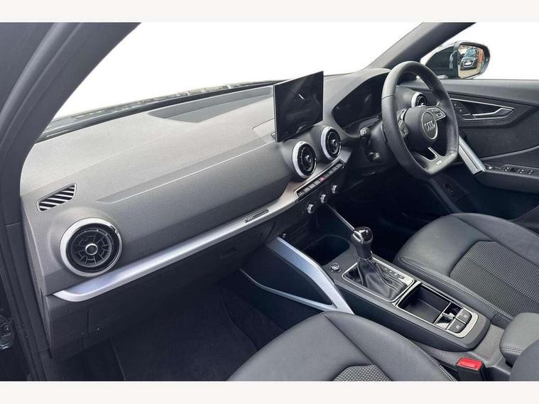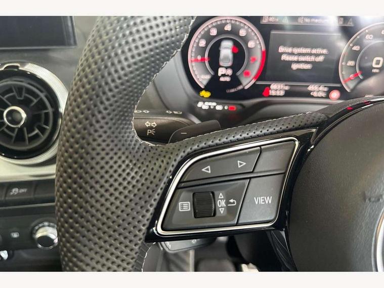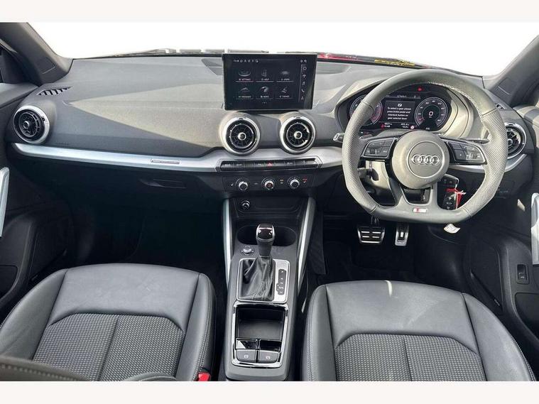 3D map display, Audi connect navigation and infotainment includes innovative services, Audi connect remote and control connects your vehicle to your smartphone, Audi drive select: S tronic - power steering assistance + engine + gearshift (modes: comfort, auto, dynamic, efficiency, individual), Audi smartphone interface - Apple carplay/Android Auto, USB connect, 2xSDXC card readers, voice control for navi, telephone, music and 3rd party apps, Audi virtual cockpit, Automatic start/stop system with recuperation, Bluetooth interface includes bluetooth audio streaming, Camera based traffic sign recognition, Cruise control, Distraction and Fatigue warning, E-call, Jukebox hard drive memory for music (10GB), Lane departure warning, MMI navigation plus with 8.8" touchscreen, Natural voice recognition, Power operated tailgate, Progressive steering, Rear parking sensors, Sport suspension, 6 passive loudspeakers, DAB Digital radio, USB type C port, Audi beam, Auto dimming rear view mirror, Black window trims, Bumper in full body colour paint finish, Electrically adjustable, folding, auto dimming and heated door mirrors with integrated LED side indicators, Front windscreen with grey tinted sunband, LED daytime running lights, LED headlights with dipped beam, high beam, position lights, indicators, LED rear lights, LED third brake light, Privacy glass - dark tinted rear and rear side windows from B-pillar backwards, Rear side wing doors, Rear wiper, Variable front intermittent wipers, Wheel arch trims in manhattan grey, 12V socket in front, 3 seat bench in 2nd row, 3 spoke flat bottomed multi-function leather sport steering wheel with gear shift paddles, 4-way electric lumbar support for front seats including manual seat height adjustment for both front seats, 60/40 split folding rear seat bench, Black carpets, Black cloth headlining, Front and rear head restraints, Front centre armrest, Front sport seats, Front/rear floor mats, Height/reach adjust steering wheel, Illuminated door sill trims with S logo, ISOFIX child seat mounting in front passenger and rear outer seats, Manual air conditioning, Single front passenger seat, Stainless steel pedals, Black styling pack - Q2, 3x3 point rear seatbelts, 6 airbags - Front, curtain and front side airbags, Electromechanical parking brake, Electronic stabilisation control including ABS, ASR and EDL, Front passenger airbag deactivation, Hill hold assist, Pre-sense front with pedestrian recognition, Seatbelt monitoring, Tyre pressure warning light with visual and acoustic warning, Warning triangle and first aid kit, Anti theft wheel bolts, Electronically operated child locks, Remote central door locking, Thatcham category 1 alarm, Aluminium interior element, Black dashboard, Gloss black centre console, Matt brushed aluminium trim inlays, Tool kit,