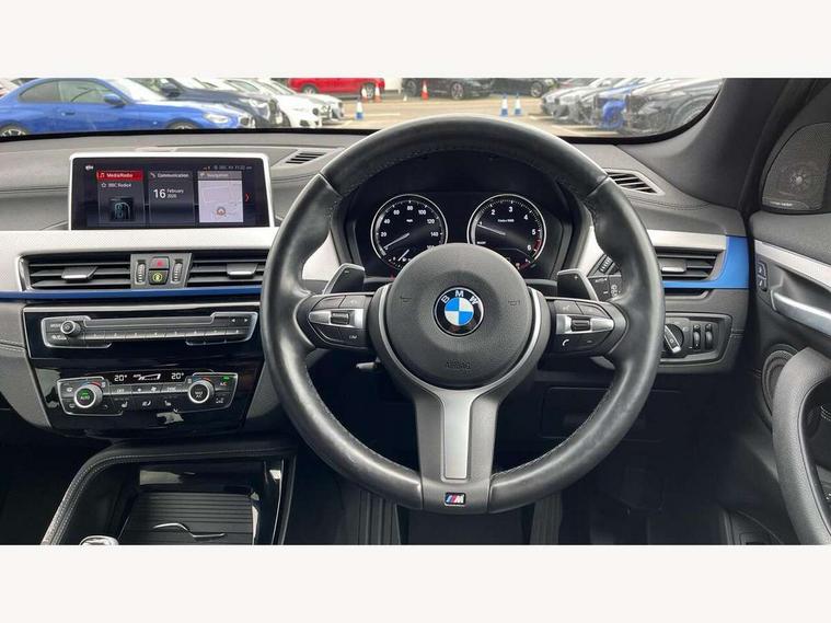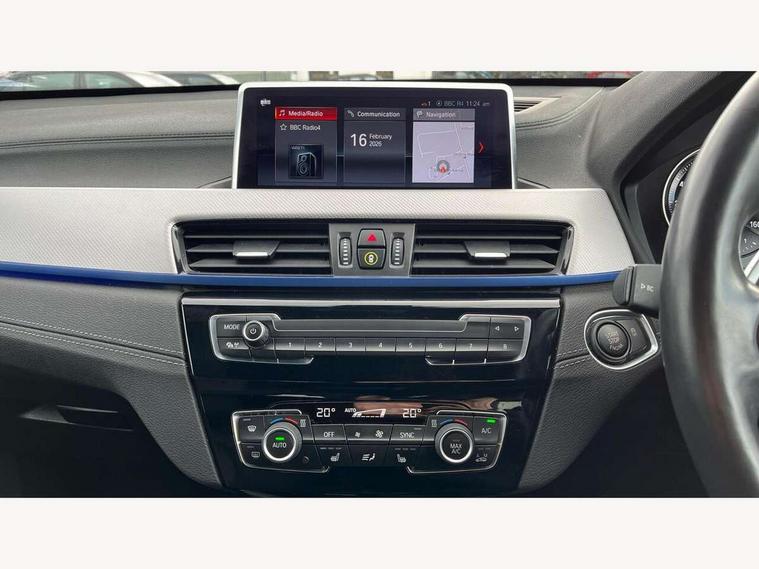 Ambient temperature display, Apple CarPlay, Arrow pointers, north up, direction of travel and perspective map displays, Attentiveness assist, Automatic tailgate opening, BMW ConnectedDrive, BMW Navigation system with 8.8" monitor and 800X480 pixel resolution, BMW Online services, BMW remote services, BMW Teleservices, Brake pad wear indicator in front and rear, Characteristic map controlled oil pump system, Electro hydraulically controlled multi plate clutch in rear axle, Energy efficient operating strategy, Front/rear park distance control (PDC), Instrument cluster with Black optic display featuring superimposed dials and 5.7" colour display, Instrument cluster with speedometer with miles per hour read out, tachometer and fuel gauge, Integrated hard drive with map data updates via USB interface, Lights on warning by audio warning signal when ignition is switched off, On board computer, Operation by iDrive with direct selection buttons and 8 programmable buttons, Optimum shift indicator, Outside temperature gauge, Park assist system, Personal Profile - automatic lock when driving away selectable, Real time traffic information, Rigidly mounted rear subframe - Multi link construction with separate spring / damper configuration and excellent driving characteristics, Service interval indicator, Servotronic PAS, Tyre puncture warning system, Variable and stepless distribution of drive torque between front and rear axle, 12V compressor with integrated sealant injection bottle and hose, Aluminium lightweight construction including crankcase, Anti-roll bars, Balancer shaft, Diesel particulate filter, DOHC valvetrain with two upper camshafts, Double VANOS, Drive performance control with ECO PRO comfort + sport mode, Eight speed sport automatic transmission, Electronic differential lock control (EDLC), High precision injection, Incorrect fuelling protection, Performance Control, Stop/start function, Transmission of power to rear axle via front axle differential and two-part cardan shaft, Twin tube gas filled shock absorbers with degressive characteristic curve, xDrive intelligent four wheel drive system, DAB Digital radio, Adjustable headlights, Aero curtain, Automatically dimming rear view mirror, BMW Icon design LED daytime driving lights, Body colour bumpers, Body colour door handles, Body colour door mirrors, Body colour wheel arches and side sills, Direction indicator side lights integrated exterior mirrors, Dynamic brake lights, Electric windows - front and rear, with open/close fingertip control, anti-trap facility and comfort closing, Electrically adjustable door mirrors with aspheric on driver side, convex on passenger side with integrated indicators, Exterior mirrors - electrically folding with anti-dazzle, Follow me home headlights, Front air guide finished in black silver, Front air inlets in matt black with silver finisher matt, Front and rear bumper system, Front bumper air intakes with dark shadow finisher, Green tinted heat protection glazing glass, Headlight beam throw control, Heated door mirrors, Heated windscreen washer jets, High level third brake light, Kidney grille with 14 chrome high gloss black vertical bars, LED direction indicator lights in headlight eyebrow, LED front fog lights, Lightweight engineering, M aerodynamic body styling, M logo designation in side chrome, Model designation, Rain sensor including auto headlights activation, Rear bumper with dark shadow and underbody protection in body colour, Rear fog lights, Rear window aerial, Rear window wash/wipe, Reversing light in rear light cluster, Roof mouldings in matt black, Shark fin antenna, Sill cover matt black with matt silver insert, Twin chrome exhaust tailpipes x2, Two eye face design on light, Visible VIN plate, Welcome lighting, 12v power point in centre console, 2 cup holders in front, 3 rear headrests, 40:20:40 split folding rear bench seat, Anthracite floor mats with M specific designation, Anthracite headlining, Boot light, Centre armrest in 20 degree part rear seat backrest, Child seat ISOFIX attachment for two outer rear seats and front passenger seat with anchorage points, Conditioned based service, Driver and front passenger heated seats, Driver/front passenger seat backrest back with luggage net, Driver/passenger sunvisors with ticket holders, Dual zone automatic air conditioning, Four grab handles integrated in roof linings, Front and rear side armrests integrated into door trim, Front centre armrest/sliding cover, Front centre interior light over interior mirror and rear centre automatic interior light when door is opened/ignition switched off or via remote key, Front door sill finishers with M designation, Front sports seats, Front/rear adjustable head restraints, Illuminated glovebox, Leather gearknob/gaiter/handbrake grip, Luggage area underfloor compartment, Luggage compartment access via recessed handle below tailgate, Luggage compartment lighting, Luggage compartment loading edge with stainless steel insert, M Sport nappa leather 3-spoke steering wheel, Manually adjustment steering wheel column, Multifunction steering wheel, Rear coded belt buckles, Single turbo charger, Standing free front adjustable armrest and fixed in different positions, Steering wheel gearshift paddles, Extended lights pack - X1, Extended storage package - X1, ABS/EBD, Audio/visual collision warning system, Automatic Stability Control (ASC), Battery safety cut-off, BMW emergency call, Brake drying, Brake energy regeneration, Braking readiness, Cornering brake control (CBC), Crash Sensor - activates hazard/interior lighting + unlocks doors, Driver/Front Passenger airbags, Driver/front passenger side airbags, Dynamic brake control, Dynamic stability control + (DSC+), Dynamic Traction Control - DTC, Electronic parking brake, Front and rear head airbags, Front passenger airbag deactivation, Front seatbelt force limiters, Front ventilated disc brakes, Hill start assist, Pyrotechnically pre-tensioned front seatbelts, Rear