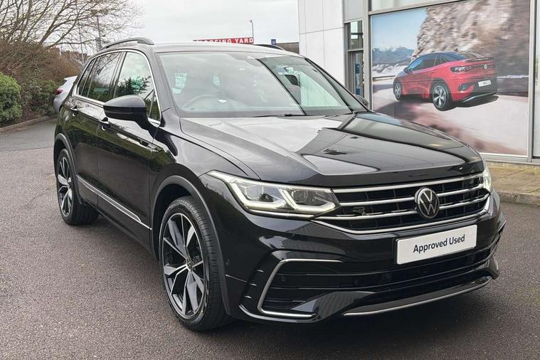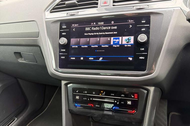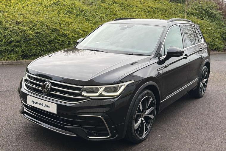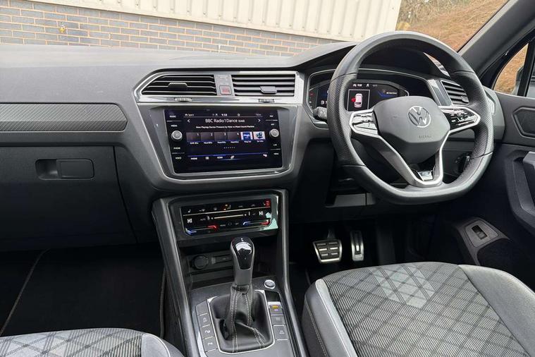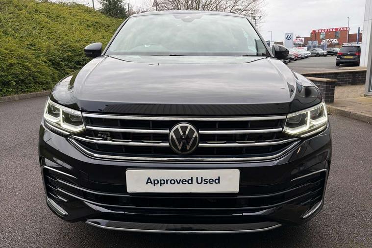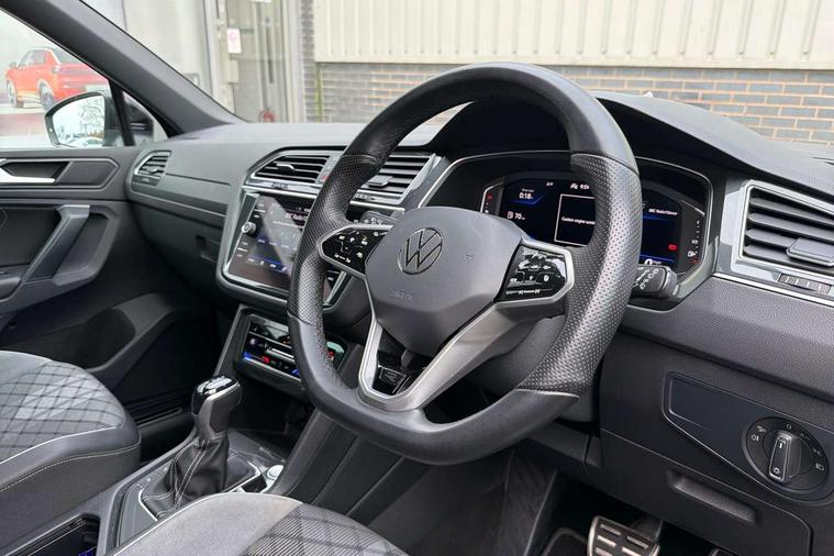 Adaptive cruise control ACC stop and go including speed limiter, App-Connect incl. App-Connect Wireless for Apple CarPlay and Android Auto, Bluetooth phone integration system, Digital Cockpit Pro - Active info display, Distance control assist, Driver alert system, Driver profile selection, Dynamic road sign display, eCall emergency call system, Electromechanical speed sensitive power steering, Engine start/stop button, Lane keeping system Lane Assist, Lights on warning, Multifunction front facing camera, Outside temperature display, Premium multifunction display with multi colour display, Remote control boot opening, Rev counter, Revision / skills operating concept travel assistant, Service interval indicator, Speed limit display, Start/stop system with regenerative braking, Trip computer, Warning sound and light for doors and tailgate open, Battery regeneration during braking, Diesel particulate filter, Misfuel prevention device for diesel engine, Selective Catalytic Reduction, XDS electronic differential lock for improved traction and handling, 2 USB-C ports in the front, 1 USB-C charging socket on the center console in the rear, 4 X 20 watt output, 8 Speakers, Diversity antenna for FM reception, Radio, SD card slot, Simultaneous pairing of 2 compatible mobile devices, SMS functionality - read, compose and send SMS messages using touch-screen display, Title and cover art display, Auto dimming interior rear view mirror, Automatic headlight control system, Black roof rails, Body colour door handles, Body coloured bumpers in R Line style, Body coloured door mirrors with integrated indicators, Chrome moldings on the side windows, Coming/leaving home lighting function, Dynamic headlight range control, Front and rear electric windows, Heated rear window, High level 3rd brake light, Laminated safety glass windshield, heat and sound insulating, LED headlamps with LED separate daytime running light and dynamic cornering light, LED rear combination lamps, LED rear number plate lights, License plate carrier in front and rear, Poor weather light and cornering light, Privacy glass for rear side windows and rear window, R Line body kit, R Line side sills, Rain sensor windscreen wipers, Rear exhaust tailpipe, Rear fog lamp, Rear side wing doors, Rear spoiler in R style, Rear windscreen washer and wiper with interval delay, Side and rear windows in heat insulating glass, Trailer Stability Programme, Unique R Line badging, Windscreen wipers/ intermittent wipe + 4 position delay, 12V outlet in center console rear and in luggage compartment, 12V outlet in front and tray, 2 cup holders in front, 2 LED front reading lights, 2 LED rear reading lights, 3 bench rear seats in 2nd row, 3 rear headrests, 4 load lashing points, 40:20:40 split folding rear seats, Air Care Climatronic 3 zone automatic climate control with enhanced air filter and controls in the rear, Backrest release for left front seat, Black headlining, Brushed stainless steel pedals and footrest, Carpet mats in front and rear with decorative stitching in Gray, Climate control unit rear with touch function, Door and side trim panel in foam film, insert in leatherette, Front centre armrest, Front footwell illumination, Front seats head restraints (x-adjustment), Height adjustable front seats, Height/reach adjust steering wheel, Instrument lighting white adjustable panel illumination, Interior light with delay, Isofix Preparation 2 Rear child seats, Leather gear knob, Lockable cooled glovebox, Luggage compartment lighting, Luggage net, Rear bench seat asymetrically split folding, longitudinally movable and folding with load-through hatch and center armrest, Remote unlocking for rear seat backrest, Removable luggage cover, Removable rear headrests, Safety optimised front head restraints, Single front passenger seat, Sliding/reclining rear seats, Standard rear seat release, Storage compartment in driver's door, Storage compartment in passenger's door, Storage compartment in rear doors, Storage compartments in luggage area left and right, Storage tray on dashboard, Sun visors with illuminated vanity mirrors, Top front comfort seats, Variable boot floor, height adjustable and removable, Ambience pack - Tiguan R Line, Driver assistance pack plus - Tiguan DSG, Park assist pack - Tiguan, 3 point seat belt for centre rear seats, 3 point seat belts with seat belt pretensioners for the outer rear seats, Active bonnet, Curtain airbags for front and rear passengers, Driver/Front Passenger airbags, Drivers knee airbag, Electronic parking brake with auto hold, Electronic Stability Control with driver steering recommendation, ABS, ASR, EDL, EDTC and trailer stabilization, Front assist with autonomous emergency braking (for Adaptive Cruise Control ACC up to 130 mph), Front disc brakes, Front passenger airbag deactivation, Front side airbags, Height adjustable front 3 point seatbelts + pretensioners, Hill hold control, Manual child proof rear door locks, Pedestrian monitoring system, Power assisted brakes, Proactive passenger protection system in combination with front assist, Rear disc brakes, Rigid safety cell with front and rear crumple zones, Two tone horn, Warning sound and light for front seat belts if unfastened, Anti theft alarm system with interior monitoring, backup horn and towing protection, Anti theft wheel bolts, Electronic engine immobiliser, 20" Misano black with diamond turned surface alloy wheels with Airstop tyres, Tool kit,
