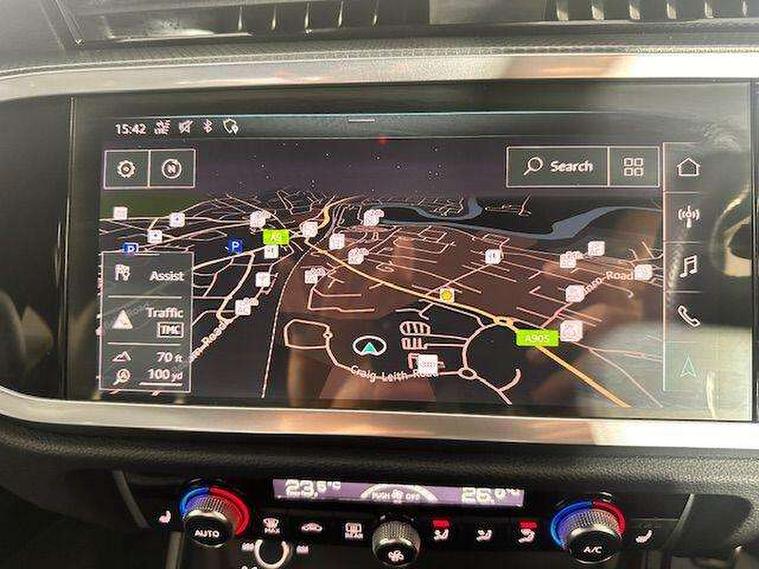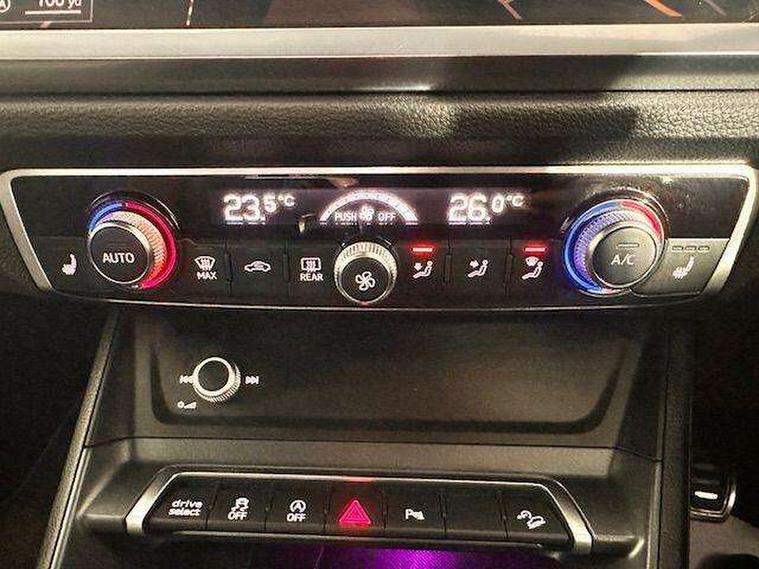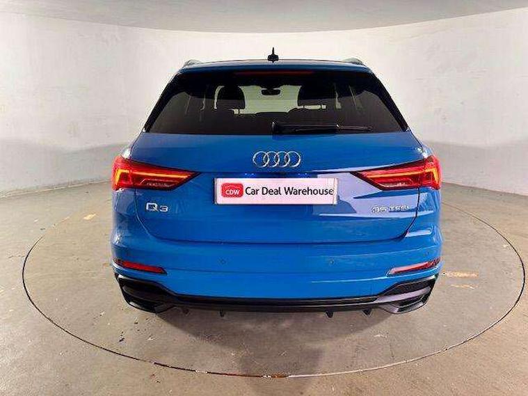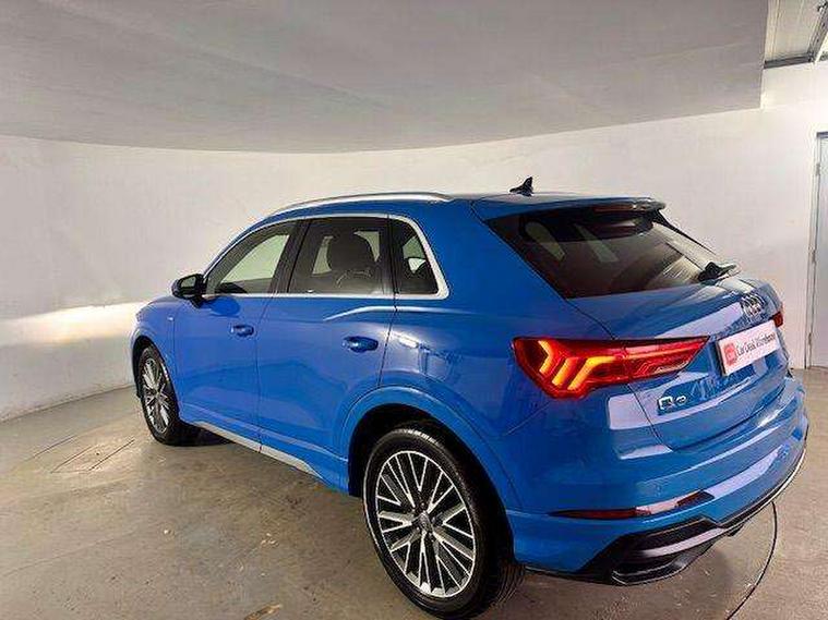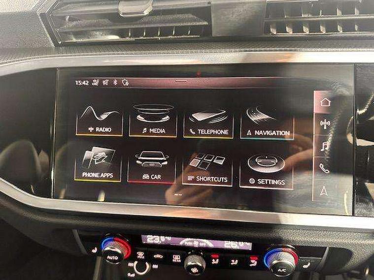 Apple CarPlay, Audi connect safety and service (e-call), Audi drive select, Audi lane departure warning, Audi side assist, Audi smartphone interface, Audi Virtual Cockpit - 10.25" display, Bluetooth interface, Camera based traffic sign recognition, Cruise control + speed limiter, MMI Navigation Plus with high resolution 10.1 inch touchscreen colour display, Power opening/closing tailgate, Progressive steering, Rear parking sensors, Service interval indicator, Start stop system with recuperation, Voice control system with natural language interaction, Sports suspension, 1 x USB type C and 1 USB type A charging points, 6 speakers, DAB digital radio module, Acoustic windscreen, Aluminium roof rails, Aluminium window trim, Auto dimming frameless rear view mirror, Body coloured bumpers, Electrically folding, adjustable and heated door mirrors with integrated LED side indicators and kerb view function for passenger side, Front and rear electric windows, Front fog lights, Front side air inlets in matt platinum grey, Front spoiler blade in matt platinum grey, Grille vertical bars in aluminium silver/Matt, High gloss black finish B and C pillars, LED headlights with LED daytime running lights and dynamic rear indicator, LED rear lights, Privacy glass, Rain and light sensors, Rear diffuser strip in matt titanium black, S Line badge on wings, S Line front and rear bumpers, Side skirt insert in matt Platinium grey, Silver chrome grille surround, Titanium black radiator grille, 12V socket in rear centre console, 40:20:40 split folding rear bench seat, 60:40 forwards/backwards position and backrest angle, Adjustable rear seat bench/backrest with centre armrest and cupholder, Aluminium door sill trims, Black cloth headlining, Dual zone electronic climate control, Front and rear black floor mats with contrast stitching in rock grey, Front and rear headrests, Front and rear roof module including reading lights, Front centre armrest with storage compartment and angle adjustment, Glove compartment lighting, Height and reach adjustable steering wheel, Illuminated door sill trims with S logo, ISOFIX child seat mounting and Top Tether with front passenger airbag deactivation, Luggage compartment light, Manual front seats with height adjustment, Perforated leather gearknob, Stainless steel luggage compartment sill finisher, Stainless steel pedals, Non smoking pack - Q3, 3x3 point rear seatbelts, 6 airbags - Driver, front passenger, curtain and side windows, Audi pre-sense front with pedestrain and cyclist recognition, Electrically operated child locks on rear doors, Electromechanical parking brake, Electronic stabilisation control including ABS, ASR and EDL, Hill descent control, Hill hold assist, Pre sense basic, Seatbelt monitoring, Tyre pressure warning, Warning triangle and first aid kit, Anti theft alarm, Anti theft wheel bolts, Remote central locking, Dark matt brushed aluminium inlay, Leatherette door armrest, MMI touch colour display in gloss black with aluminium surround,