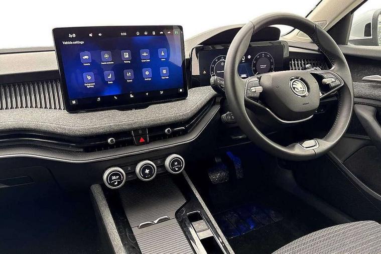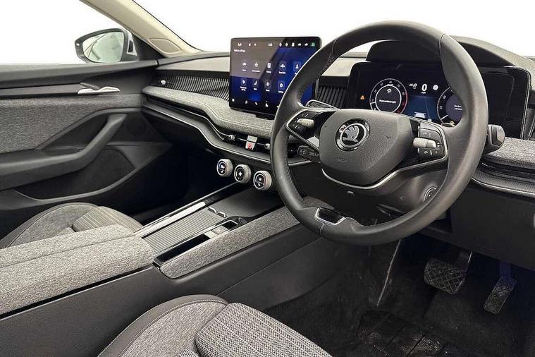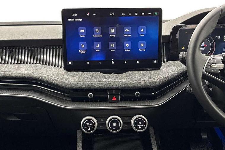 13" touchscreen display with satellite navigation, 4x USB-C ports (2x in front centre console and 2x in rear) (45W), Adaptive cruise control with speed assist, lane assist plus and traffic tram assist, Blind spot detection with door exit warning, Bluetooth system, CareConnect and Emergency Call, ChatGPT functionality, Driver fatigue sensor, Front assist with extended predictive pedestrian protection, Front cross traffic assist, PAS, Quick start all heating software functionality, Stop/start engine system, Traffic sign recognition, Turn assist with evasive assistance, Virtual Cockpit - 10.25" digital display, Voice control system, Washer for rear camera, Wireless charging for one smartphone (15W) with cooling function, Wireless smartlink apple carplay, SmartLink+ android auto, 8 Speakers, DAB Digital radio, Display cleaner, FM radio connection, Web radio connection, Acoustic side windows and interior noise suppression, Backdrop lighting, Body colour door handles, Body coloured door mirrors, Chrome window surround, Dark chrome grille surround, Electrically adjustable, heated, folding and driver side auto-dimming door mirrors with integrated indicators and logo projection, Frameless auto-dimming rear view mirror with USB-C, Ice scraper in fuel tank cap, LED 3rd brake light, Light assist with High beam control, Light assistant (coming/leaving home/tunnel light), Privacy glass, Rear fog light (x1), Rear side wing doors, Unique dark chrome design logo on alloy wheels, Windscreen wipers with rain sensor, 12V socket 1x centre console 1x boot, 2x cargo elements in boot, 2x light in boot, 3 seat bench in 2nd row, 60:40 Split folding rear seats, Bottle holders in the front doors 1.5 litre bottle and rear 1.5 litre bottle, Cup holder in front with easy open mat, Front armrest with storage box, Front comfort seats, Heated front seats, Height adjustable driver and front passenger seats with 2-way electric tilt, 4-way pneumatic lumbar support, and extendable thigh support, Height adjustable front and rear head restraints, Height adjustable front passenger seat, Illuminated glovebox, Interior lights with control switches, Isofix child seat fittings in outer rear and front passenger seats, LED front and rear reading lights, Massage function for front seats, Single front passenger seat, Skoda lettering on steering wheel, Storage compartment with cover, Storage pockets on back of front seats, Sun visors with illuminated vanity mirrors, Ticket holder on A Pillar, Tri zone climate control, Umbrella in driver's door, 3 rear seatbelts, 8 Airbags - Front driver and passenger, front side driver and passenger, centre, curtain front and rear, drivers knee, Crew protect assist, Driver and passenger seatbelts with warning light, Electronic parking brake, ESC including ABS, EBV, MSR, ASR, EDS, HBA, DSR, RBS, CBC, multi-collision brake (MKB) and Auto hold, Hill hold assist, Power operated child lock in rear doors, Alarm with interior monitoring tilt sensor and back up horn, Backrest remote release from trunk, Electronic engine immobiliser, Keyless start/stop, Remote central locking with SAFE system, Third key, Decorative front door sills,