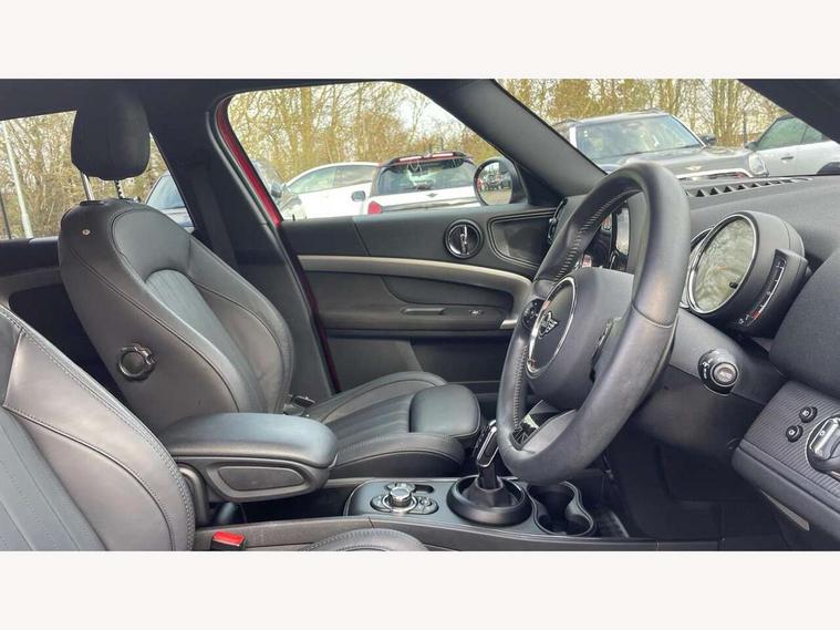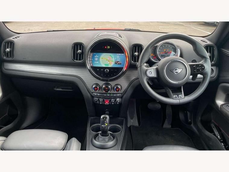 Active Guard incl speed limiting and lane departure functions with auto steering, and front collision warning with brake intervention, Automatic start/stop function with brake energy recuperation, Electro-mechanical speed dependant steering assistance, Instrument cluster, MINI Driving Modes - centre toggle switch to control driving setting (sport, mid and green), Mini E-call, MINI TeleServices, On board computer, Double Vanos system, Fully variable valve control, High precision injection, Performance Control, Steptronic sport transmission with double clutch and steering wheel paddles, FM tuner and DAB digital radio, 3rd brake light, Bonnet scoop, Chrome fuel filler cap, Day time driving lights, Dynamic brake lights, Electric windows, Heated rear window, Heated windscreen washer jets, LED fog lights, Metal door sill strips with Cooper S imprint, MINI yours exterior badge in C-Pillar, driver and passenger side, Model logo, Model logo on Tailgate, Rain sensor with auto headlights, Rear fog lights, Rear side wing doors, Rear window wiper, Side scuttle panel with integrated indicator, Split rear doors, Sun/heat protection glass, White indicator lenses, 12V socket in centre console, 3 seat bench in 2nd row, 360L luggage compartment capacity, 4 lashing eyes in luggage compartment, 40:20:40 split folding rear seats, Anthracite headlining with grab handles and clothes hooks, Chrome interior highlights, Colour line - Carbon black, Cupholders, English handbook, Front headrests, Glove compartment, Height and length steering column adjustment, Interior lighting with 12 basic colours selectable via toggle switch in roof, Isofix rear child seat preparation, Leather gearshift lever and handbrake gaiters, LED reading lights, vanity mirror lights, front foot well light and spotlight on front seats, MINI Yours fine walk nappa leather steering wheel with contrast stitching in silver and MINI Yours badge, Multifunction steering wheel, Rear headrests, Single front passenger seat, Storage compartments in doors, Sunvisors with vanity mirrors, Excitement pack - Countryman, Navigation plus pack - Countryman, 2 tone horn, 3 point seatbelts on all seats, 6 Airbags - front, side, head and seat belt tensioners, Anti-lock braking system (ABS), DSC - Dynamic Stability Control, Electronic handbrake, Front and rear disc brakes, Hill start assist, Manual rear child locks, Tyre pressure monitoring system, Alarm system with tilt sensor, monitoring doors, bonnet interior and tailgate, Auto drive away locking, Deadlocking function, Electronic vehicle immobiliser, Locking wheel bolts, Start/stop toggle with keyless go, Tool kit,