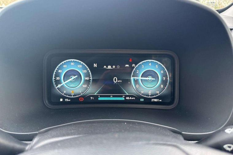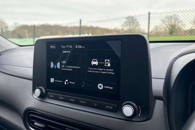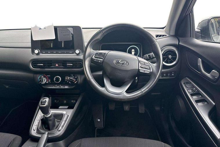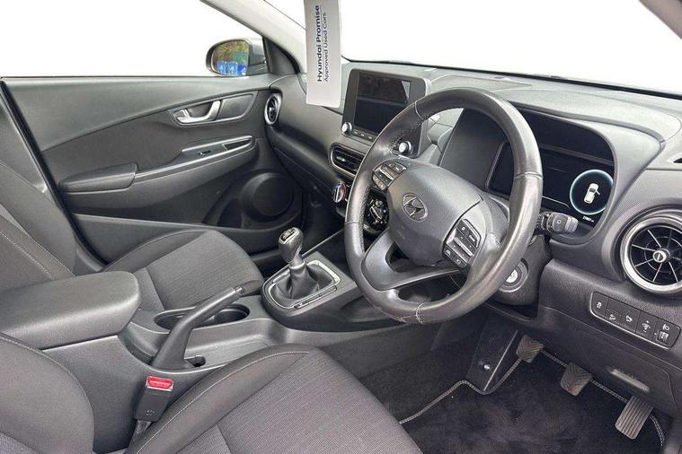 8" Touchscreen display audio + smart device integration, Bluetooth connectivity, Cruise control + speed limiter, Digital clock, Driver attention warning, Driver supervision instrument cluster with 10.25" LCD display, eCall emergency call system, Forward collision avoidance assist with pedestrian detection, Lane follow assist, Lane keep assist, Leading vehicle departure alert (LVDA), Parking system with rear camera and guidance system, PAS, Phone connection with apple carPlay and android auto, Rear parking sensor, Roadside assistance, Tailgate, Windscreen washer fluid sensor and warning indicator, 6 speed intelligent manual transmission, 6 speakers (2 front, 2 tweeters, 2 rear), Front USB ports, RDS and Digital DAB, Steering wheel mounted audio/phone controls, Automatic headlights with dusk sensor, Body colour door mirrors and handles, Door mirror integrated indicators, Electric front/rear windows with drivers one touch/anti-trap, Electrically adjustable and heated door mirrors, Halogen headlights, Halogen rear lights, LED daytime running lights, Positioning Lights - LED, Rain sensor, Rear roof spoiler with integrated LED brake light, Rear side wing doors, Rear wiper, Roof rails, Tinted glass with front door glass and windscreen with shade band, Variable front intermittent wipers, 12V power outlet in front console, 3 seat bench in 2nd row, 60/40 split folding rear seat, Adjustable head restraints, Air conditioning, Centre interior light, Cloth upholstery, Door scuff plate, Driver's seat height adjustment, Driver/passenger sunvisors and illuminated vanity mirrors, Front interior light, Front passenger seat manual adjustments, Height/reach adjustable steering column, Isofix rear child seat fastenings, Leather wrapped steering wheel and gear knob, Luggage compartment lighting, Luggage hooks, Metal paint effect interior door handles, Parcel shelf, Rear centre console with air vents, Single front passenger seat, Sunglasses holder, Vertical adjustment rear head restraints, Trailer wiring package - Kona, Airbags - front, front side and curtain airbags, Anti-lock brake system (ABS), Childproof rear door locks, Downhill brake control, EBD + Brake Assist, Electronic stability control, Fasten seatbelt reminder, Fixed 3 point for second row centre passenger seatbelt, Front seatbelt pretensioners, Height adjustable front seatbelts, Hill start assist control (HAC), Manual parking brake, Passenger airbag deactivate switch, Rear seat alert, Traction control, Tyre pressure monitoring system, Alarm/immobiliser, Deadlocks, Folding key, Locking wheel nuts, Remote central locking, 17" Alloy wheels,