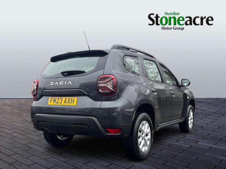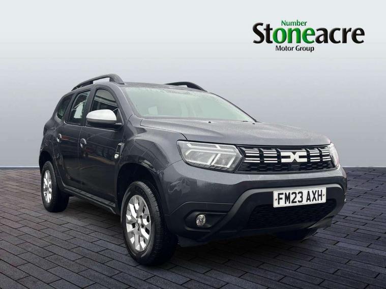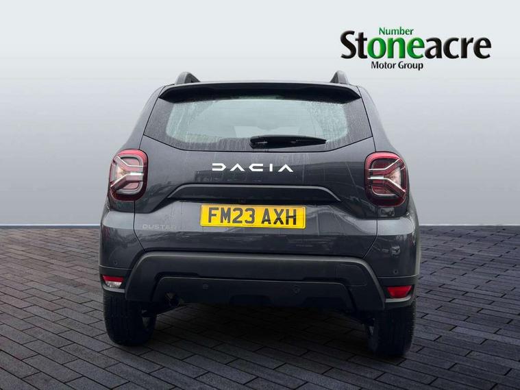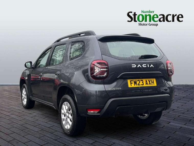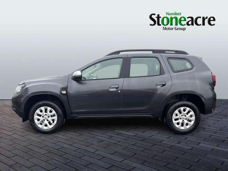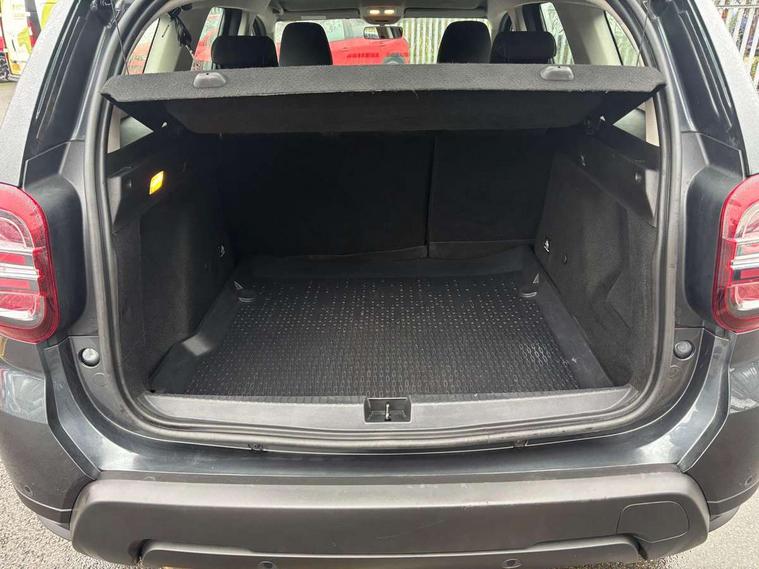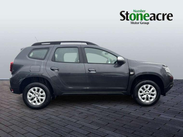 Cruise control and speed limiter, eCall emergency system, Eco mode, Electric power assisted steering, On board computer, odometer, trip computer, average fuel consumption, average speed, service indicator, outside temperature gauge, Rear parking sensors, Rev counter, Reversing camera, Stop/start system, 8" Media display with smartphone replication, 2 usb sockets and 6 speakers, Dacia plug and radio/MP3/USB/bluetooth/DAB/steering wheel control, 3 speed windscreen wipers, Black longitudinal roof bars with Duster inscription, Black side sills, Black/satin chrome tailgate trim with Duster inscription in black background and lettering, Body coloured door handles, Chrome front grille with hot stamping, Chrome logo surround on steering wheel, Daytime running lights, Drivers window one touch up/down, Dusk sensor, Electric adjustable/heated door mirrors, Electric front windows, Electric rear windows, Front and rear body coloured bumpers, Front door sill protection strip, Front fog lights, Heated rear window, High level third rear brake light, Rain sensor, Rear side wing doors, Rear spoiler, Rear wash/wipe, Satin chrome door mirrors, Tinted windows, Underbody protection skid plates, Y shaped LED headlights with rear LED lights, 3 rear height adjustable headrests, 3 seat bench in 2nd row, 60/40 split folding rear seat, Backlighted steering wheel buttons, Boot light, Driver seat lumbar adjustment, Fabric decorative insert on door panels, Fabric upholstery, Front head restraints, Front passenger reading light, Gear shift indicator, Height adjustable driver seat, Height adjustable front and rear headrests, Height and depth adjustable steering wheel, High centre console with driver armrest, Isofix points for child seats in both outer rear seats, Manual air conditioning, Map pocket on front seat backs, Passenger sunvisor with vanity mirror, Rear passenger reading light, Satin chrome interior door handles, Satin chrome lower steering wheel insert, Single front passenger seat, Soft feel leather steering wheel, 3x3 point rear seatbelts, ABS and Emergency brake assist, ASR traction control with Electronic stability control, Child locks on rear doors, Door open visual and audible warning, Driver airbag, Driver and passenger seatbelt not fastened - visual and audible warning, EBD - Electronic brakeforce distribution, Front passenger airbag, Front passenger airbag deactivation, Front seatbelt pretensioners, Front side airbags, Height adjustable front seatbelts, Hill start assist, Tyre pressure monitor, Remote central locking, Thatcham approved engine immobiliser, Charcoal grey central console surround, Matt black central console fascia, Piano black decorative insert on front door panels, Satin chrome air vent surround, Satin chrome instrument dial surrounds, 16" alloy wheels,