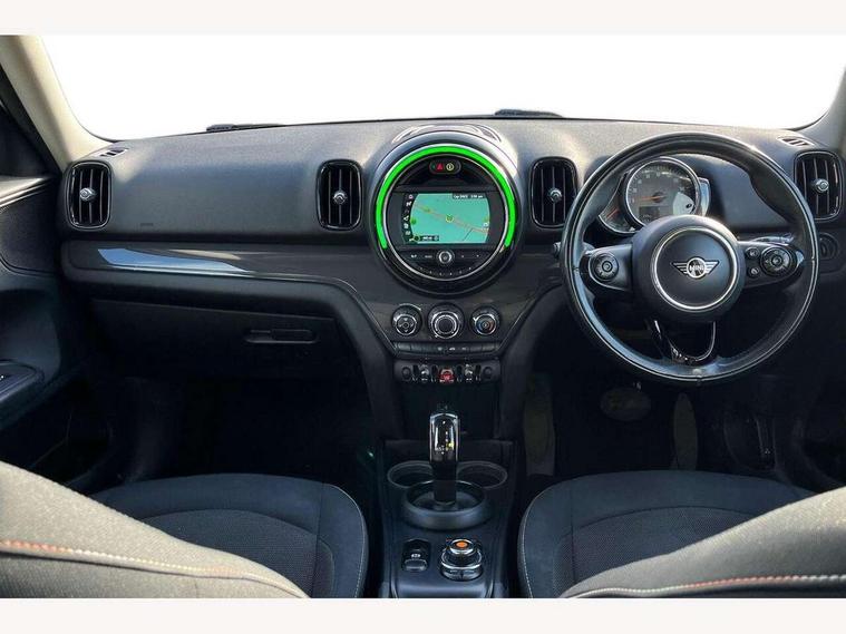 Active Guard incl speed limiting and lane departure functions with auto steering, and front collision warning with brake intervention, Automatic start/stop function with brake energy recuperation, Electro-mechanical speed dependant steering assistance, Instrument cluster, Mini E-call, MINI TeleServices, On board computer, Rear parking distance control, Automatic transmission, Double Vanos system, Fully variable valve control, High precision injection, FM tuner and DAB digital radio, Body colour fuel filler cap, Day time driving lights, Door sill strips, Dynamic brake lights, Electric windows, Heated rear window, Heated windscreen washer jets, Left exhaust tailpipe with chrome finisher, Model logo, Model logo on Tailgate, Radiator grille, Rain sensor with auto headlights, Rear fog lights, Rear window wiper, Side scuttle panel with integrated indicator, Split rear doors, Sun/heat protection glass, White indicator lenses, 12V Accessory socket in centre console, 360L luggage compartment capacity, 4 lashing eyes in luggage compartment, 40:20:40 split folding rear seats, Chrome interior highlights, Colour line - Carbon black, Cupholders, English handbook, Front headrests, Glove compartment, Headliner with grab handles and clothes hooks, Height and length steering column adjustment, Interior lighting with 12 basic colours selectable via toggle switch in roof, Isofix rear child seat preparation, Leather gearshift lever and handbrake gaiters, LED reading lights, vanity mirror lights, front foot well light and spotlight on front seats, Manual air conditioning, Mechanical seat adjustment, driver seat height adjust, forward/back and front seats backrest, Multifunction steering wheel, Passenger seat height adjuster, Rear headrests, Storage compartments in doors, Sunvisors with vanity mirrors, Excitement pack - Countryman, Navigation pack - Countryman, 2 tone horn, 3 point seatbelts on all seats, 6 Airbags - front, side, head and seat belt tensioners, Anti-lock braking system (ABS), DSC - Dynamic Stability Control, Electronic handbrake, Front and rear disc brakes, Hill start assist, Tyre pressure monitoring system, Alarm system with tilt sensor, monitoring doors, bonnet interior and tailgate, Auto drive away locking, Deadlocking function, Electronic vehicle immobiliser, Locking wheel bolts, Start/stop toggle with keyless go, Tool kit,
