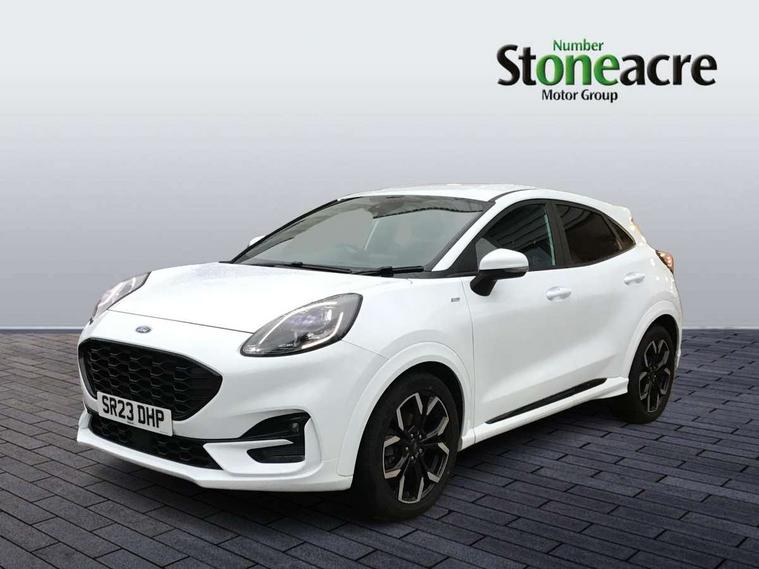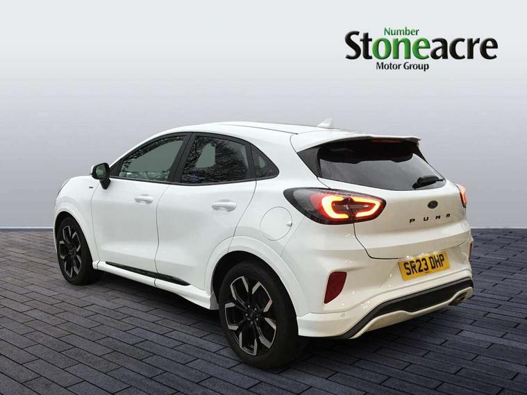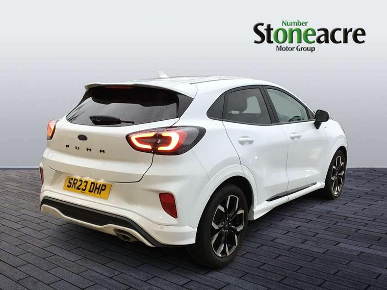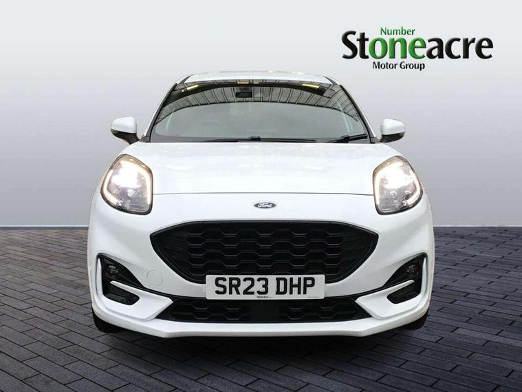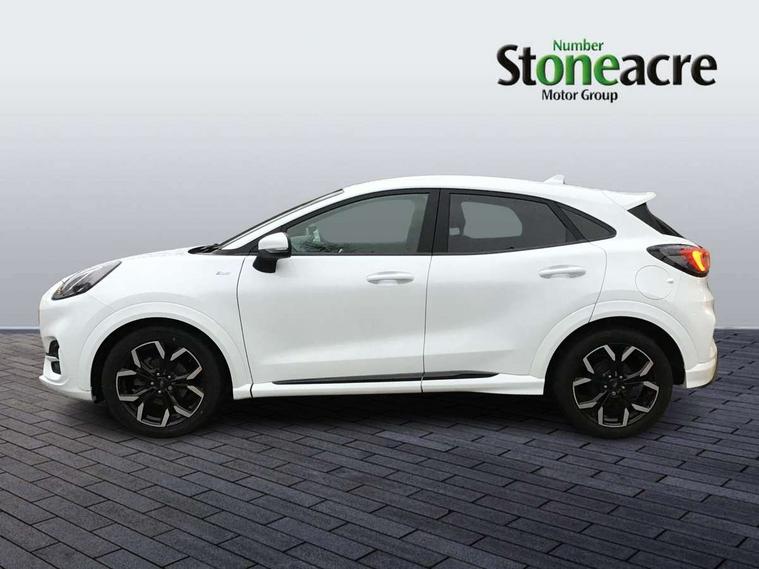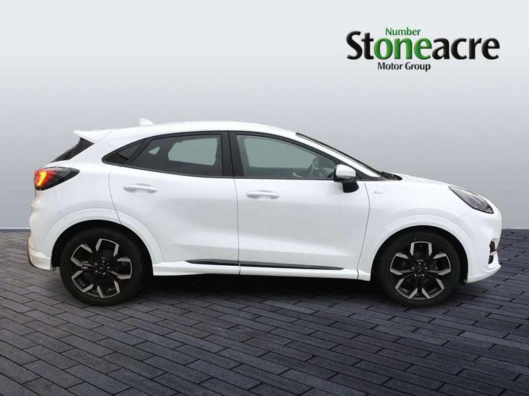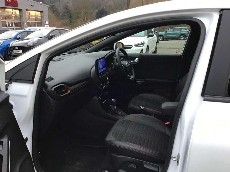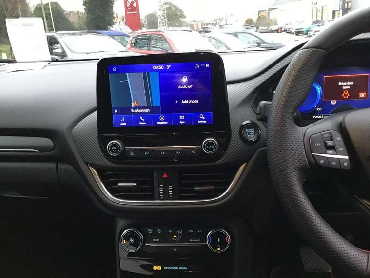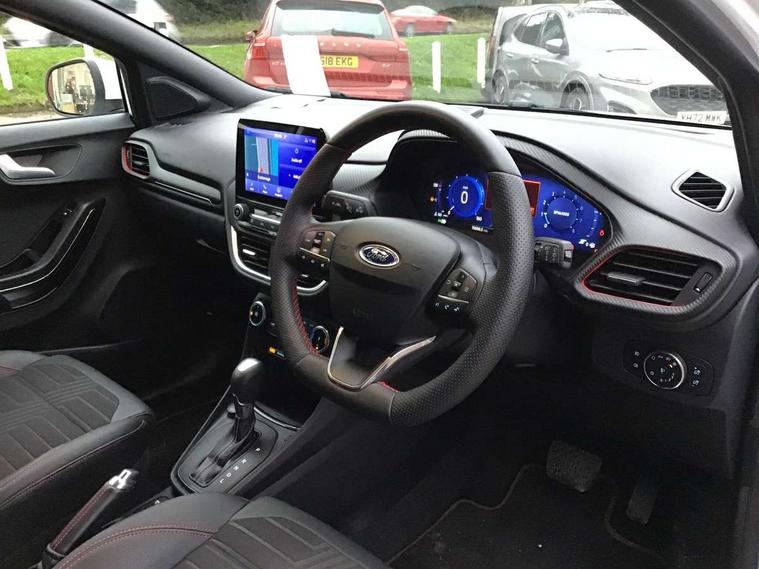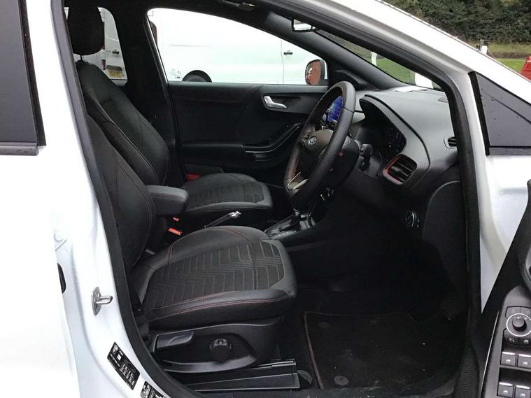 Driver impairment monitor, Emergency call service, Ford easy fuel, Full digital 12.3" instrument cluster, Lane keeping aid with lane departure warning, Power assist steering, Power start button, Rear parking sensor, Selectable drive modes(Normal, sport, Eco, trail, slippery), Speed sign recognition, Sport suspension, Automatic headlights with auto high beam, Automatic rain sensing wipers, Front fog lamps, LED daytime running lights, LED rear lamps, Power foldable heated door mirrors with puddle lamps, Privacy glass to side rear windows and tailgate glass, Quickclear heated windscreen, Rear side wing doors, Rear wiper, ST-Line body styling kit with unique grille and large body colour rear spoiler, Third brake light, 3 seat bench in 2nd row, Centre console with armrest and stowage, Ford megabox extended bootspace, Front and rear head restraints, Front floor mats, Manual 4 way driver seat adjust with lumbar adjustment, Manual 4 way passenger seat with lumbar seat adjustment, Sensico partial premium upholstery, Single front passenger seat, ST-Line flat bottomed sensico leather steering wheel with leather handbrake and aluminium gear knob, Wireless charging pad with electronic air temperature control (EATC), B&O Premium Audio system + Ford SYNC 3 navigation pack - Puma, 3 rear seatbelts, Child safety lock, Electronic stability control (ESC) and hill start assist, Pedestrian/cyclist detection & post-collision braking, Pre collision assist system, Tyre pressure monitoring system (TPMS), Thatcham alarm, Carbon look interior deco spears,