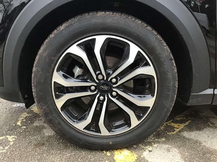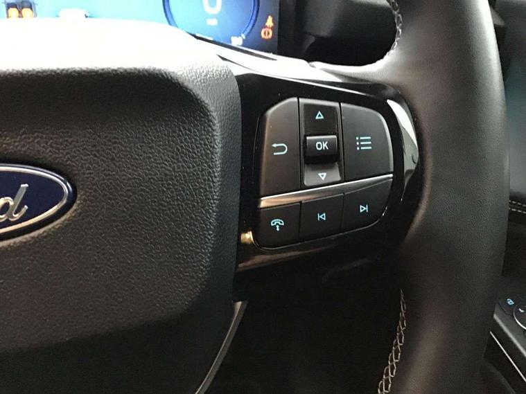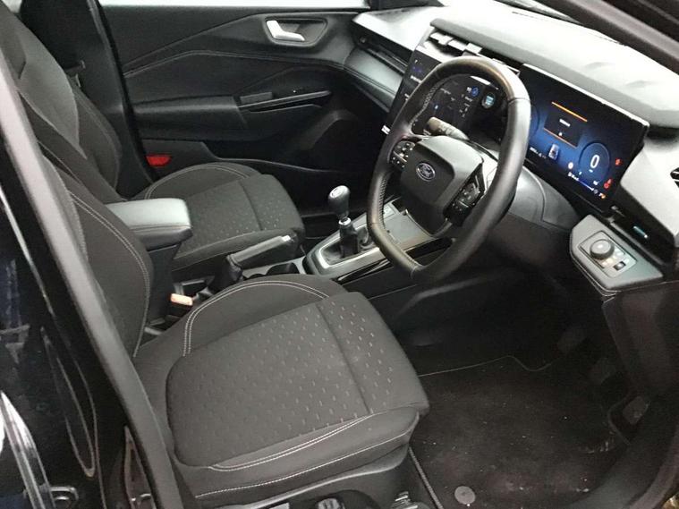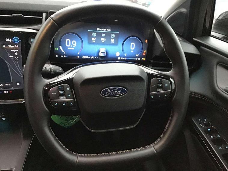 Driver impairment monitor, Emergency call service, Ford easy fuel, Full digital 12.8" instrument cluster, Lane keeping aid with lane departure warning, Power assist steering, Selectable drive modes(Normal, Eco, Sport, Slippery and Trail), Speed sign recognition, Standard suspension, 12" landscape touchscreen display with wireless apple car play and android auto 6 speaker audio system, Ford pass connect and emergency assistance, Ford SYNC4 with connected navigation, Automatic headlights with rain sensing wipers and auto high beam, Front fog lamps, LED daytime running lights, LED rear lamps, LED third brake light, Quickclear heated windscreen, Rear privacy glass, Rear side wing doors, Rear wiper, 3 seat bench in 2nd row, Centre console with armrest and stowage, Electronic automatic temperature control (EATC), Ford megabox extended bootspace, Front and rear head restraints, Front floor mats, Manual 4 way driver seat adjust with lumbar adjustment, Single front passenger seat, Titanium cloth upholstery, 3 rear seatbelts, Child safety lock, Electronic stability control (ESC) and hill start assist, Pre-collision assist with autonomous emergency braking, pedestrian/cyclist detection & post-collision braking, Tyre pressure monitoring system (TPMS), Thatcham alarm, 17" Absolute black machined finish alloy wheel,