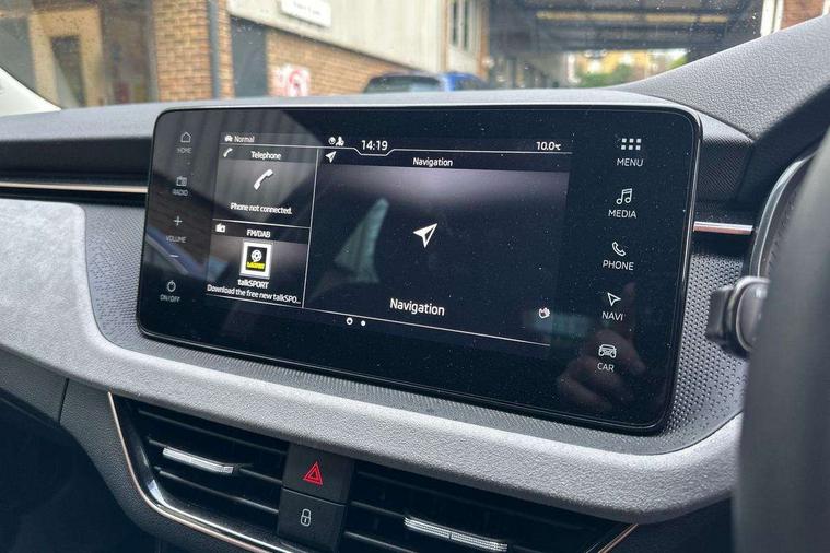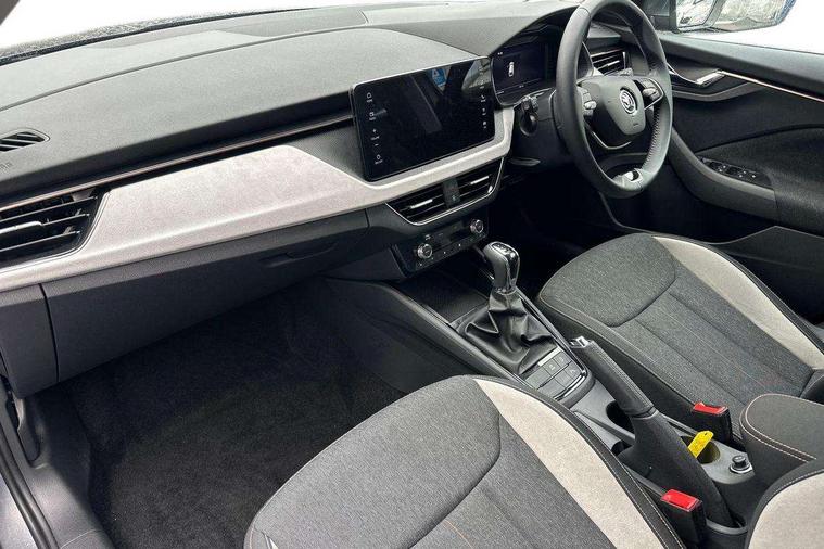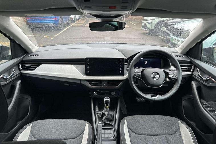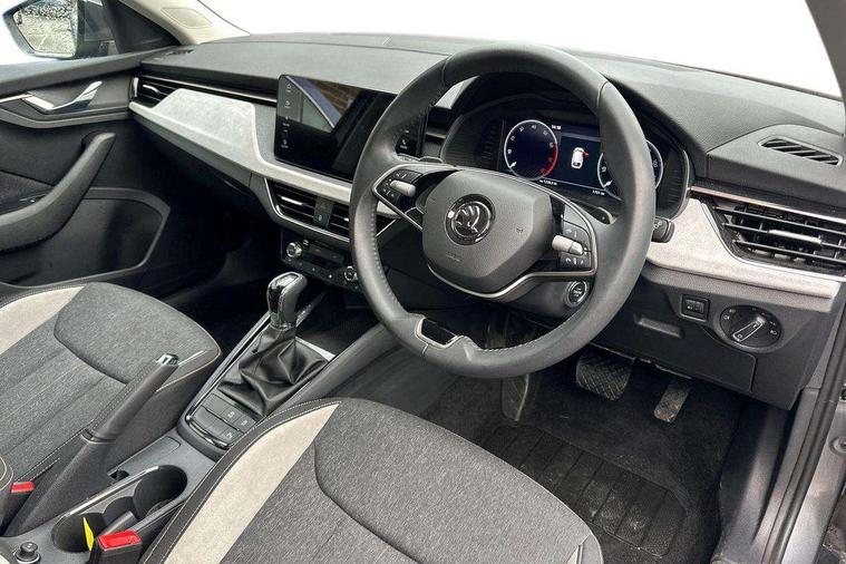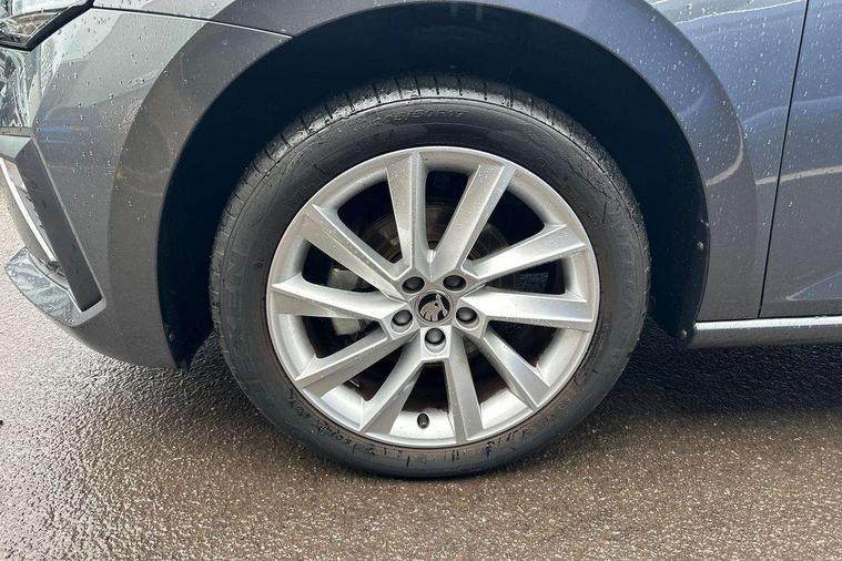 Advanced driver attention and drowsiness monitor, Bluetooth, e-Call (emergency call), Front assist system, PAS, Rear parking sensors, Rear view camera, Speed limiter, Tailgate, Traffic sign recognition, Virtual Cockpit - 10.25" digital display, Voice control system, Wireless smartlink, 4 USB C ports, 8 Speakers, 9.2" Skoda navigation display, DAB radio, Auto dimming rear view mirror, Automatic headlamp activation with Coming home and Leaving home feature, Automatic high/low beam, Automatic intermittent wipers, Body colour bumpers, Body colour door mirrors and handles, Chrome moulding around grille, Chrome window frames, Front and rear electric windows, Heated rear window, LED 3rd brake light, LED brake lights, LED daytime running lights, LED front turning lights, LED high beam, LED low beam, Light sensors, Privacy glass, Rear LED fog light, Rear side wing doors, Rear wiper, Tinted windows, Unique dark chrome design logo on alloy wheels, 12V socket in luggage compartment, 3 seat bench in 2nd row, Ambient lighting in white/red, Black / Copper armrest stitching, Cargo elements, Chrome inner door handles, Copper hotstamping, Door inserts in accent black, Driver and passenger sun visors with vanity mirror, Dual zone climate control, Front and rear roof lights, Front centre armrest, Front head restraints, Glasses storage in roof liner, Height adjustable driver seat, Height adjustable passenger seat, Ice scraper, Illuminated glove compartment, Inner circulation control with pollen filter, ISOFIX for front passenger seat, Isofix preparation for back seats, Leather gearknob and handbrake lever, Lodge cloth upholstery, Luggage net under rear parcel shelf, Manual lumbar support for front seats, Net package and top tether hooks in boot space, Pearl grey ceiling, Pocket on the back of both front seats, incl. mobile phone pockets, Rear centre armrest, Single front passenger seat, Skoda lettering on steering wheel, Textile floor mats, Third rear headrest, Ticket holder, Top tether for front passenger seat, Umbrella in driver's door, Convenience pack without rear camera - Scala, 3x3 point rear seatbelts, ABS, Child locks, Curtain airbags and front side airbags, Disc brakes, Driver and front passenger airbags, ESP, Hill hold control, Manual leather parking brake, One tone horn, Passenger airbag switch off function, Seatbelt reminder for driver and front passenger, Tyre pressure monitoring system, Anti theft alarm system with interior monitoring, backup horn and towing protection, Anti-theft wheel bolts, Remote central locking with 2 remote folding keys, SAFE function for remote central locking, Decorative inserts,