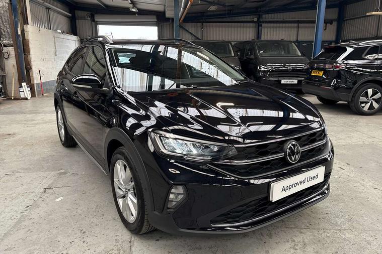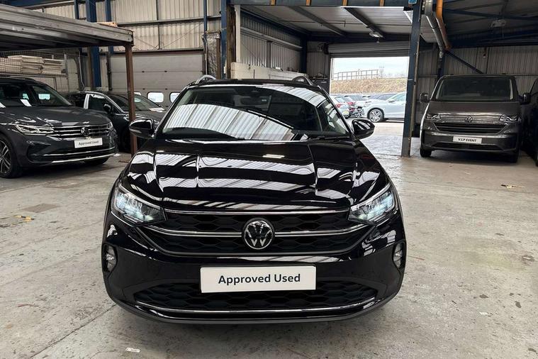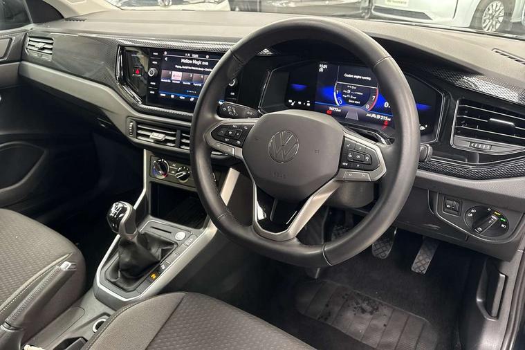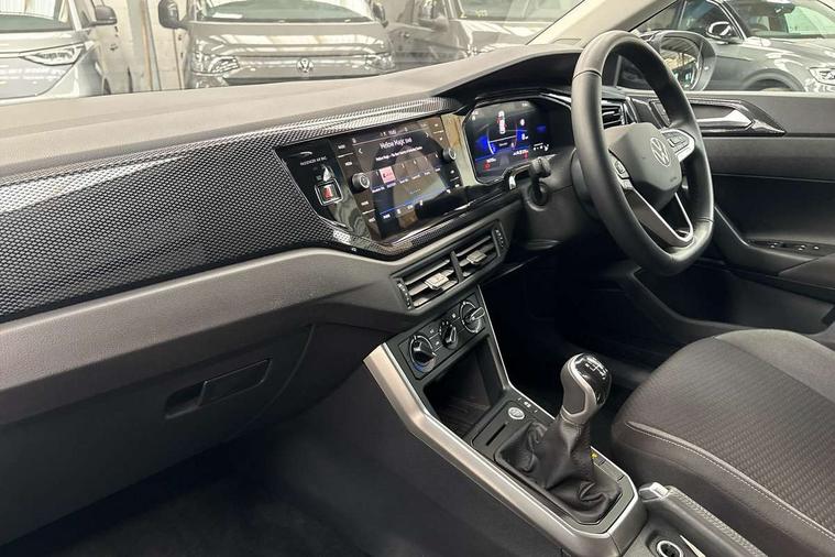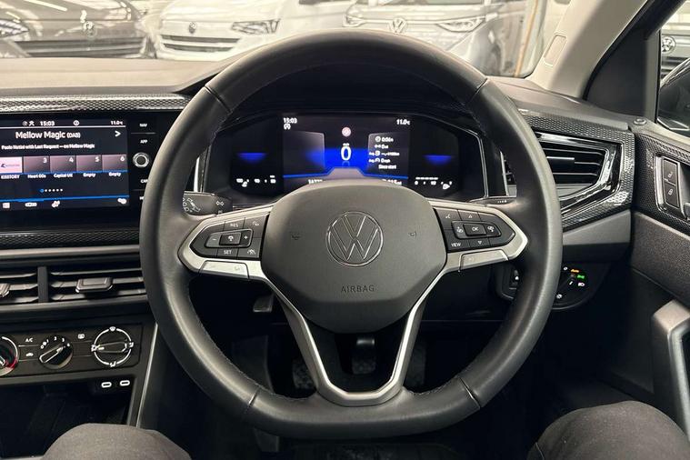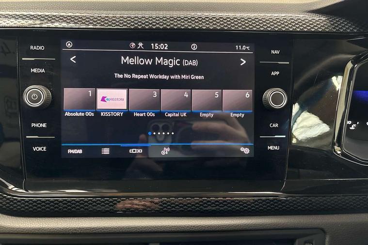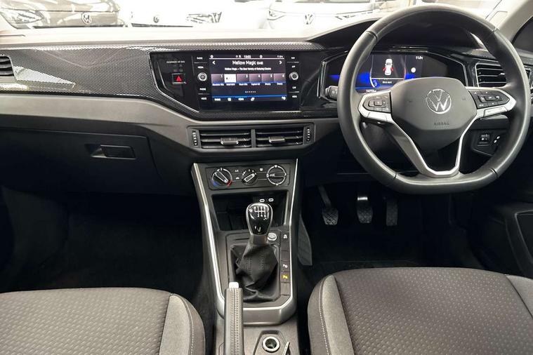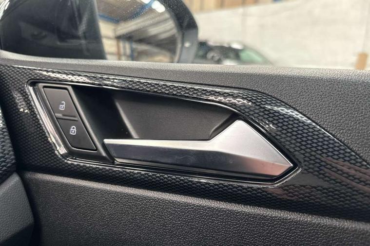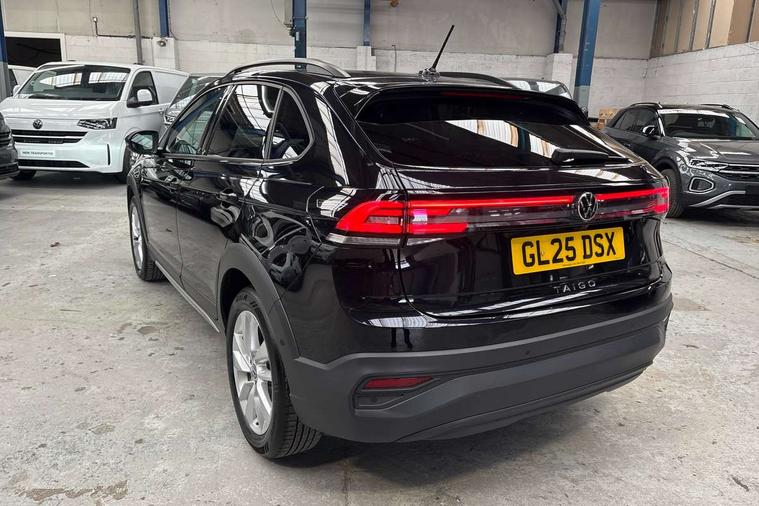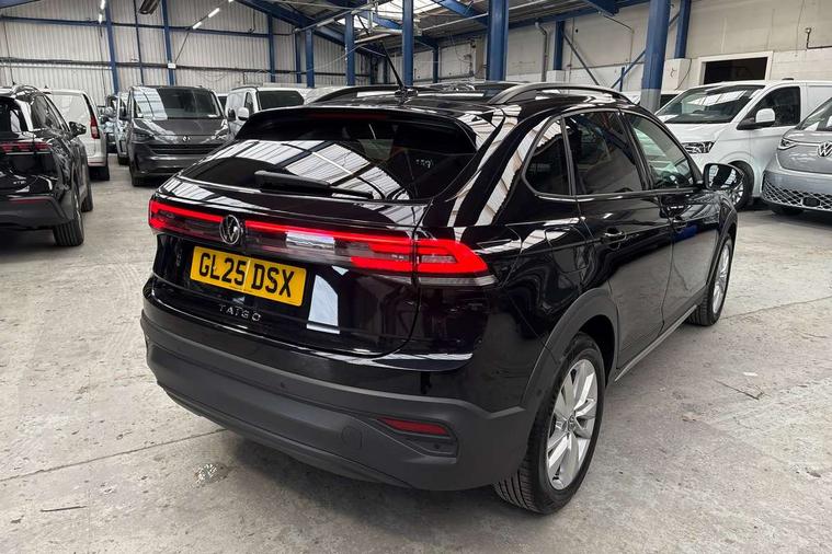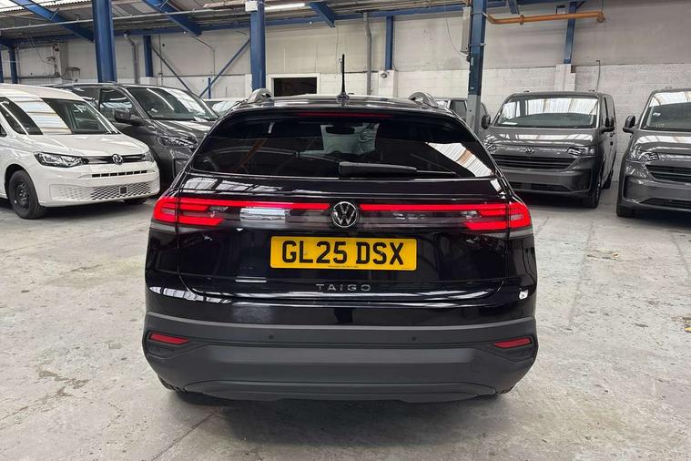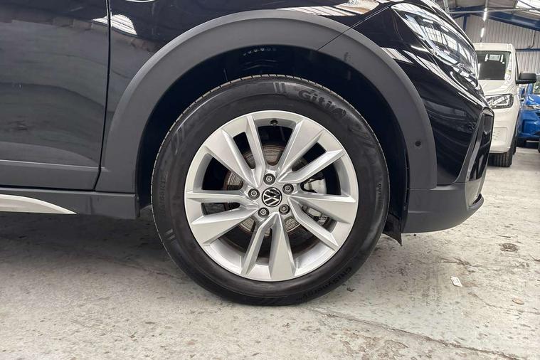 Advanced driver attention and drowsiness monitor, Dynamic road sign display, e-Call (emergency call), Power Steering, Predictive adaptive cruise control, Rear view camera, Travel assist including emergency assist, Washer fluid level indicator, Wireless Charging including Bluetooth, Start-stop system with battery regeneration (recuperation - energy recovery during braking), WeConnect plus, Ambient lighting with logo projection, Aspherical driver's exterior mirror, Body coloured bumpers, Body coloured exterior mirror housings and door handles, Electric windows, External USB type C socket and charging sockets, Heat insulating glass windscreen, LED rear combination lamp, LED third brake light, Left convex exterior mirror, Power folding adjustable/heated exterior mirrors and front passenger exterior mirror lowering function, Rear fog light on one side, reversing light on both sides, Rear side wing doors, Rear wash/wipe with intermittent wipe setting, Side windows in heat-insulating glass, from B-pillar and rear window dark tinted, 'Slash/ Austin' Cloth upholstery, 12V socket in centre console, 2 front reading lights, 3 rear head restraints, 3 seat bench in 2nd row, Black carpets, Ceramique headliner, Child seat anchor for child seat system i-Size, 2x top tether and child seat anchor in front on front passenger side, Door and side trim panels in titan black, Driver and front passenger seat height adjustment, Front centre armrest, Handbrake lever handle in leather, Height and reach adjustable steering wheel, Leather trimmed gear knob, Leather wrapped multifunction steering wheel, Luggage compartment floor, Luggage compartment light, Lumbar support for driver's and front passengers seat, Seat covers in titanium black, Single front passenger seat, Split folding backrest with centre armrest and unsplit rear seat bench, Storage compartment under front seats, Sun visors with illuminated vanity mirrors, Titanium black instrument panel, Chrome Package - Taigo, Drivers assistance package - Taigo, Light and sight pack - Taigo, 2 x 3-point seatbelts/outer rear seats with ECE label, 3-point seat belts in front with pretensioner and height adjustment, 3-point seatbelt for centre rear seat, Driver and front passenger airbag with front passenger airbag deactivation, Driver and front passenger safety-optimised head restraints, Electronic stability control, Extended and predictive pedestrian/ cyclist protection, Front and rear disc brakes, Front curtain and side airbags with center airbag, Hill start assist, Manual rear child locks, Single tone horn, Tyre pressure loss indicator, Anti-theft alarm system with interior monitoring, backup horn, and towing protection, Keyless locking and starting system keyless access with safelock, Black (slush) Dashboard, Lava stone black gloss/matt decorative inserts in dash and front door panels, Low rolling resistance tyres,