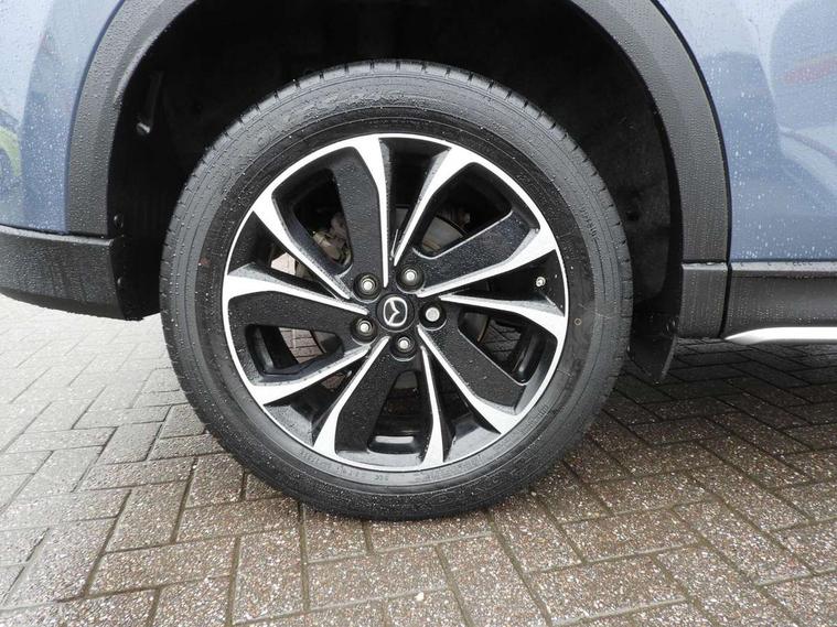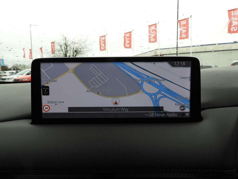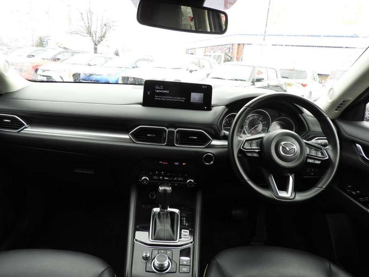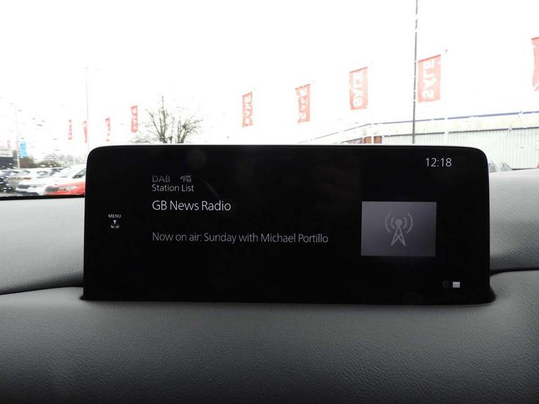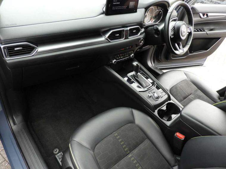 10.25" display with Mazda Connect infotainment, Advanced blind spot monitoring, Apple car play/Android Auto, Bluetooth connectivity with voice control, Collision prevention assist, Connected services, Cruising Traffic Support, Drive mode selector, Electric power steering, Emergency stop signalling system, Engine start/stop button, Forward collision warning, Front and rear parking sensors, High meter TFT display, Integrated navigation system, Intelligent speed assist, Lane departure warning system, Lane keep assist, Radar cruise control with Stop and Go, Service indicator, Trip computer, i-stop, 2 USB sockets in rear, 2x USB sockets in front, 6 speakers, AM/FM radio, Bluetooth audio streaming, DAB Digital radio, Multimedia Commander including separate volume dial, Steering wheel mounted audio controls, Adaptive front lighting system, Auto dimming rear view mirror, Automatic headlights, Black mirror caps, Body colour roof spoiler, Body coloured front and rear black lower bumper mouldings, Bright finish signature wing, Coming/leaving home lighting function, Door mirror integrated indicators, Dual chrome tailpipes, Dusk sensitive headlamps, Electric front/rear windows with one touch auto up/down, Front and rear silver under garnish and side skirt, Front and rear silver under guard and side garnish, Front grille in material black finish, High beam assist, Intermittent rear wash/wipe, LED auto levelling, LED daytime running lights, LED front fog lights, LED Headlights, LED third brake light, Lime green air vent louvre inlay dashboard panel, Lime green front grille accent color, Louver bezel inner lime green accent, Power folding and heated door mirrors, Privacy glass (rear side windows only), Rain sensing front wipers, Rear side wing doors, Satin black B and C pillars, Satin black side mouldings, Scuff plates, Shark fin antenna, Signature LED rear combination lights, Vinyl with lime green door trim panel, 12v electrical power outlet, 3 seat bench in 2nd row, 3 stage heated front seats, 40:20:40 Karakuri fold-flat seat system, 6 way power adjustable driver seat, Driver seat lumbar adjustment, Driver seat power slide, recline and height adjustment, Driver, Front passenger and two rear grab handles with coat hooks, Driver/passenger front seatback pockets, Driver/passenger sunvisors + illuminated vanity mirrors (drivers with ticket holder), Dual zone climate control, Folding centre armrest with 2 cup holders, Front and rear door pockets, Front centre storage with two cupholders, Front passenger seat manual slide, recline and height adjust, Height adjustable passenger seat, Humidity sensor, Illuminated glovebox, Interior dome light with integral spotlight, ISOFIX child seat anchorage points attached on outer rear seats, Karakuri tonneau cover, Leather wrapped steering wheel and gear knob, Leatherette door trim, Leatherette/suede upholstery, Light roof lining, Luggage compartment LED lighting, Luggage compartment power outlet, Rear air vents, Rear headrests, Rear seat recline, Reversible waterproof cargo board, Roof mounted sunglasses holder, Single front passenger seat, Three height adjustable head restraints, Tilt/height adjustable steering wheel, White interior LED illumination lighting, 3 point front seatbelts with pre-tensioners, 3 rear 3 point seatbelts, ABS, Advanced Smart City Brake Support - SCBS, Child locks on rear doors, Driver and front passenger side airbags, DSTC-Dynamic Stability and Traction Control, Dual front airbags, Electronic brake force distribution, Electronic parking brake with auto hold, ESP, Front and rear curtain airbags, Front passenger airbag deactivation, G-Vectoring control, Hill hold assist, Seatbelt reminder front and rear, Single stage passenger airbags, Smart brake support with forward obstruction warning, Tyre pressure monitoring system, Automatic door locking when moving off, Deadlock, Immobiliser, Power door locks, Remote central locking, Thatcham Cat.1 alarm, 19" diamond cut black alloy wheels, Tyre repair kit,