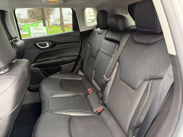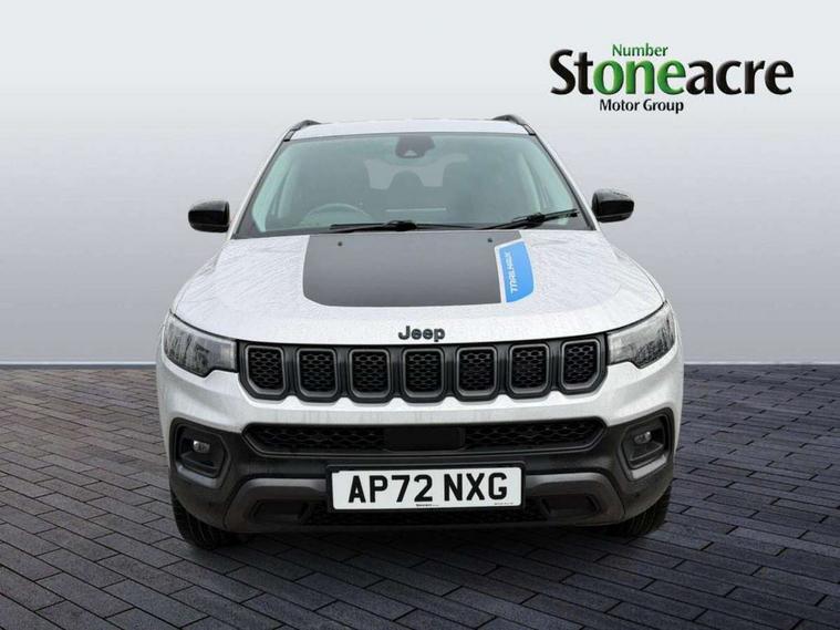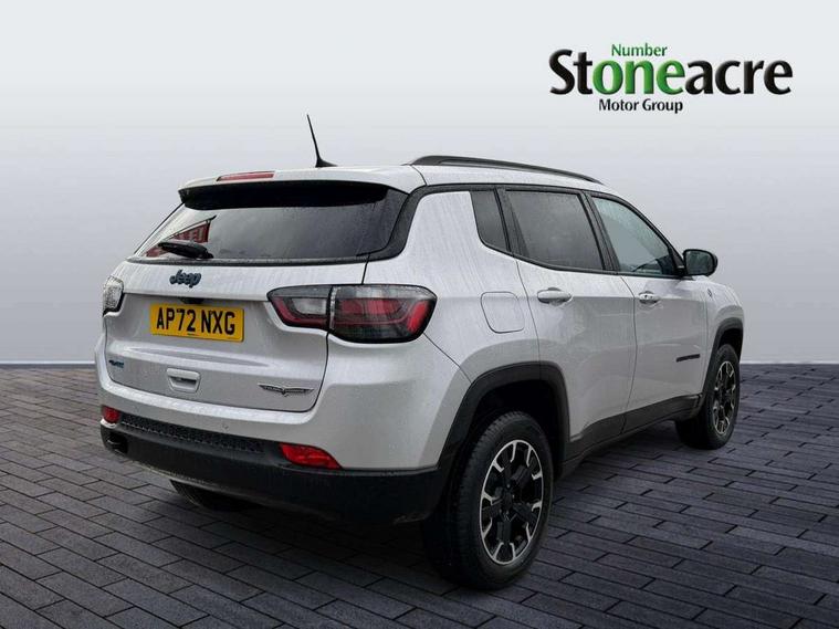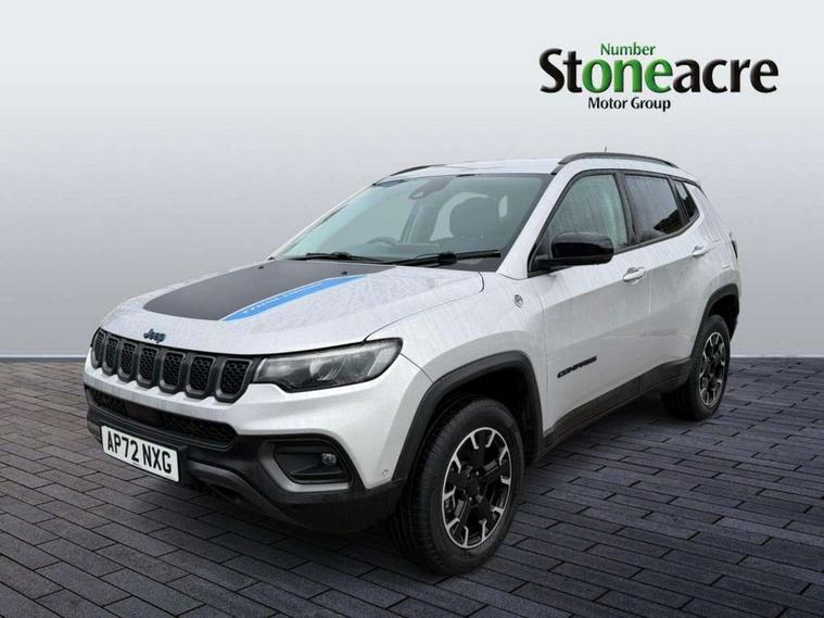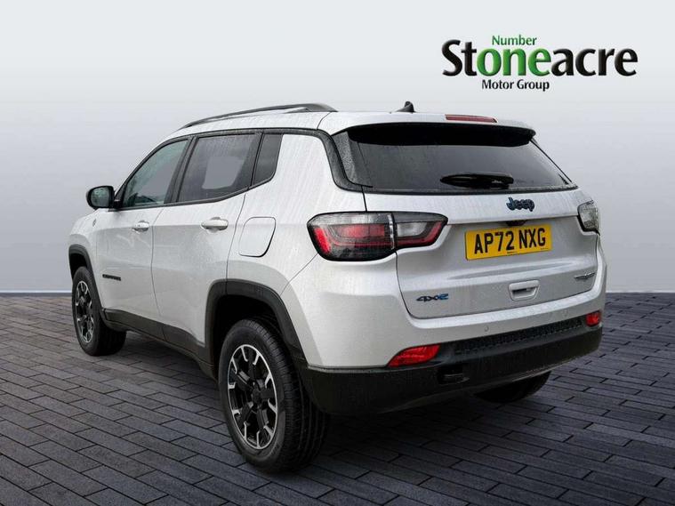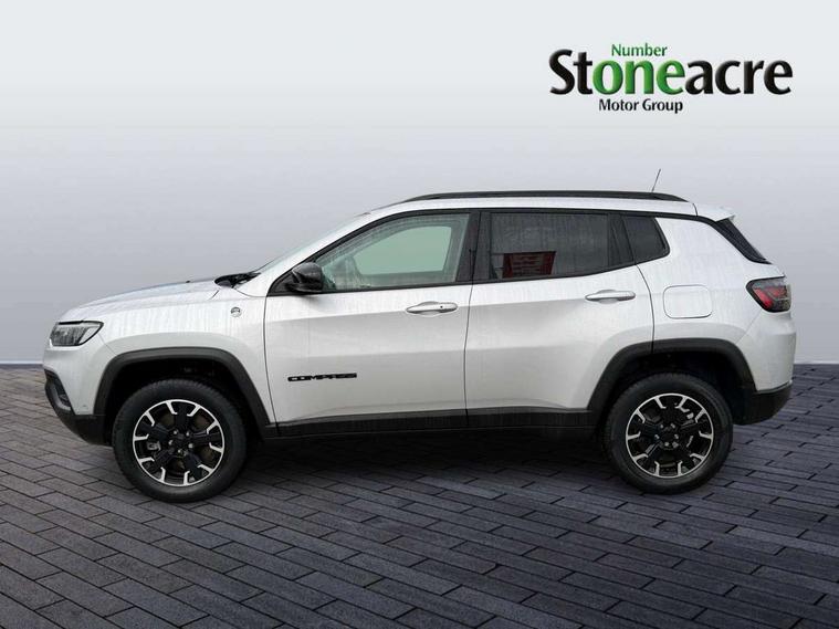 160 MPH primary speedometer, Active lane management, Active speed limiting device, Adaptive cruise control with Stop and Go, Drowsy driver detection, E-call, Electric power steering, English owners handbook, Full speed forward collision warning plus mitigation, Instrument cluster- 10.25" TFT Colour display, Instrument panel, Intelligent speed assist, Media centre electronic storage, Outside temperature display, Selec-Terrain system for Trailhawk with sport mode, Tachometer, TBM - Connected services (e-call), Traffic sign recognition (TSR), Vehicle information centre, Wireless charging pad, 7.4 kW onboard charger, Battery run - down protection, Battery skid plate, Boost and load point shift, CO2 improvement, E- launch, E-creeping, E-Parking, E-Queueing, Electric drive, Electronic roll mitigation, EV/PHEV mode 2 charging cable, Off road suspension, Bluetooth audio streaming, DAB Digital radio, Global telematics box module (TBM), Media hub (USB A-C TYPE), Steering wheel mounted audio controls, Uconnect 5 R1 Radio - 10.1" display without navigation, USB A and C type - second row, USB host flip, 4XE badge/e-Hybrid badge, Accent/body colour bumpers, Aspherical driver's exterior mirror, Auto dimming rear view mirror, Auto high beam, Automatic headlights, Belly pan - underbody protection, Black mic grille/neutral gray rings, Black side roof rails, Black window surrounds, Body colour door handles, Carry back MHEV, Coastdown and run-in optimization, Compass badge, Deep tint privacy glass, Door mirrors: power adjustable and folding, heated with auto folding function and indicators, Exterior door mirrors with heating element, Front fascia/belly pan skid plate, Front/rear grey insert, Gloss black badges, Gloss black exterior door mirrors, Headlamp leveling system, Headlamp off time delay, Heated rear window, Jeep badge, LED front fog lamps, LED rear lights, LED reflector headlamps high with segmented DRL, LED tail lights, Lower bodyside cladding in black, Neutral gray headlamp bezels, Neutral grey exterior accents, Off road bumper, Partial body cover protection, Power windows - driver and passenger express up/down, Rain sensitive windscreen wipers, Rear fascia, Rear fog lamps, Rear side wing doors, Rear windshield washer/wiper, Red rear tow hook, Removable short mast antenna, Skid plate shield - front suspension, Skid plate shield - fuel tank, Skid plate shield - transfer case, Skid plate shield - transmission, Smartbeam headlights, Third brake light, Trail rated badges, Trailer sway damping, Trailhawk badges, Trailhawk hood decal, UK front number plate bracket, Windshield wiper de-icer, 12V auxiliary power outlet - 2nd row, 3 rear seat head restraints, 3 seat bench in 2nd row, 60/40 split folding rear seat, All weather floormats with Jeep logo, Cargo area lights, Cargo compartment carpet, Cargo compartment cover, Cargo compartment organiser, Cargo compartment reversible mat, Cargo load floor, Cargo tie down loops, Centre console with sliding armrest, Centre rear 3 point seat belt, Child seat anchorage points, Coat hooks, Dash insulation, Driver assist handle, Dual zone temperature control with preconditioning capability and heater, Fold flat front passenger seat, Front head restraints, Front height-adjust seatbelts, Front map pocket LED lamps, Front map reading lights, Front seats back map pockets, Full length centre console, Glovebox light, Glovebox with damped soft close door, Heated front seats, Heated steering wheel, Illuminated door entry system, Interior door handle LED lamps, Internal rear grab handles, Leather wrapped gear knob, No Alternator, Overhead console, Overhead dome LED lamps, Passenger assist handles, Power 2-way driver lumbar adjustment, Rear air conditioning and heater vents, Rear seat armrest with cupholder, Red interior stitching accents, Single front passenger seat, Spare wheel storage insulation, Sunvisors with illuminated vanity mirrors, Tilt/telescopic steering column, Vinyl wrap steering wheel, Navigation pack - Jeep, Power pack - Jeep, Ventilated leather seats pack - Compass Trailhawk, AEB with pedestrian and cyclist detection, All speed traction control, Automatic electronic hold brake, Driver's front airbag, Dual note electric horns, Dual tyre pressure - turn changes, Electrical steering column shaft lock, Electronic parking brake, Electronic stability control, Energy recovery system, Front and rear side curtain airbags, Front passenger airbag, Front passenger airbag detector, Front side airbags, Hill descent control, Hill start assist, Jeep call assistance label, Passenger airbag deactivation switch, Rain brake support, Rear door child protection locks, Rear seat belt reminder, Tyre pressure monitoring display, Capless fuel filler, Occupant detection system, Passive entry and keyless go (Key fob without panic button), Power locking fuel filler door, Premium security alarm, Front and rear air vents, Speakers in satin chrome silver, 17" Alloy wheels, Temporary use spare tyre with non matching steel wheel,