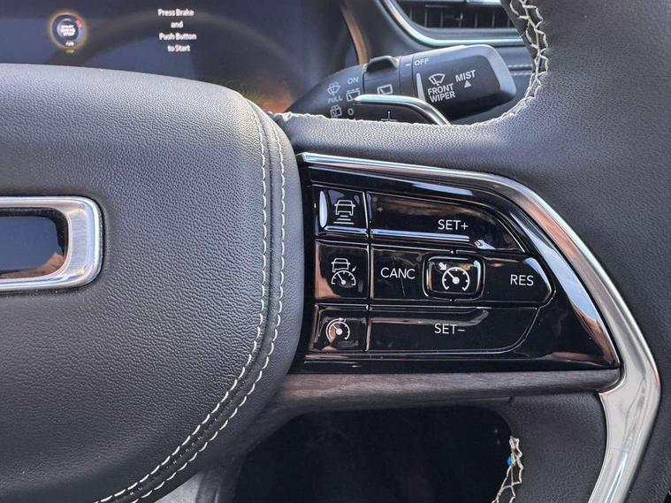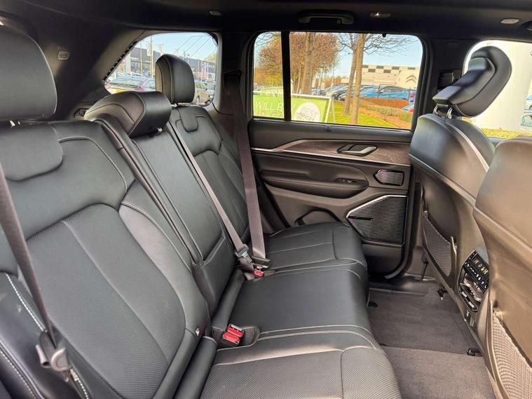10.25 " TFT display cluster, Active lane management system, Active Noise Control, Adaptive cruise control with Stop and Go, Blind spot and cross path detection, Connectivity services, Drowsy driver detection, Electric power steering, Full speed forward collision warning, Handsfree power liftgate, Intersection collision warning system, Parksense front & rear park assist, Parkview rear backup camera, PAS, Public SOS only, Push button start, Selective speed control, Speedometer, Telematics box module, Traffic sign recognition, Uconnect 5 10.1" display with navigation, 7.4 kW onboard charger, Adaptive damping suspension, Cable mode 3 offset, Mode 3 charging cable, Quadra lift air suspension, Selec Terrain system, Sport mode, 2 USB charging points in 2nd row, Media hub with USB and aux input, Steering wheel mounted controls, 4x4 badge, Auto dimming rear view mirror, Automatic headlights with auto levelling, Body coloured door handles, Body coloured front + rear fascias, Body coloured shark fin antenna, Chrome exterior accents, Deep tint privacy glass, Dual bright exhaust tips, Dual exhaust pipes, Dual pane electric opening panoramic sunroof, Electric front/rear windows with one touch/auto up/down, Exterior front lighting animation, Gloss black door mirrors, Gloss black/bright roof rails, Headlamp washer, Heated auto-fold and adjust power exterior mirrors with memory, High/low LED beam projectors, Jeep + Grand Cherokee badges, LED daytime running lights with cornering function, LED front and rear fog lamps, LED third brake light, Locking push-push fuel filler door, Overland badge, Painted wheel arches, Proximity approach lamps, Rain sensitive windscreen wipers, Rear side wing doors, Rear wiper, Tailgate door puddle lamps, Trailer sway damping, Underbody aerodynamic treatment, Windshield wiper de-icer, 12v power outlet in cargo area, 3 rear head restraints, 8 way power adjustable passenger seat, An-Teak/Liquid chrome interior accents, Configurable Ambient interior lighting, Door courtesy lamps, Driver seat memory function, Dual zone air conditioning, Front and rear floor mats, Front and rear footwell courtesy light, Front and rear map pockets, Front and rear reading lights, Front head restraints, Heated front and rear seats, Heated steering wheel, Illuminated cup holders, Interior assist handles, Leather wrapped steering wheel, Power tilt/telescope adjustable steering column, Rear 60/40 folding bench seat, Single front passenger seat, Sun visors with illuminated vanity mirrors, Smokers group pack - Grand Cherokee, 3 point seatbelts on all 3 rear seats, Advanced multistage front airbags, Automatic emergency braking with pedestrian and cyclist recognition, Child seat anchor system with top tethers, Driver and passenger knee air bags, Driver and passenger seat belt alert, Electric parking brake, Electronic stability control, Four-wheel traction control, Front and rear side curtain airbags, Front seat side air bags, Hill descent control, Hill start assist with Hold 'n' Go, Manual rear child locks, Occupant detection sensor - 2nd row, Rear seat reminder alert, Tyre pressure monitoring system, Capless fuel filler, Deluxe alarm system, Speed sensitive power locks, Pur-wrapped instrument panel, 20" Fully polished alloy wheels, Full size spare tyre,