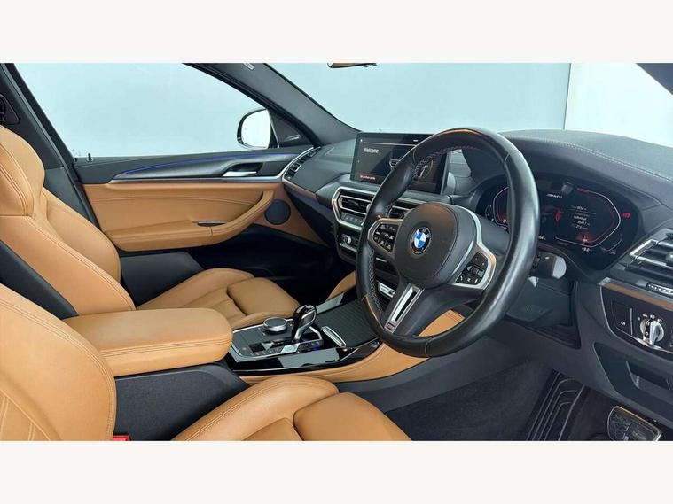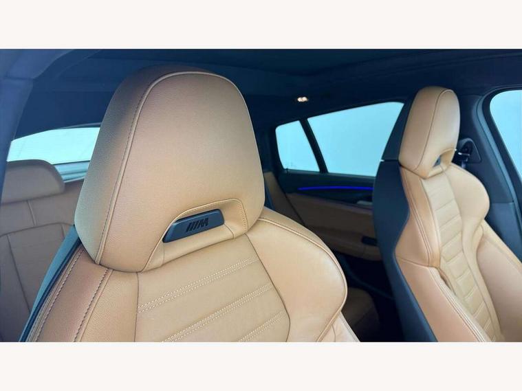 Active Guard incl approach control warning with city brake function and person warning with city brake function, Active Guard Plus incl front collision warning with brake intervention, Attentiveness assist, Auto start-stop, Automatic operation of tailgate, BMW ConnectedDrive online services, BMW Live Cockpit Professional with 12.3" instrument display with Intelligent Voice Assistant, BMW Teleservices, Brake pad wear indicator in front and rear, Check Control warning system for monitoring of lights and door/luggage compartment open warning, Condition based service - BMW service history, electronic service booklet, integrated owner's handbook, Driving experience switch, Electric bootlid, iDrive Controller with 8 favourite buttons, Instrument cluster with speedometer with mph readout, tachometer, fuel gauge and oil temperature gauge, Language version English, Lights on warning by audio warning signal when ignition is switched off, Oil sensor for level and grade, warning by check control system, On board computer - average speed+fuel consumption, service interval, clock/date, odometer/trip meter, outside temperature display and ice warning, Optimum shift indicator, Park distance control (PDC), Personal Profile - automatic lock when driving away selectable, Servotronic system, Variable sports power steering, Double joint spring strut front axle, Double VANOS, Drive performance control - ECO PRO, comfort and sport modes, EU6 emissions management, Five link rear suspension, High precision injection, M Adaptive suspension, M Sport differential, Multiple control arm rear axle, Performance Control, Sport automatic transmission with gearshift paddles, Twin scroll turbocharger with Valvetronic, 2x USB Type C ports in front centre console for charging and data transfer, 2x USB Type C ports in rear centre console for charging, BMW professional radio/CD/MP3, DAB tuner, Acoustic glass, Automatic parking function on passenger's side exterior mirror, Automatic windscreen wipers and automatic headlight, Black chrome tailpipe finishers, Black finish on B pillars, Black kidney frame and nuggets painted in high-gloss black, BMW emblem base at rear in high-gloss black, Body colour door handles, Body colour roof mouldings, Body coloured bumpers, Chrome exhaust tailpipes in split left and right, Direction indicator, side repeaters, integrated in exterior mirrors, Door sill strips, Dynamic brake lights, Electric folding wing mirrors with auto dimming, Electric front and rear windows with fingertip open/close + anti-trap facility and comfort closing function, Electrically adjustable and heated door mirrors, Electro-chrome auto-dimming rear view mirror, Energy absorbing foam within the front bumper, Extended high gloss shadow line exterior trim, Follow me home headlight function, Front and rear bumper system with replaceable deformation elements, Full LED L shape 3D tailights, Glacier silver metallic matt in side sills, Green tinted heat insulating glass, Headlight beam throw control, Heated windscreen washer jets, High gloss black front door sill finishers with BMW designation, Interior/exterior mirrors with auto anti dazzle, LED High level third brake light, LED rear lights, Lightweight engineering, M black mirror caps, M designation side exterior badges, Model designation, Rain sensor + automatic driving lights control, Rear side wing doors, Rear wiper, Reversing lights, Shark fin antenna, Sun protection glass, Tinted passenger side exterior mirror, Visible VIN plate, Windscreen wipers with adjustable interval, 12V power socket in front centre console, 12V power socket in front storage compartment, 3 zone automatic air conditioning, 40/20/40 split folding rear seats with backrest, Anthracite headlining, Electric adjustable front seats with memory function for driver seat, Foldable storage floor with compartment, Front and rear bottle holders integrated into door trim storage compartments, Front and rear side armrests integrated into door trim, Front centre armrest with storage compartment, Front passenger seat, Front/rear reading lights, Heated front seats, Height adjustable front/rear head restraints, Leather gear knob, Lockable glove compartment, Luggage compartment lighting, M Sport multifunction leather steering wheel, Make-up mirror lights, Microfilter and active carbon filter, Parcel shelf removable and storable under boot floor, Reach + rake adjustable steering column, Rear centre armrest with 2 cupholders, Storage compartment in rear centre console and front/rear door trims, Storage compartment lighting in front center armrest, Sunvisors with vanity mirrors and ticket pocket, Synthetic leather door trims, Three rear headrests, Through loading system, Toolkit located in luggage compartment, Two front cupholders with removable oddments tray/lid, Velour floor mats, Visual exit area and front and rear door recognition, Welcome light (no extra light) with illumination in the colour white, Ambient lighting pack - X4, Connected package pro - X4, M Aerodynamic pack - X4, Non Smokers pack, 3 point seatbelts on all seats, Active protection, ADB - Automatic Differential Brake, Anti-lock braking system (ABS) with brake assist, Automatic Stability Control (ASC), Battery safety cut-off, BMW emergency call, Brake drying, Brake energy regeneration, Braking pre-tensioning, Child proof locking system in rear door, Child seat ISOFIX attachment rear outer seats, Cornering brake control (CBC), Crash Sensor - activation of central locking release, hazard warning light and interior lighting, safety battery terminal clamp and trigger e-Call, Deactivation of fuel pump in the event of a crash, Driver and front passenger knee airbag, Driver/front passenger airbag, Driver/front passenger side airbags, Dynamic brake control, Dynamic stability control + (DSC+), Dynamic Traction Control - DTC, Electromechanical parking brake, Front and outer rear pyrotechnic belt tensioners, Front passenger manual airbag deactivation, Front seatbelt f