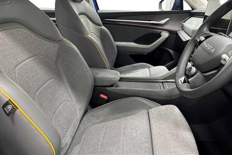 13" satellite navigation touchscreen display, Blind spot detection with door exit warning, Bluetooth system, ChatGPT functionality, Driver alert - Fatigue and drowsiness monitor, Dry display cleaner, Emergency call, Front and rear parking sensors, Front cross traffic assist, Lane assist, PAS, Rear traffic assist, Rear view camera, Tailgate unlocking from outside, Traffic sign recognition, USB C Port x 2 in front centre console, Virtual Cockpit - 10.25" digital display, Voice control system, Wireless charging for two smartphones (15W) with cooling function, Wireless SmartLink for Apple CarPlay and Android Auto, Stop/start function, 2x USB-C in the rear, 8 Speakers, DAB Digital radio, Aero front windscreen wipers with intermittent function, All weather light, Auto dimming rear view mirror, Black wheel arch surrounds, Body colour bumpers, Body colour door mirrors and handles, Cornering light and poor weather light, Electric folding /adjustable/separted heated/folding door mirrors, auto dimming with boarding sports and memory function, Electric front and rear windows, Exterior black decorative trims, Heat insulating glass in windshield, Heated rear window, Ice scraper in fuel tank cap, Invisible tailpipe, LED daytime running lights, LED front fog lamps, LED Headlights, LED rear fog light, LED rear lights, LED third brake light in rear spoiler, Light assistant with automatic headlight control and coming home feature, Logo projection in door mirrors, Rear roof spoiler, Rear side wing doors, Rear window wiper, Safety reflectors on front and rear doors, Unique dark chrome design logo on alloy wheels, Window control switches with black trim, Windscreen wipers with rain sensor, Without engine designation, 1.5l bottle holder points in all door, 1x centre rear reading light, 2 seat bench in 3rd row, 3 configurable smart dials with 32mm coloured display, 3 seat bench in 2nd row, 4 foldable roof handles with rear coat hooks, Ambient interior lighting - Dashboard, front-door stowage compartments, front and rear door panels and footwell lighting, Automatic gear selector on steering column, Chrome interior door handles, Driver/front passenger reading lights, Fabric headlining, Fixed bench 40:60:40 split folding backrests, Front and rear floor mats, Front centre armrest with jumbo box storage compartment, cup holder and 12V socket, Height adjustable front headrests, Isofix child seat fittings in outer middle row rear seats and front passenger with top tether, Manual height adjustment for front passenger seats and thigh support extender, Manual lumbar support for front passenger seat, Manually adjustable steering column, Pollen filter, Rear centre armrest with cupholders, Rear seat boot backrest release, Single front passenger seat, Skoda lettering on steering wheel, Storage pocket including mobile phone pockets on the backs of the front seats, Sunvisors with illuminated vanity mirrors, Three rear height adjustable headrests, Ticket holder on A Pillar, Tri zone climate control, Umbrella in door panel x1 made from sustainable materials, Upper and lower glovebox with card holder and coin compartment, USB C port by rear view mirror for charging only (15W), Variable boot floor, Auto door release and activation of warning lights in the event of an accident, Driver and front passenger airbag with knee airbag and front passenger airbag deactivation, Electric child locks, Electronic parking brake, ESC (incl. ABS+EMD+MSR+ASR+EDL+HBA+DSR+RBS+ESBS+MCB+TSA+XDS), Front assist with braking reaction to vehicles, pedestrians and cyclists, Front disc brakes, Fuel cut off safety device, Height adjustable front 3 point seatbelts + pretensioners, Hill hold assist, Junction assist with automatic emergency braking, Rear disc brakes, Safety vest holder in door, Seat belt reminder for all seats, Three point rear seat belts, Two tone horn, Tyre pressure monitor, Alarm with interior monitoring and tilt sensor with safe function, Anti-theft wheel bolts, Immobiliser, Remote central locking with 2 keys, Breakdown kit, Tool kit,