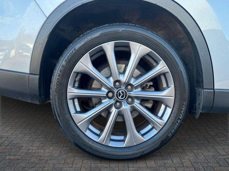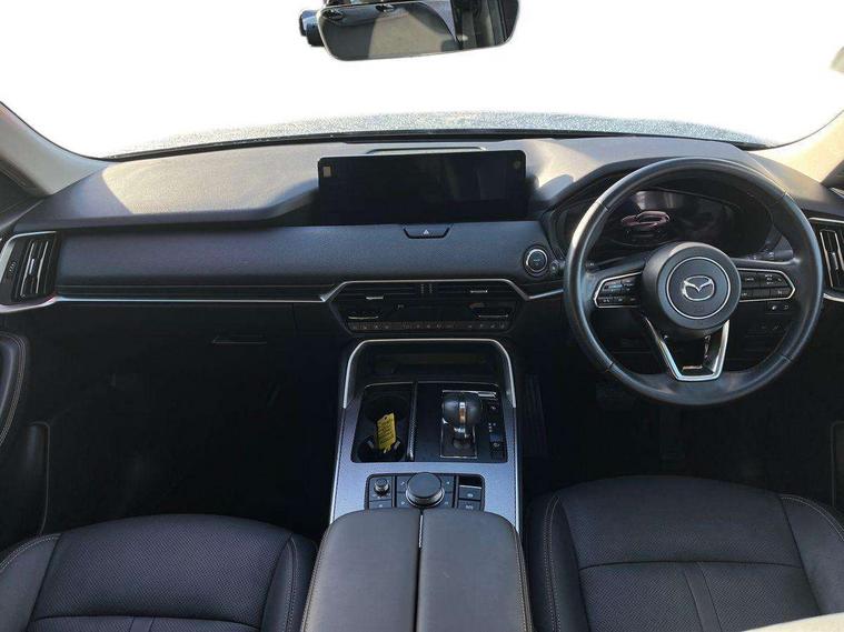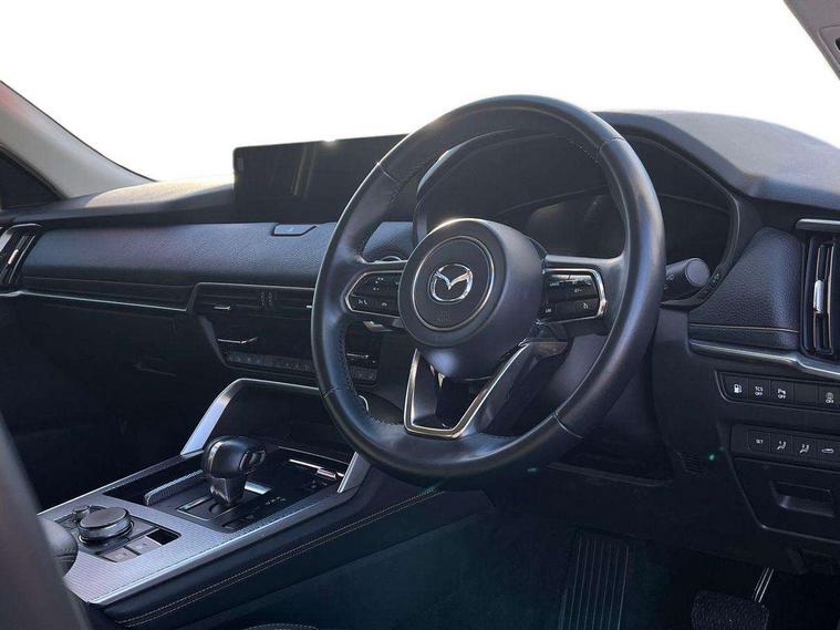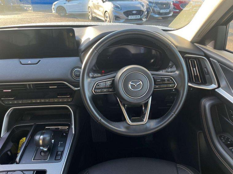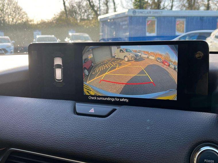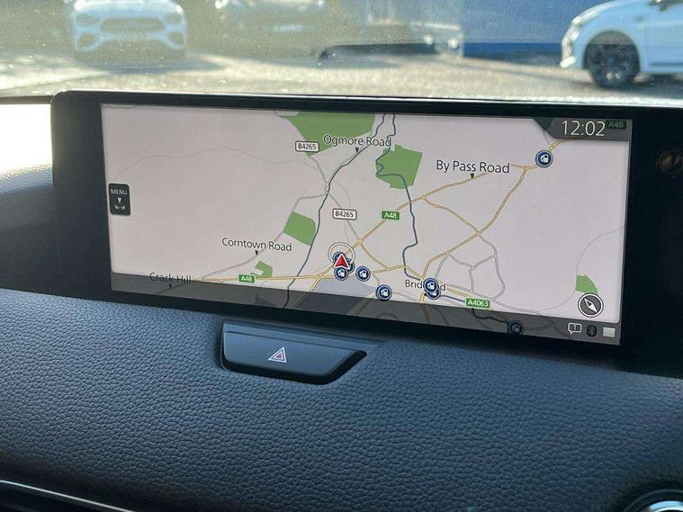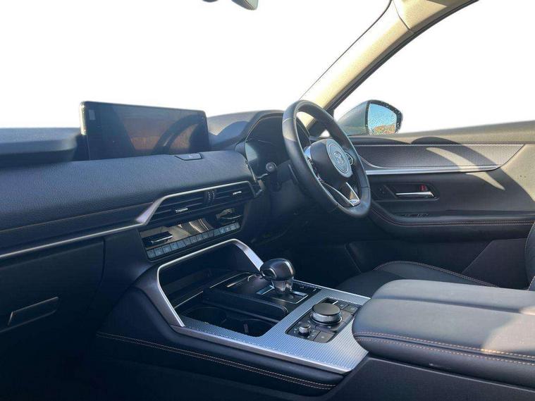 Low washer fluid warning light, 12.3" Colour entertainment centre display with mazda connect infotainment, 12.3" TFT Colour display, Adjustable speed limiter, Black faux leather vinyl dashboard with titanium piping, Blind spot assist, Blind spot monitoring with rear cross traffic alert, Distance alert system, Driver attention alert system, E-call with GPS, Emergency lane keeping with blind spot assist, Emergency stop signalling system, Exit warning function, Front and rear parking sensors, Integrated bluetooth, Intelligent speed assist, Kinematic posture control, Lane keep assist system (LAS) with Lane departure warning system (LDWS), Mazda Navigation System with european mapping, Multimedia Commander, PAS, Power liftgate, Power start/stop button, Reversing camera with static guide lines, Speed alert, Traffic sign recognition, Trip computer, Windscreen projected colour active driving display, Wireless apple car play/android Auto, Type 2 Mode 2 cable for AC charging via UK 3-pin plug, 7.2 kw On board Charger, Mi-Drive (Normal, Sport, Off-road, Towing and EV mode), Paddle shift, Type 2 Mode 3 cable for AC charging via home or public charge points, AM / FM / DAB radio with 8 speakers, Steering wheel mounted audio/bluetooth controls, USB-C inputs (x2 front and x2 rear), Auto dimming driver's door mirror, Automatic headlight levelling, B-pillar and C-pillar garnishes in gloss black finish, Black wheel arch and side mouldings, Body colour roof spoiler, Body coloured bumpers, Body coloured door mirrors, Chrome finish signature wing in front grille, Chrome front side garish, Coming/leaving home lighting function, Dark plated headlight lense, Dusk sensing headlights, Electric front/rear windows with one touch auto up/down, Electrically adjustable, heated auto power folding door mirrors, Frameless auto dimming interior rear view mirror, Front kodo turn signal, Front wiper de-icer, Gloss black bar type front grille, Headlight washers, High beam control, LED 3rd brake light, LED rear signature combination lamps, Piano black window surrounds, Rain sensing front wipers with adjustable sensitivity and speed, Rear side wing doors, Rear wiper, Roof pillars and roof lining finished in lighter colour to soften the overall look, Signature LED daytime running lights, Silver decoration panel, 12v power outlet - front, 12V socket in boot, 3 height adjustable rear headrests, 3 seat bench in 2nd row, 40/20/40 split folding rear seats with quick levers in the boot, Cargo net, Chrome interior trim accents with steering wheel centre bezel, surround of engine start / stop button and glove box handle, Door panel trim vinyl leather with armrest, Driver and front passenger two rear grab handles with rear coat hooks, Driver and front passenger visors with covered vanity mirror and driver ticket holder, Driver seat manual slide, recline, height and seat tilt adjust, Driver, front passenger and two rear door pockets, Driver/passenger front seatback pockets, Dual zone climate control air conditioning with rear air vents, Folding rear centre armrest with two cup holders, Front and rear signature illumination, Front centre storage with two cupholders, Front down lamp with front and rear foot lamps, Front headrests, Front passengers seat manual slide, recline and height adjustment, Glovebox illumination, Heated front seats with 3 stage setting, Heated leather wrapped steering wheel, ISOFIX child seat anchorage points attached on outer rear seats, Karakuri tonneau cover, Leather upholstery, Leather wrapped gear shift knob, LED illumination luggage compartment, Manual telescopic and tilt adjustment steering wheel, Practical and spacious front centre armrest storage, Rear seat recline function for rear passenger comfort, Remote fold down rear seats, Roof mounted sunglasses holder, Single front passenger seat, 3 point ELR front seat belts x2 with pretensioners, 3 point ELR rear seat belts, Active bonnet, Anti-lock braking system (ABS), Drivers knee airbag, DSC - Dynamic Stability Control, Electronic parking brake with auto disengage function and auto hold function, Front and rear curtain airbags, Front dual stage driver and single stage front passenger airbags, Front passenger airbag cut-off switch, Front side airbags, Front smart city brake support, Hill decent control, Hill launch assist, Manual rear child locks, Seatbelt reminder for driver/front passenger and rear seats, Traction control, Tyre pressure monitoring system (TPMS), Remote central locking with deadlocking and automatic door lock when driving, Smart keyless entry, Thatcham accredited alarm and immobiliser, Black centre console panel, Dashboard panel - Black Vinyl, 18" Grey metallic alloy wheels, Emergency tyre repair kit,